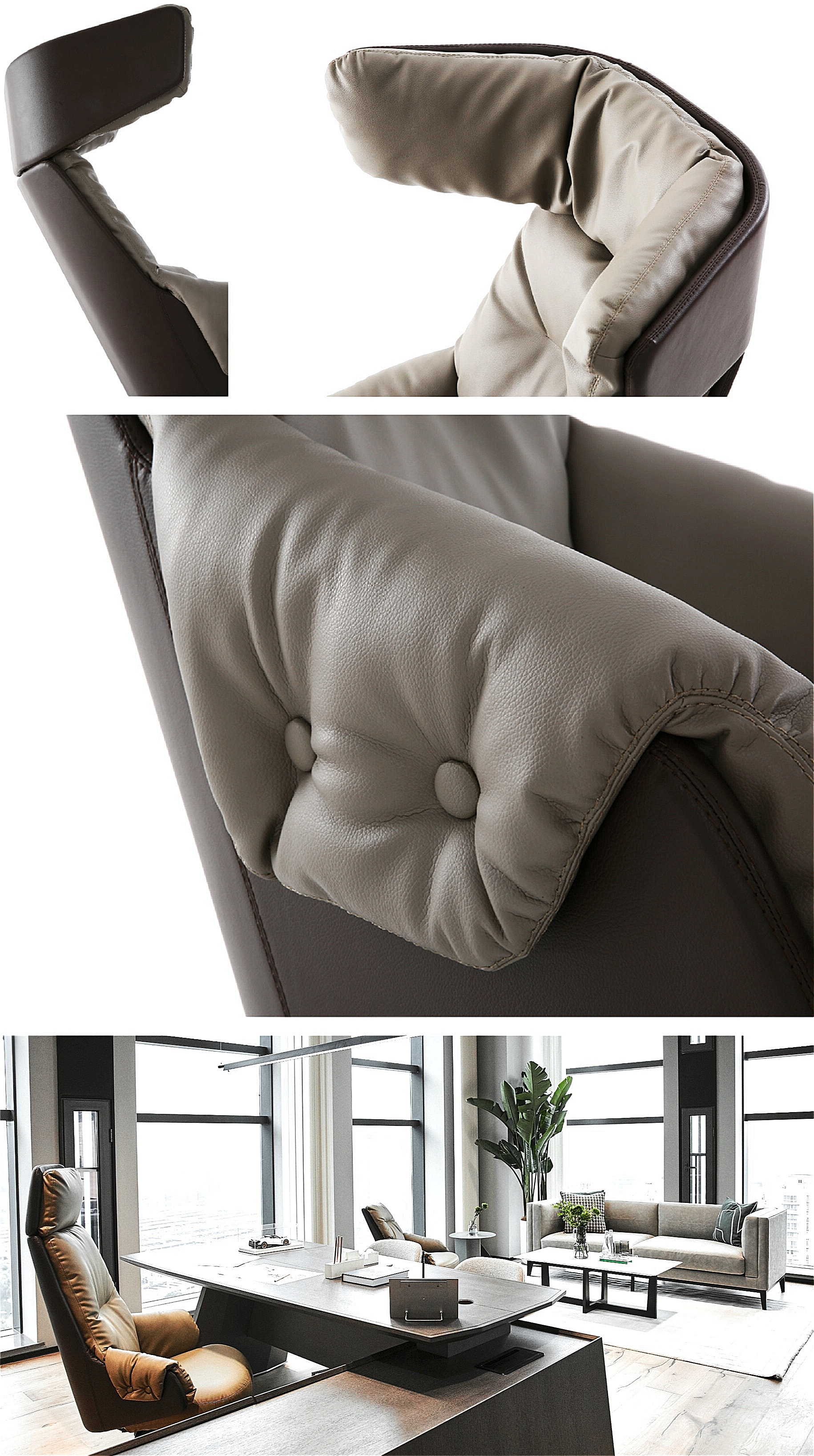 To flesh out the skeletal steel and wood framework, GRADO turns to the soft packing and upholstery production line that contributes the most to absolute seating comfort. A mix of high resilience and high-density foam almost covers all series, including the Modo, Mart, and Swell sofas, recognized as the top three popular sofas historically. The polyester fiber mostly goes to making up the pillows as accessories for sofa modules. The polypropylene (PP) cotton features the new Cuddle sofa series. The premium down-fill can elevate seating experiences significantly, such as the Lord lounge chair characterized by a swollen high back, ensuring working comfort for the chief manager.