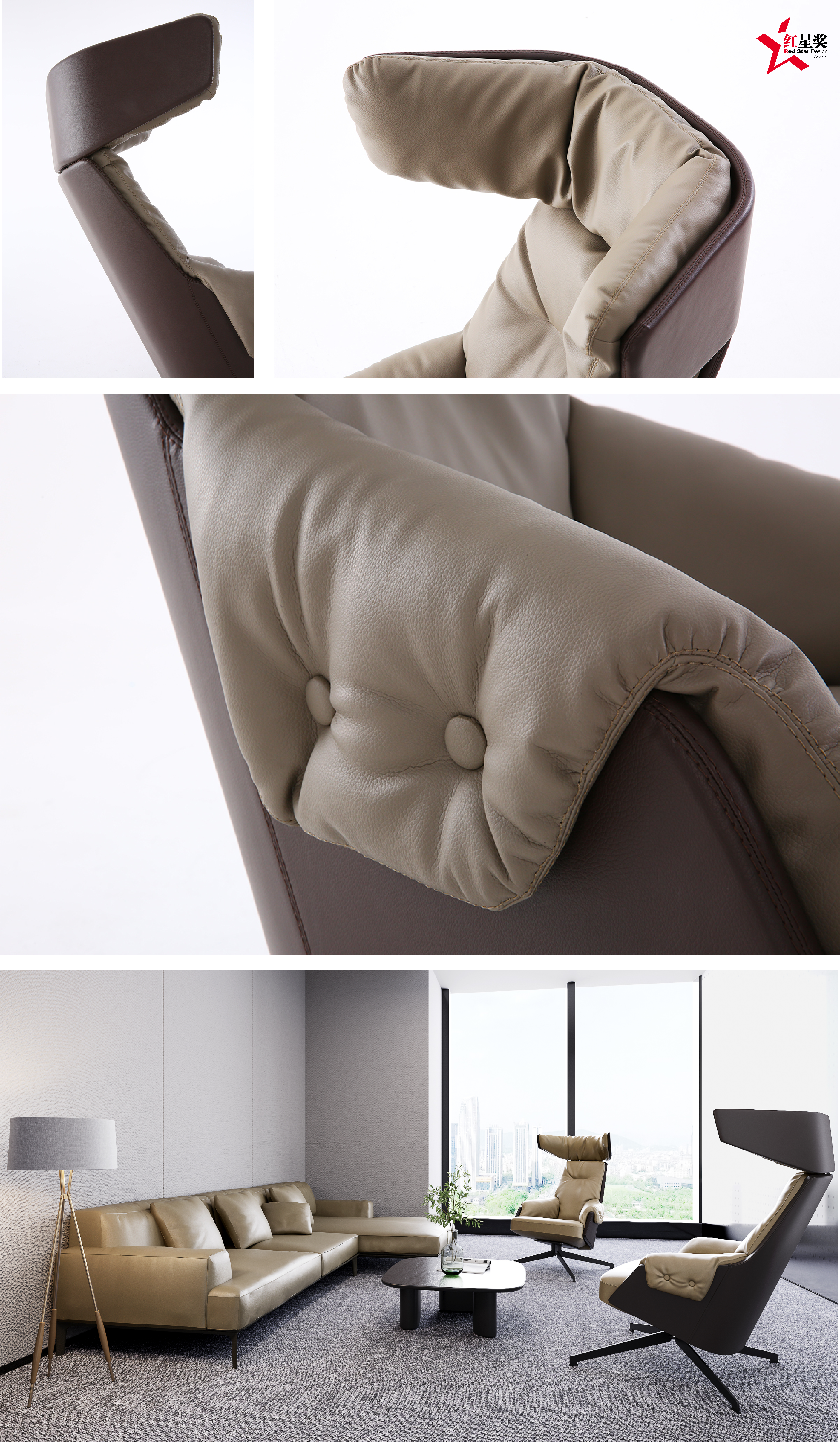 The Beatles Lounge Chair distinguishes itself at DESIGN SHENZHEN due to its exceptional uniqueness and successful inspiration drawn from nature. The precision and humor evident in the curvature of the sponge upholstery, reminiscent of the rounded back of a beetle, speak volumes about the playful and inventive design approach implemented in this chair.