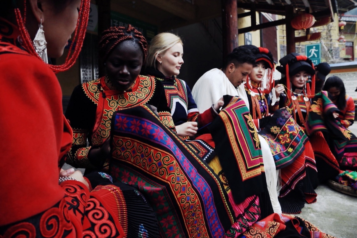 Besides, various embroidery techniques such as pressure-line embroidery, wrapped-line embroidery, flat embroidery, cloth-pasted embroidery, edge-locked embroidery, and patch embroidery are also the highlights of Yi's embroidery crafts, each showcasing distinctive characteristics. These techniques and patterns, characterized by symmetrical textures and vibrant color contrasts, reflect the warm and cheerful nature of the Yi people. Grado's emphasis on ethnic minorities' craftsmanship is evident through the intricate incorporation of traditional Yi embroidery, symbolizing the brand's commitment to preserving and promoting the cultural heritage of ethnic minorities on a global platform at the 2024 Milan Design Week.