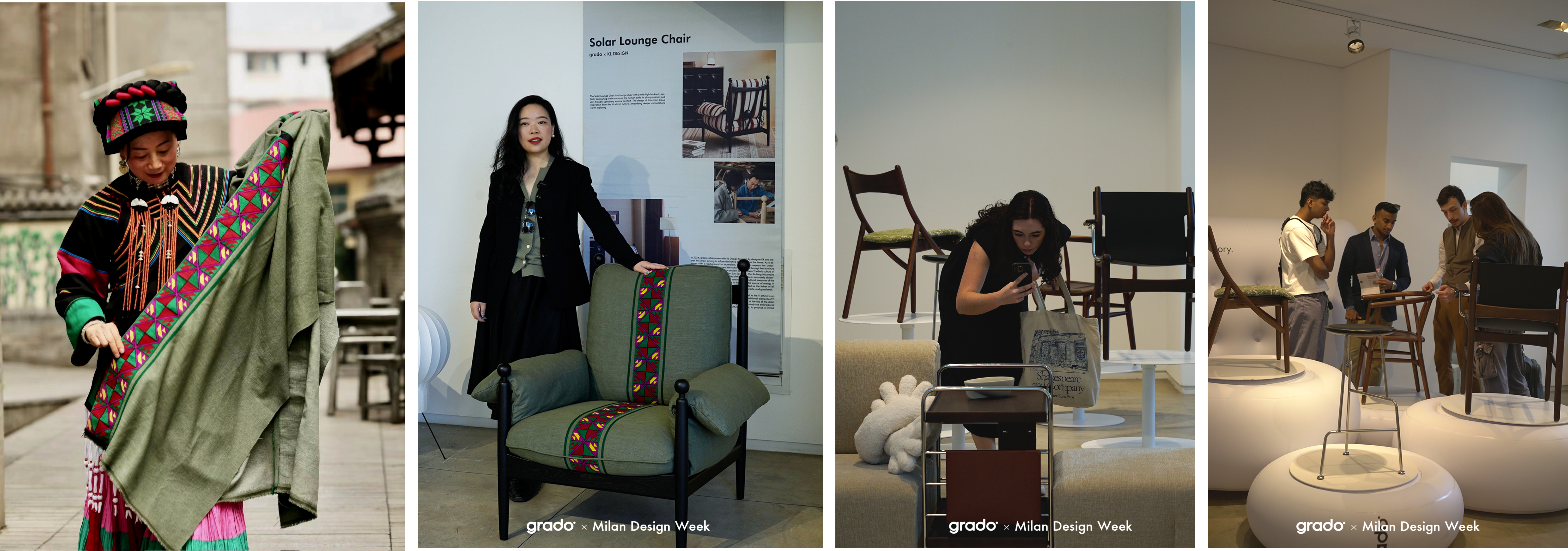 Another highlight is the debut of the Solar Lounge Chair. This chair unveils the traditional Yi embroidery art from Liangshan Prefecture of Sichuan Province, which holds the distinguished honor of being listed as the Ninth Batch of the National List of Intangible Cultural Heritage by the State Council. The chair's design ingeniously integrates cultural heritage into contemporary furniture, a concept well-received internationally. We take special care in infusing the symbolism and motifs of the Yi ethnic group into the chair's design. By incorporating traditional Yi embroidery patterns and totemic symbols, selecting materials significant to Yi culture, and employing traditional craftsmanship techniques, GRADO successfully bridges the past with the present, celebrating the unique heritage and artistry of the Yi ethnic group. This fusion of contemporary furniture design with traditional Yi cultural elements resonated with a diverse audience, showcasing the universal appeal of cultural heritage in innovative design.