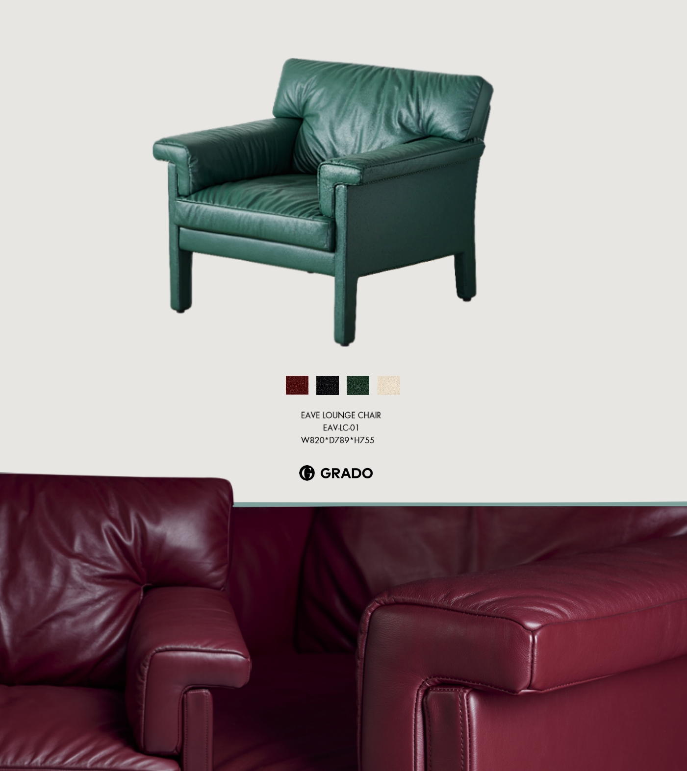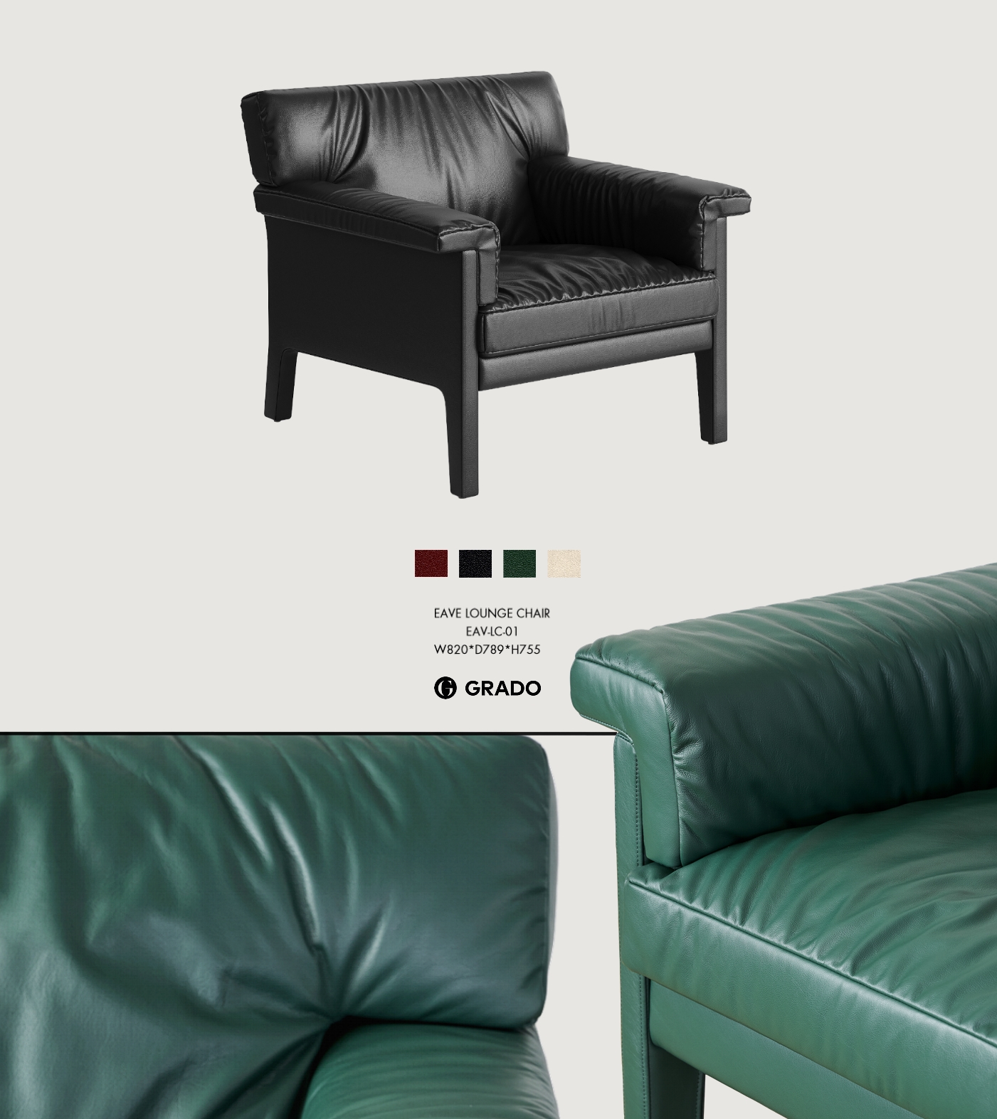 The unique architectural form of the multi-layered horse-head wall in HUI(徽) architecture is renowned for its graceful curves and distinct layered effect. In our design process, GRADO has condensed and refined the aesthetic element of the folding of the horse-head wall to the armrest folding of the chair, creating a unique upholstery design. The folding of the armrest not only visually presents a sense of depth but also enhances comfort. The seamless curves at the junction of the chair back and seat cushion echo the turning points of the horse-head wall. The entire design emphasizes meticulous attention to detail, ensuring that every curve and angle of the chair appears naturally smooth, while also incorporating modern minimalist style, combining aesthetics with practicality. The Eave Lounge Chair is not only a piece of furniture but also an artistic creation that embodies traditional and modern design concepts, imparting a unique cultural ambiance to the space.