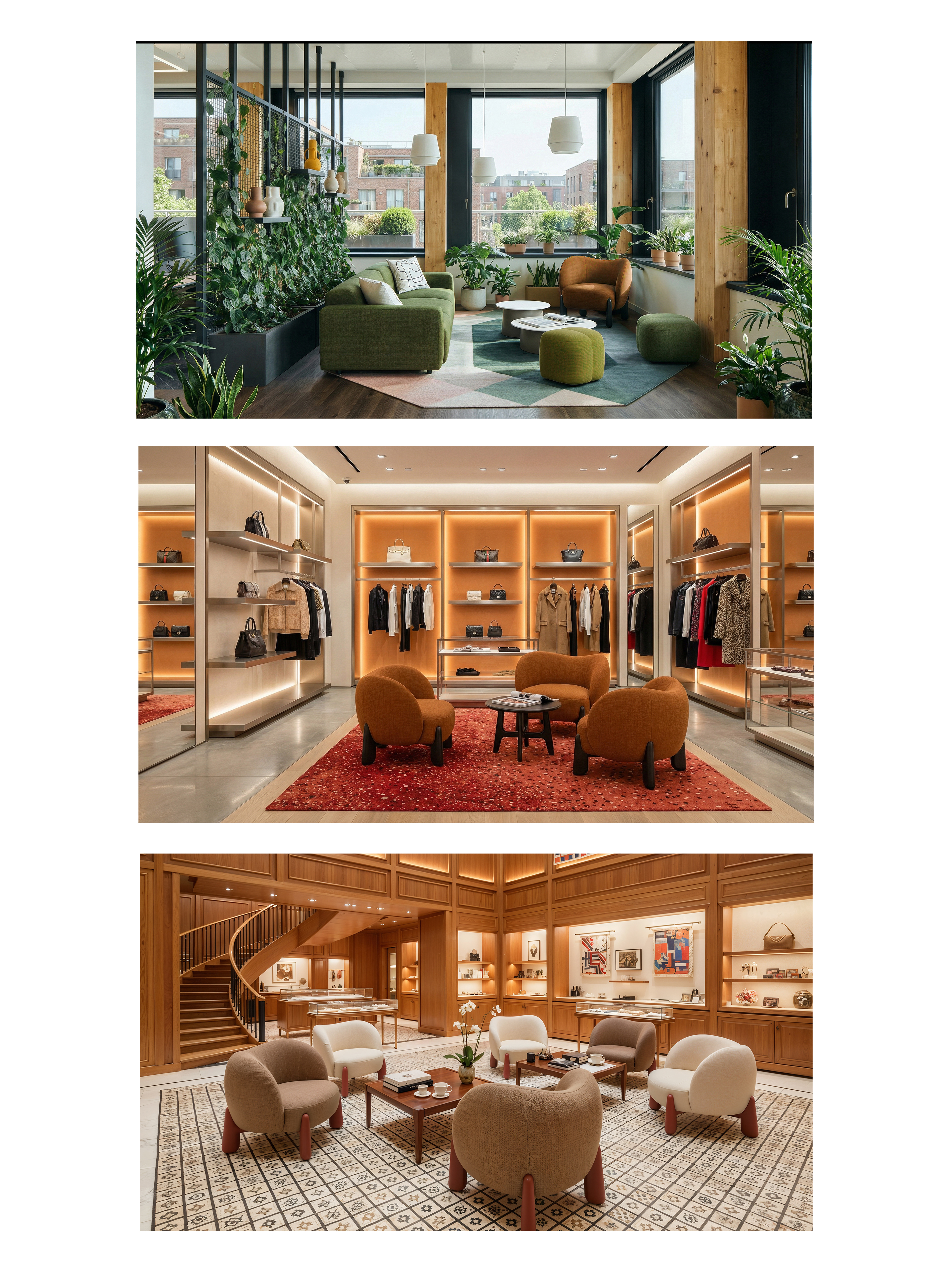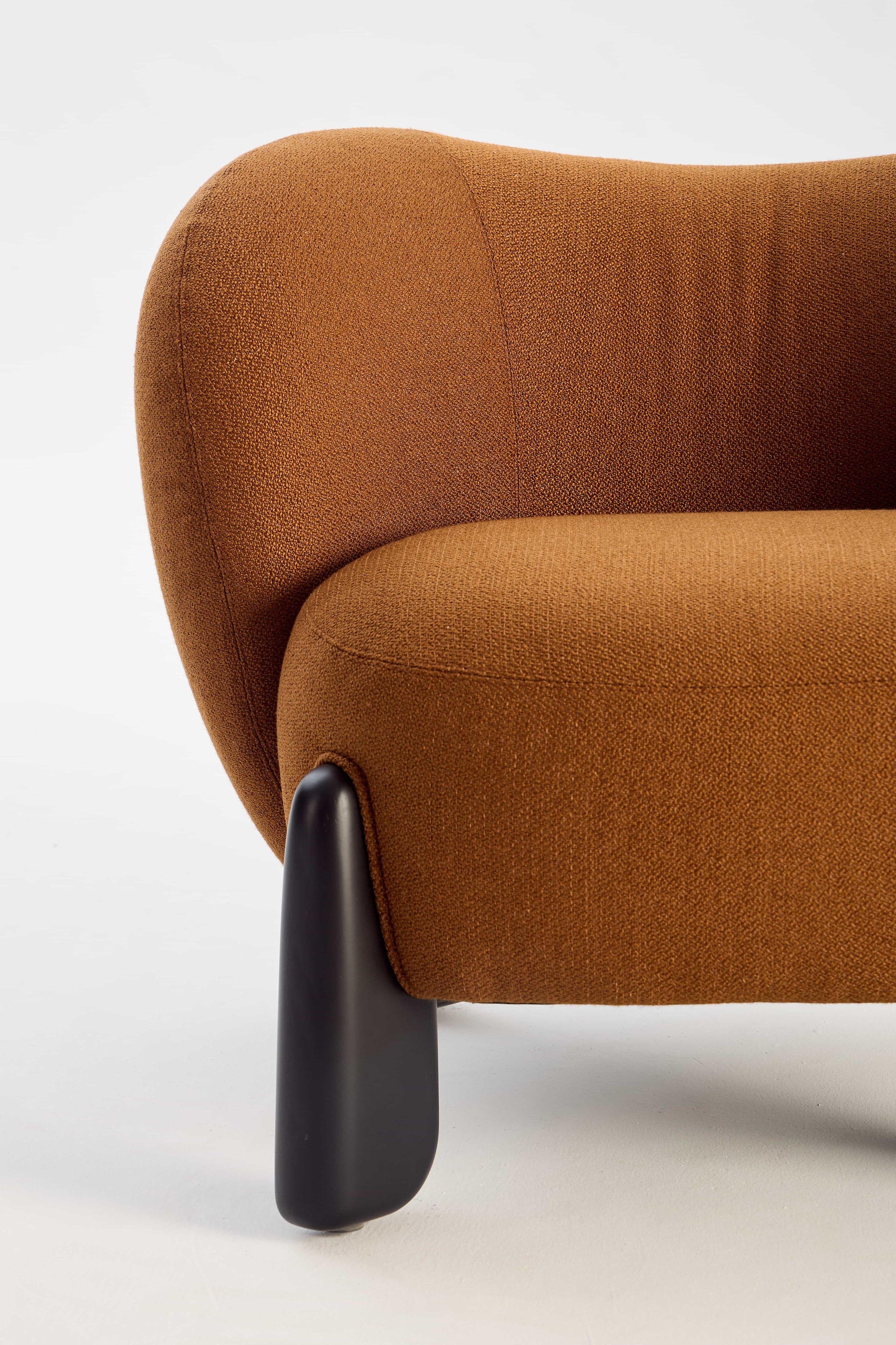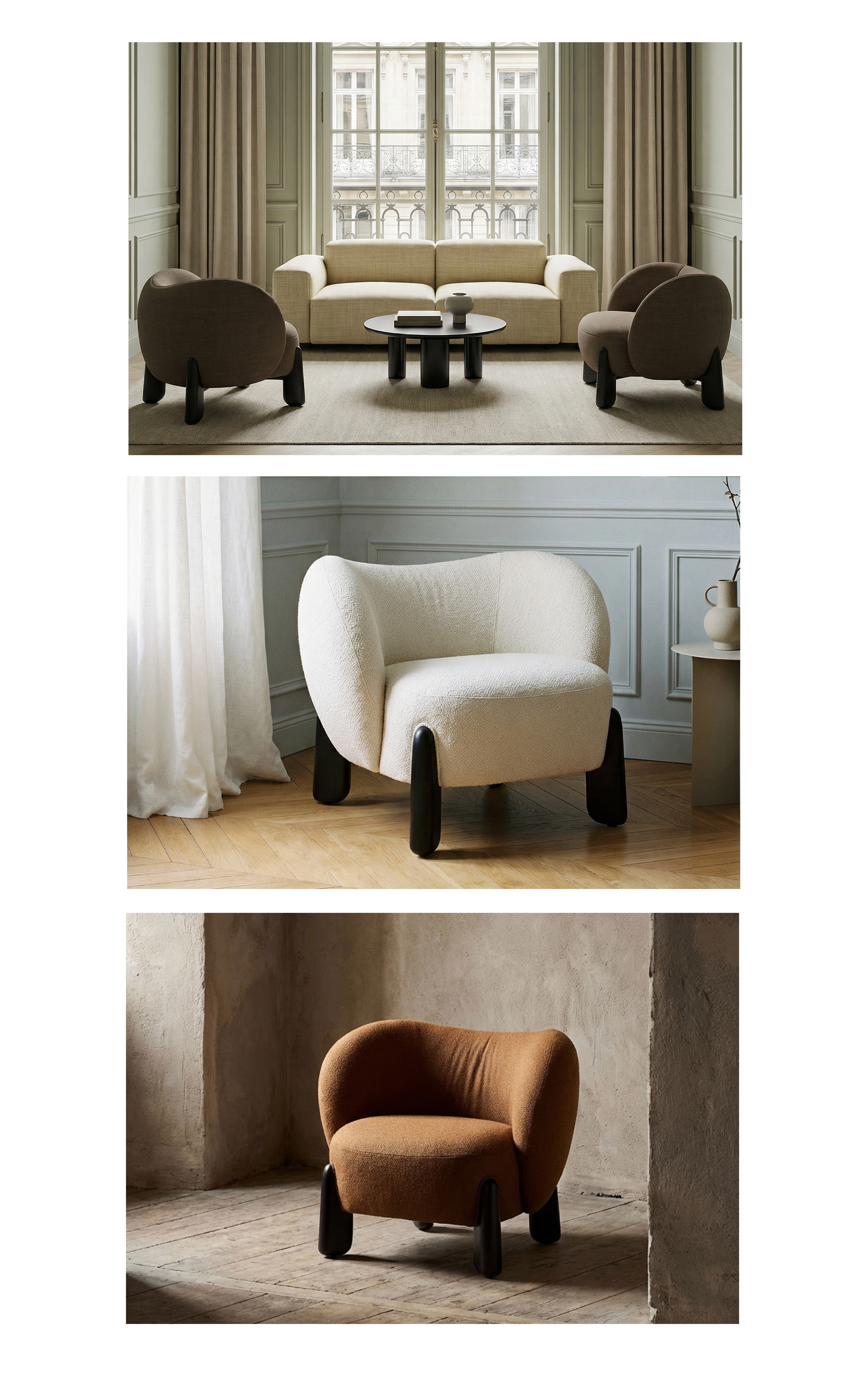 Designed for high-traffic areas, it fits easily along circulation paths, window displays, or lounge corners. A low center of gravity and column-style legs ensure stability and safety. The enveloping backrest provides gentle support without encouraging long sitting—ideal for waiting, trying on products, or brief conversations.