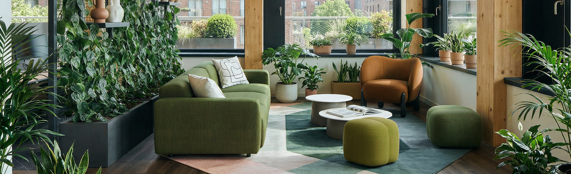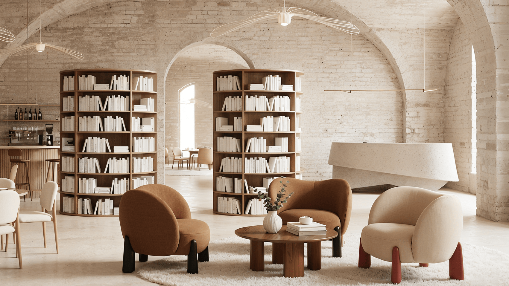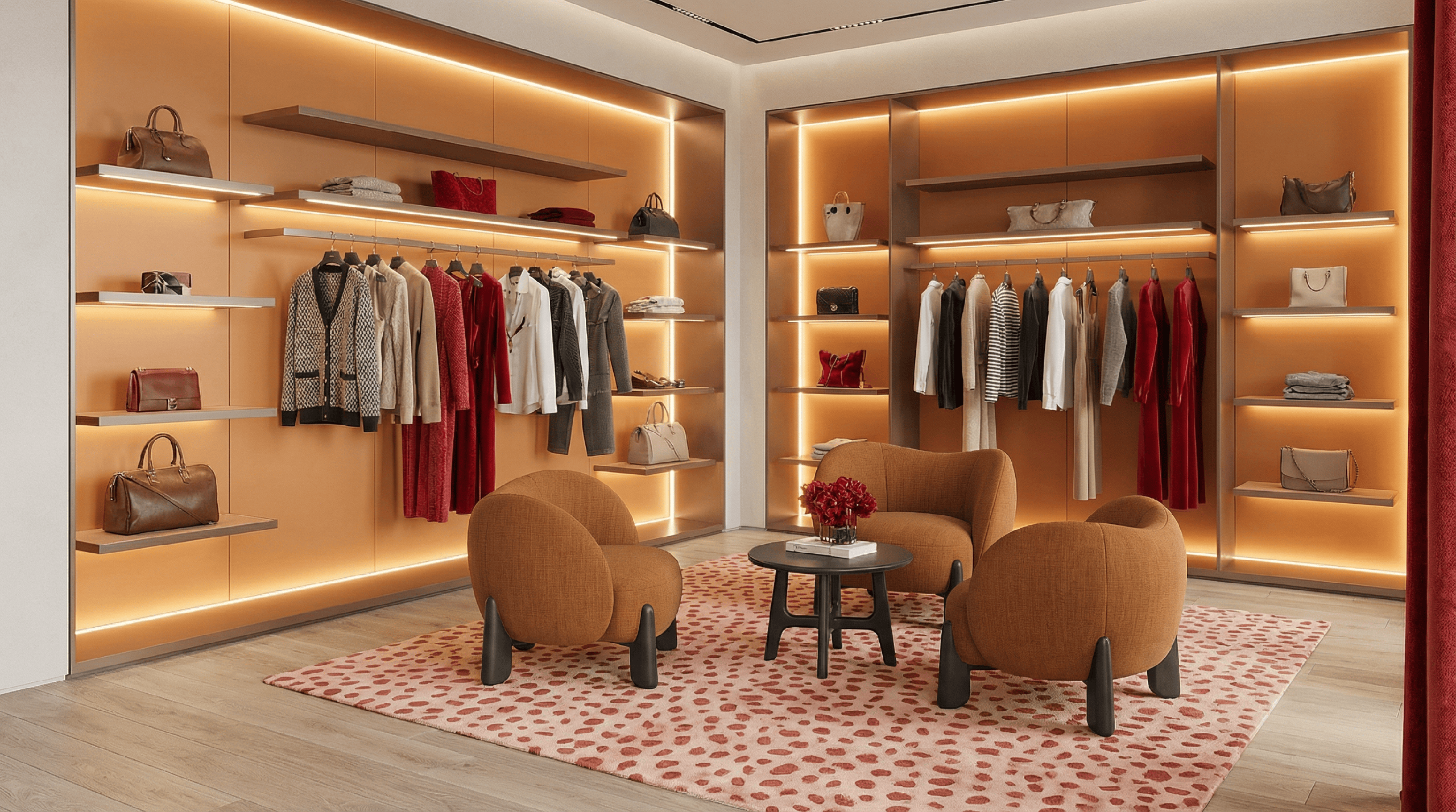 Designed for high-traffic areas, it fits easily along circulation paths, window displays, or lounge corners. A low center of gravity and column-style legs ensure stability and safety. The enveloping backrest provides gentle support without encouraging long sitting—ideal for waiting, trying on products, or brief conversations.