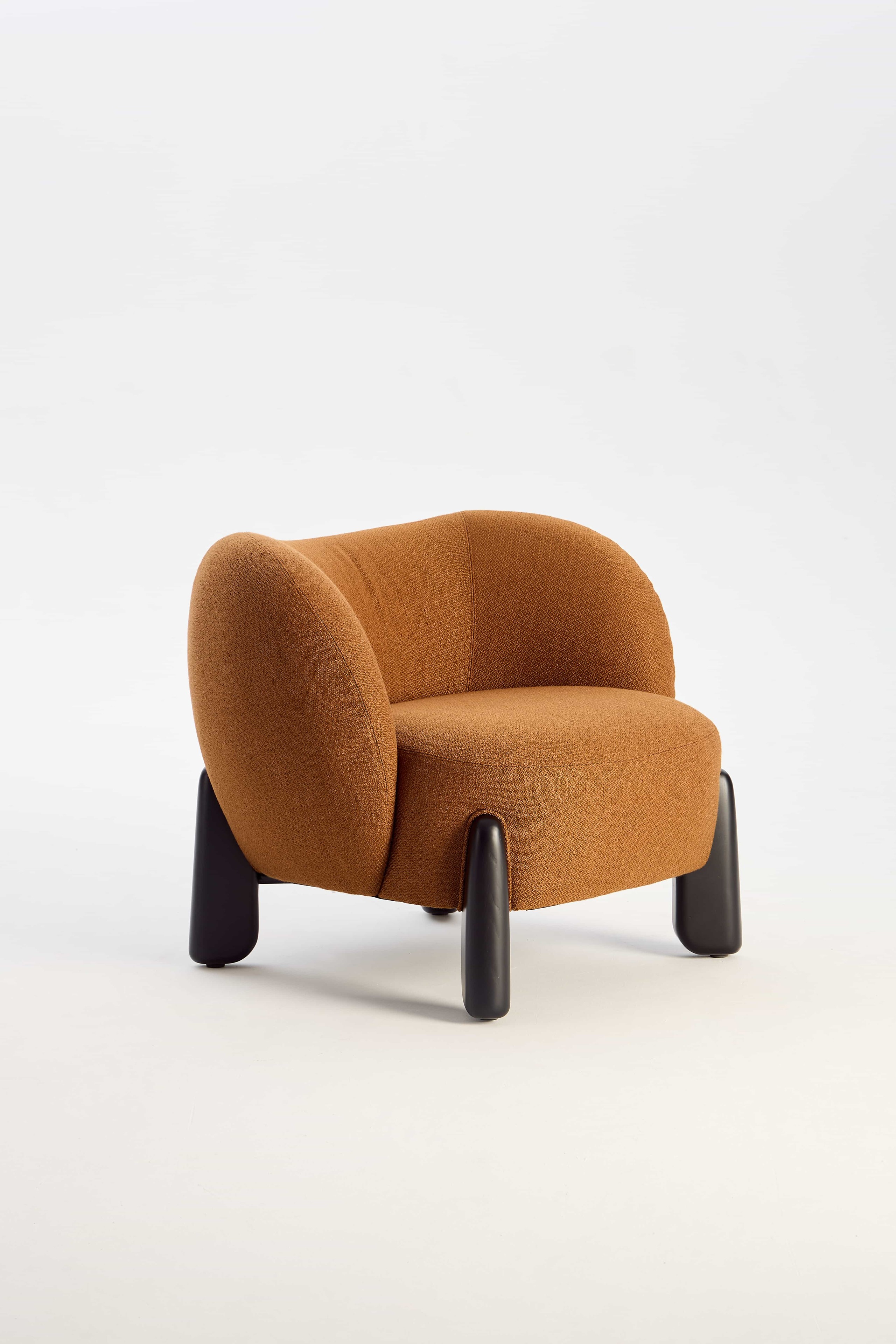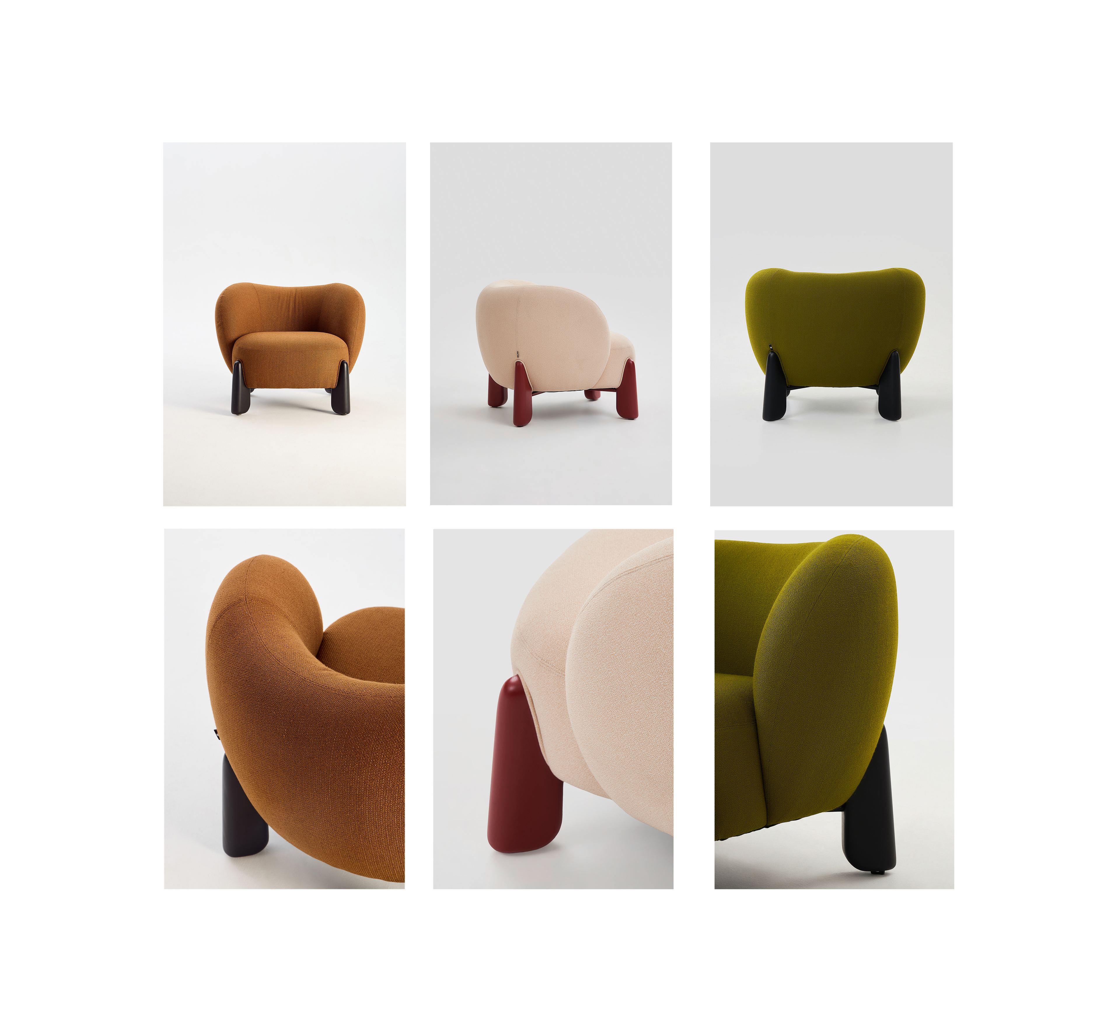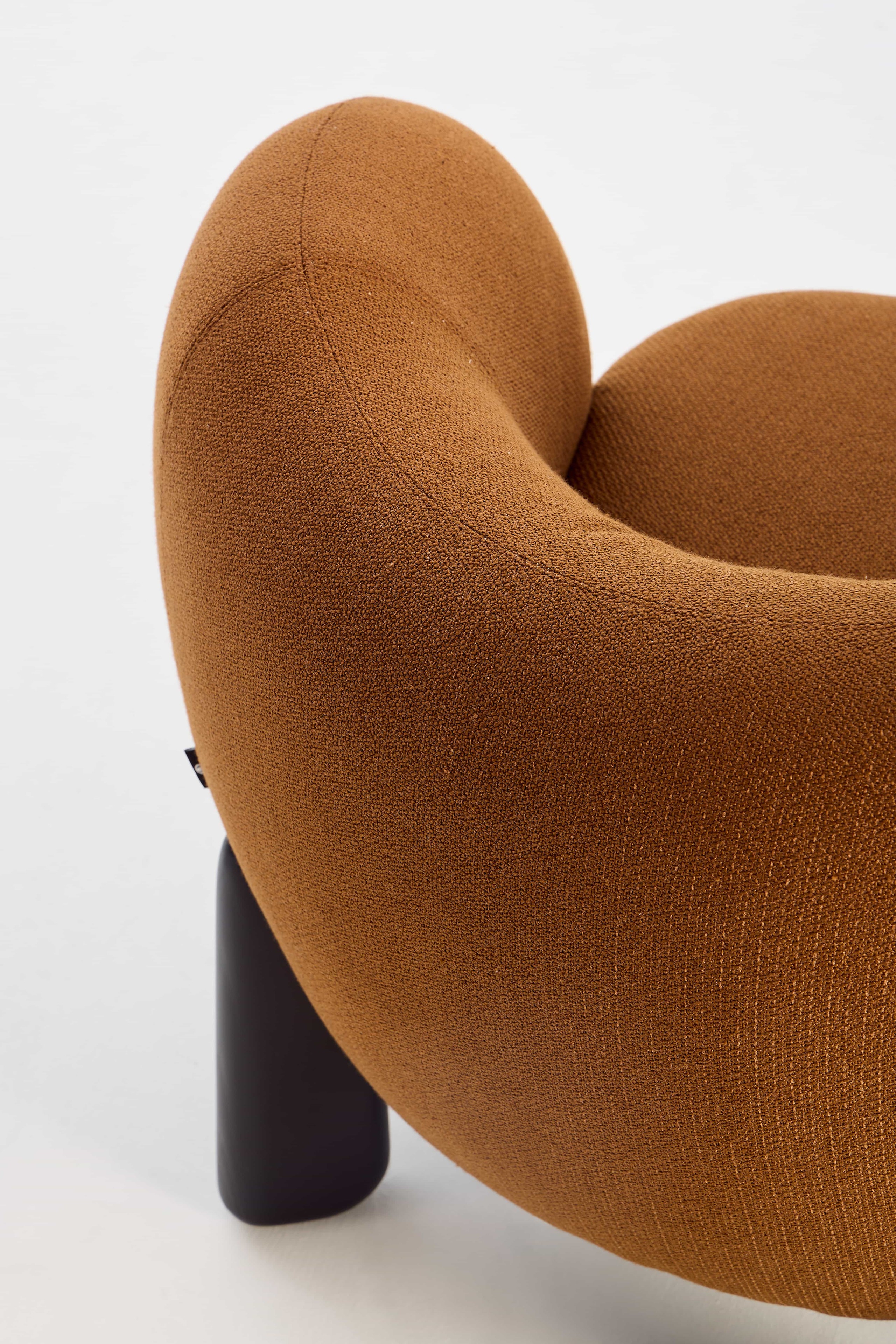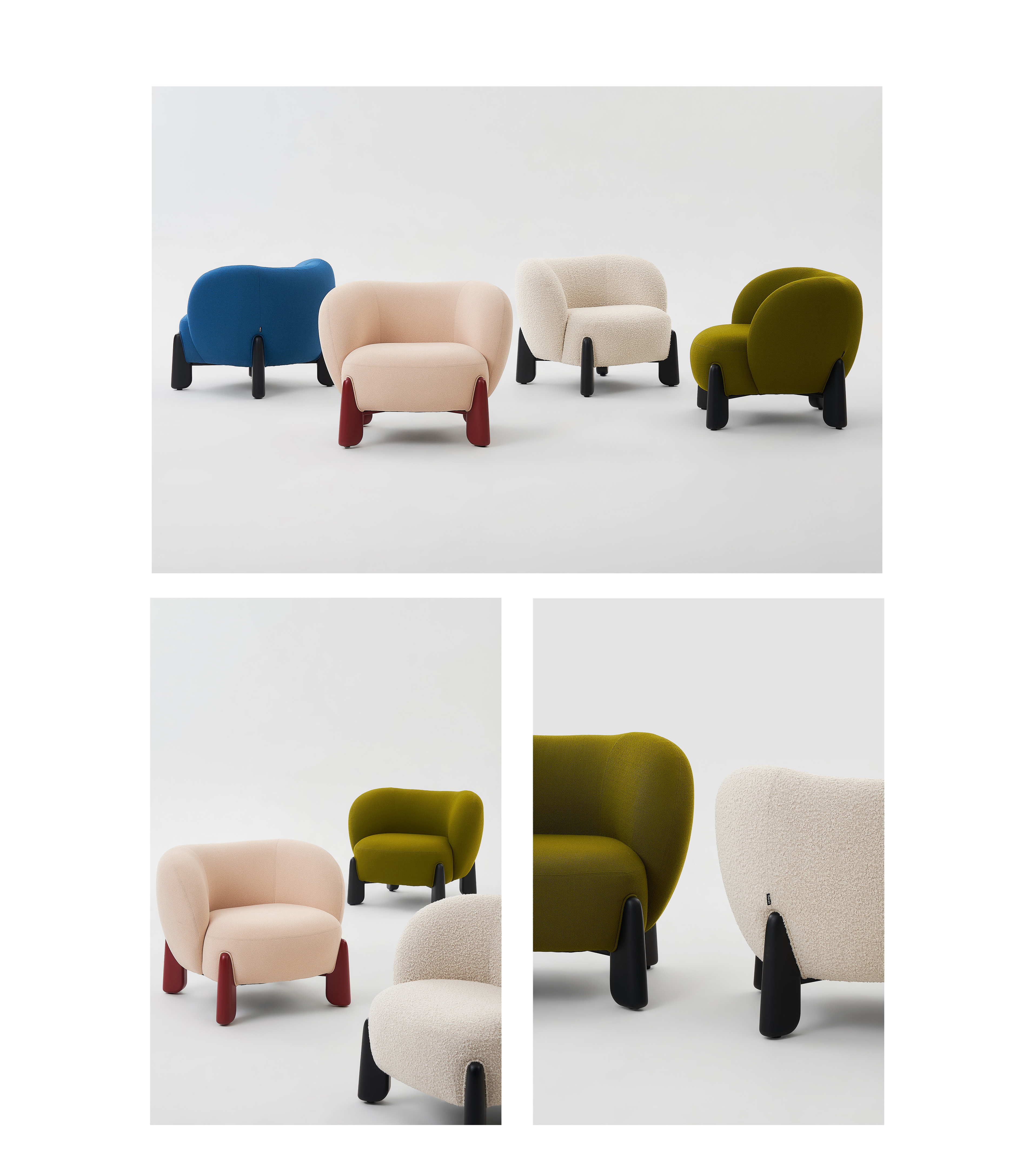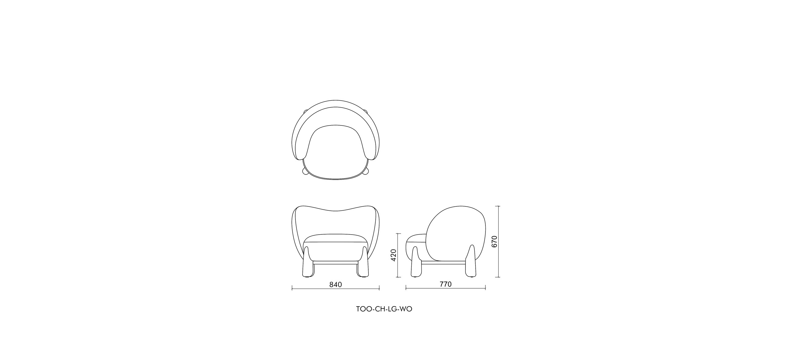 The Toothie Lounge Chair reinterprets the familiar form of a tooth. Its rounded backrest and armrests create a soft, enclosing silhouette—echoing the outline of a healthy tooth—making the design instantly recognizable and visually memorable. Solid, column-like legs anchor the chair like tooth roots, providing reliable stability beneath its light and gentle appearance.