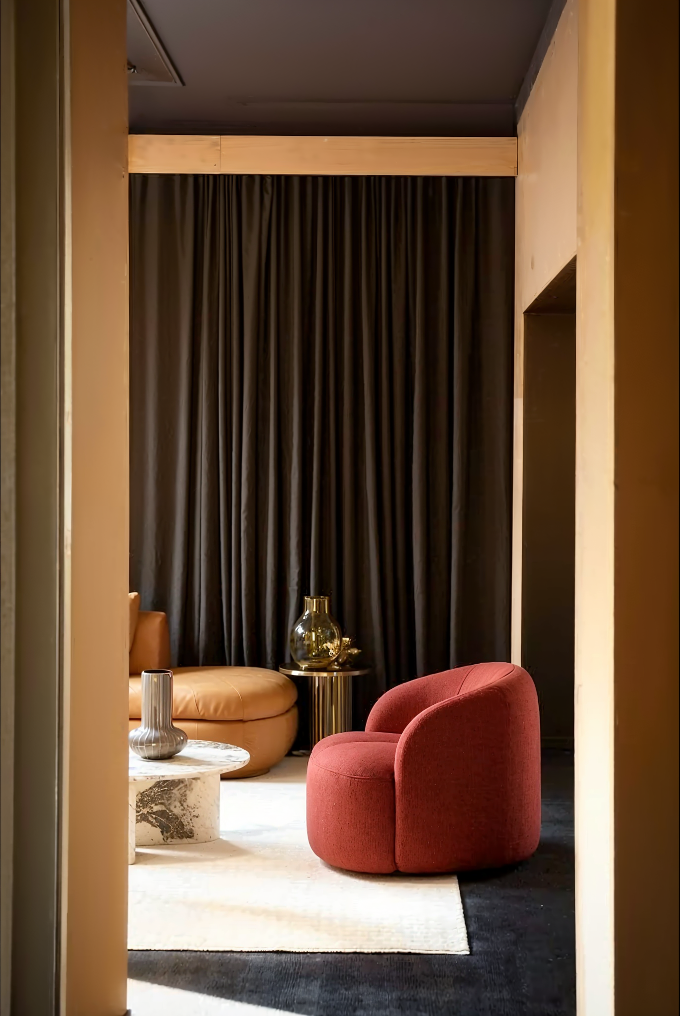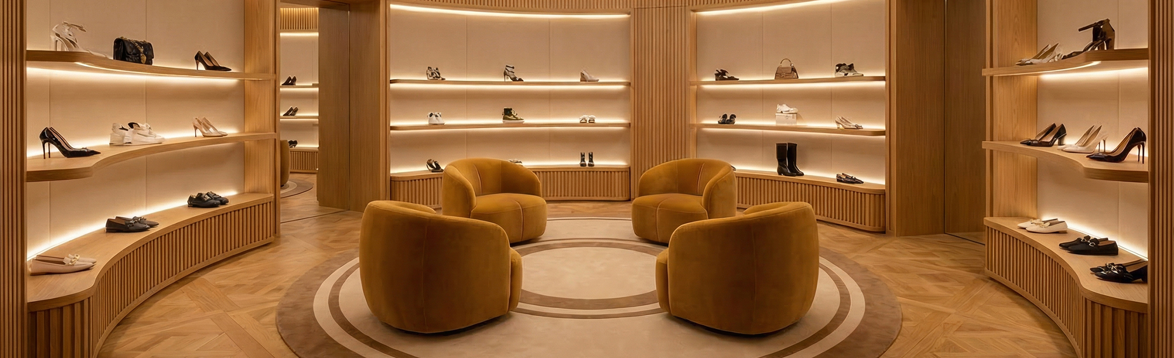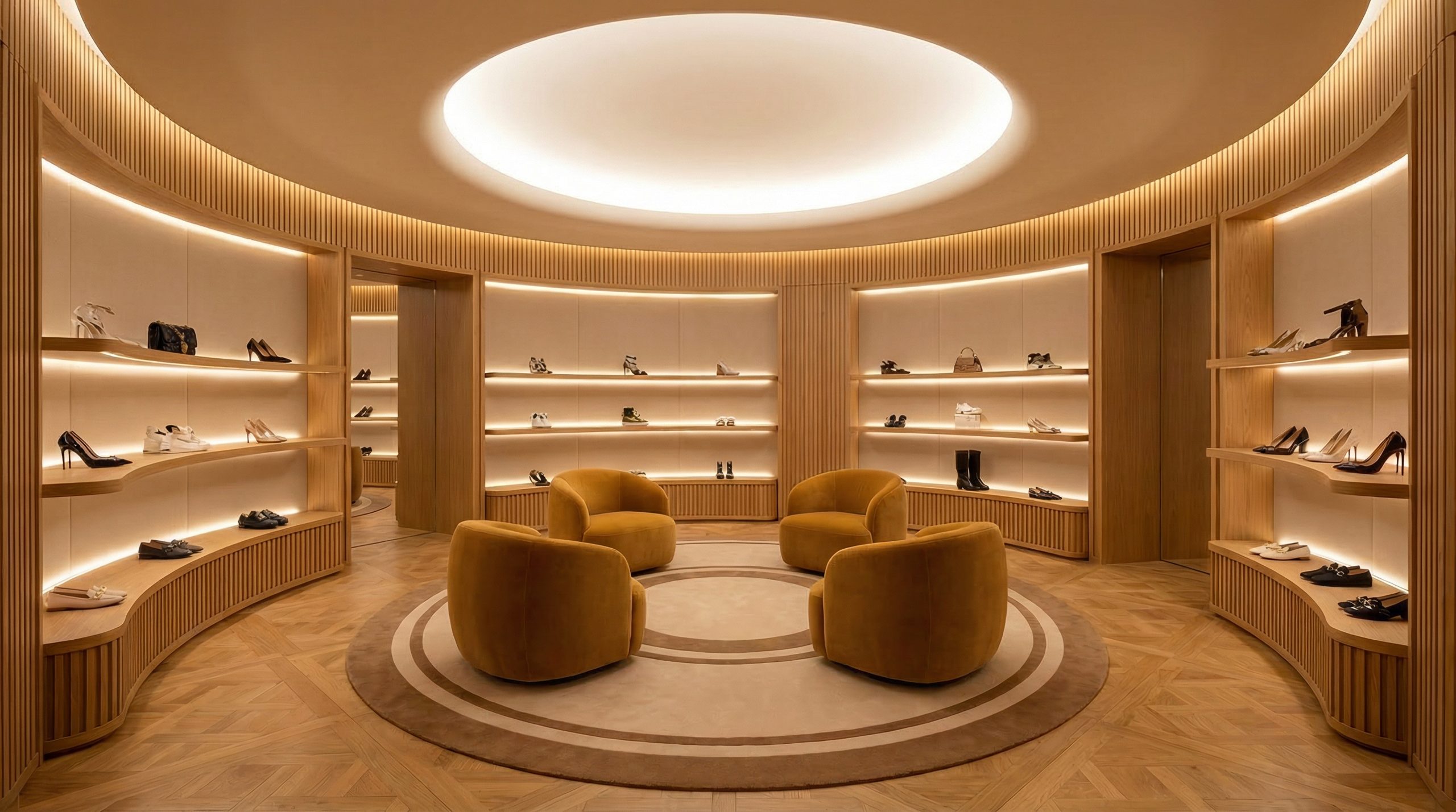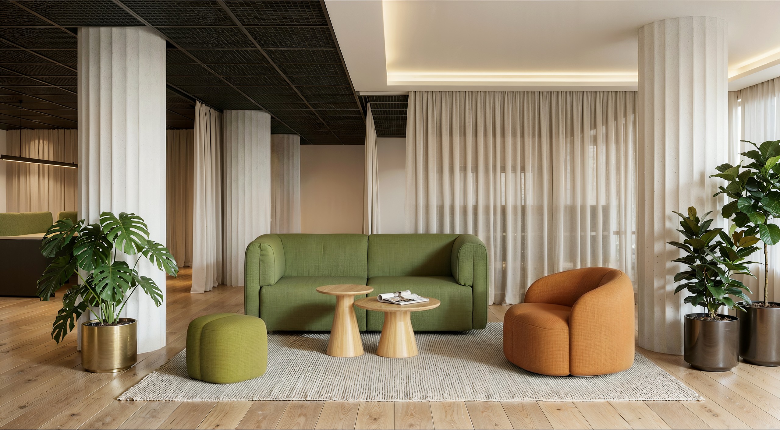 The overall silhouette remains soft and restrained, striking a balance between enclosure and openness. It has a strong visual identity without overpowering the space, allowing it to integrate naturally into luxury retail environments, premium hotels, public areas, and contemporary office settings.