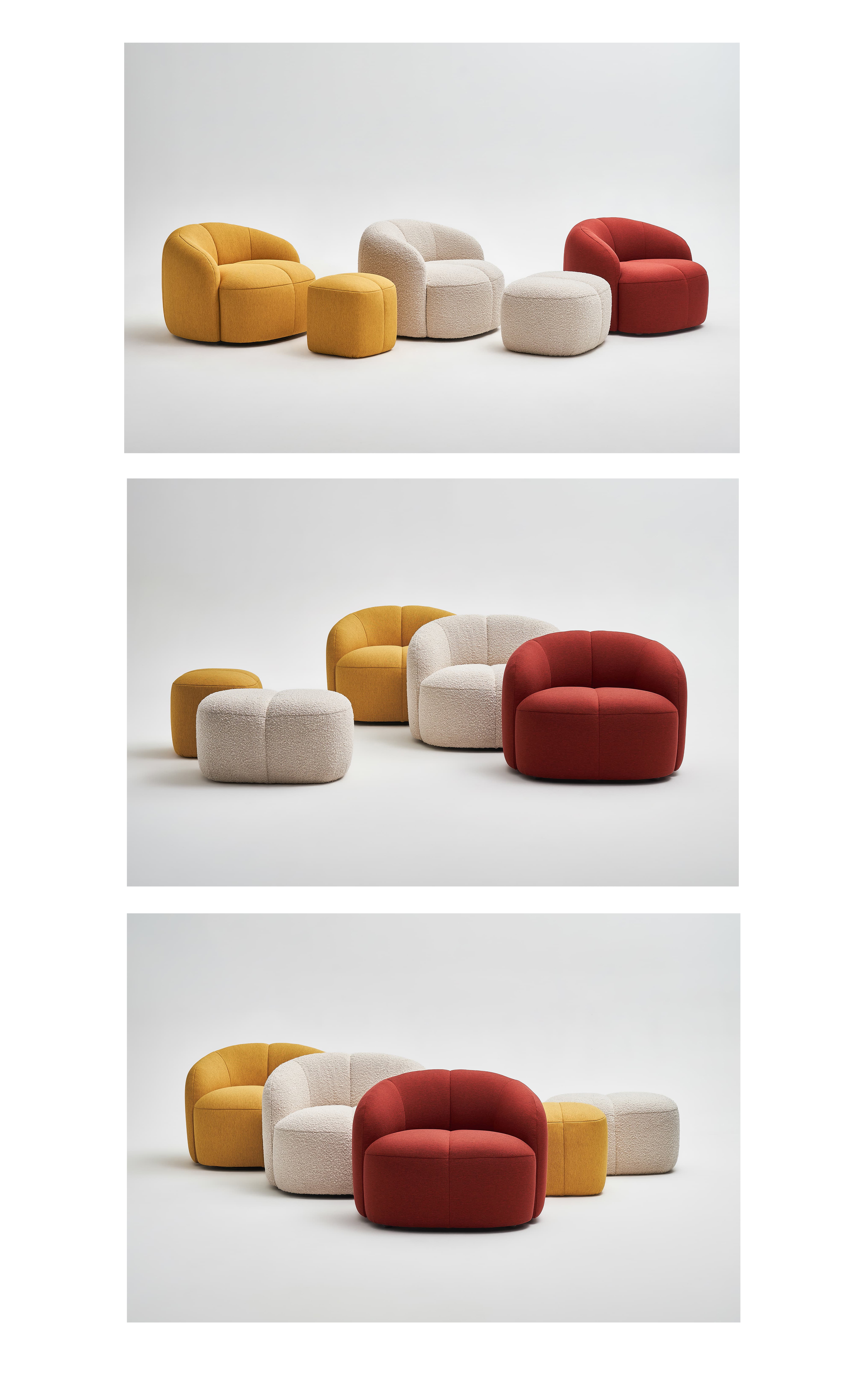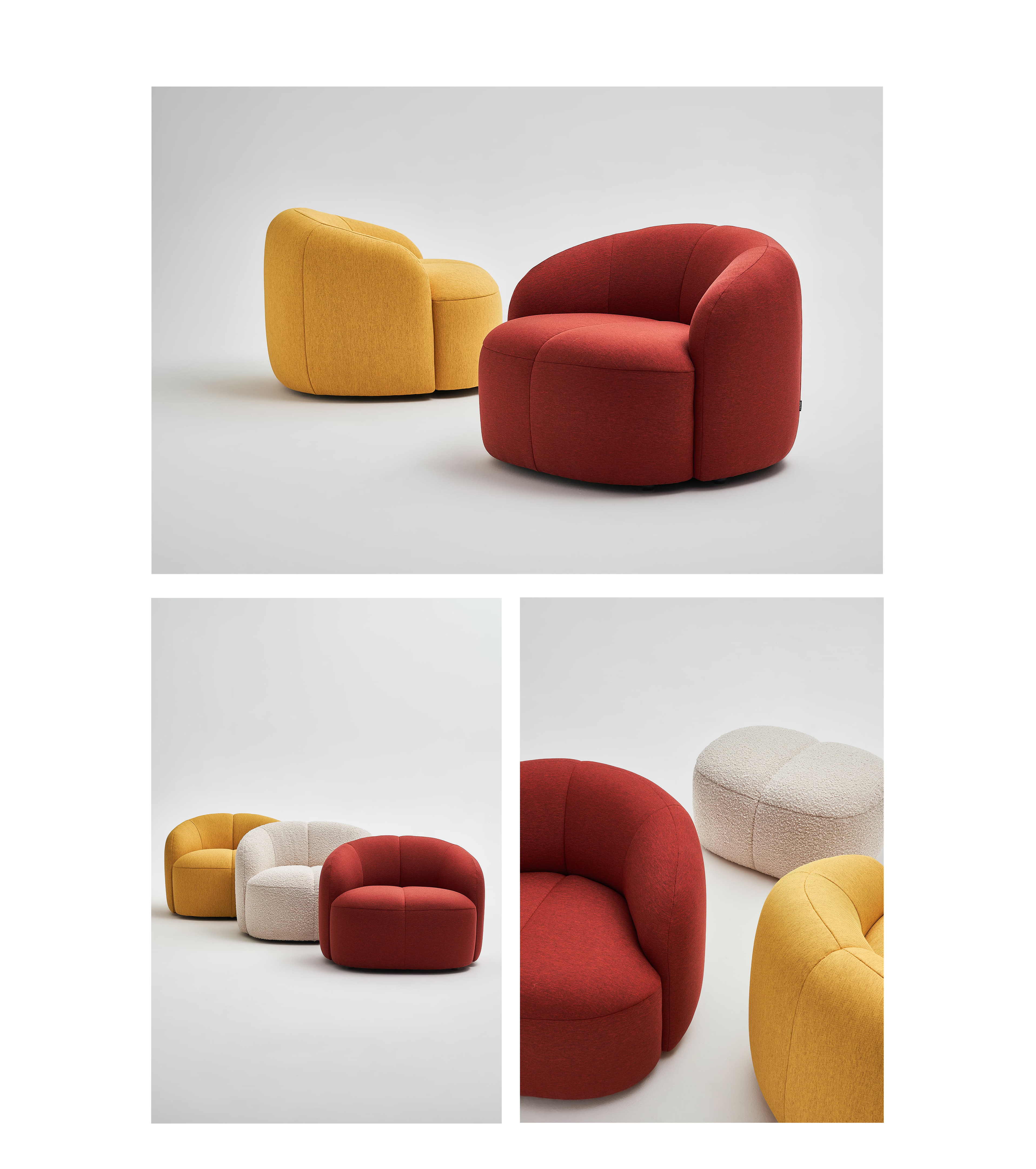 The Twin Lounge Chair features a full yet restrained silhouette with carefully balanced proportions, giving it a distinctly modern-luxury presence. It works especially well in high-end retail, commercial display, and reception environments — whether used as a single statement piece or arranged in clusters, it naturally elevates the space.The twin-shell design creates a light and dynamic visual impression, making the chair feel warmer and more welcoming than many heavier, more formal lounge pieces. This also makes it highly suitable for education spaces and hybrid public environments.