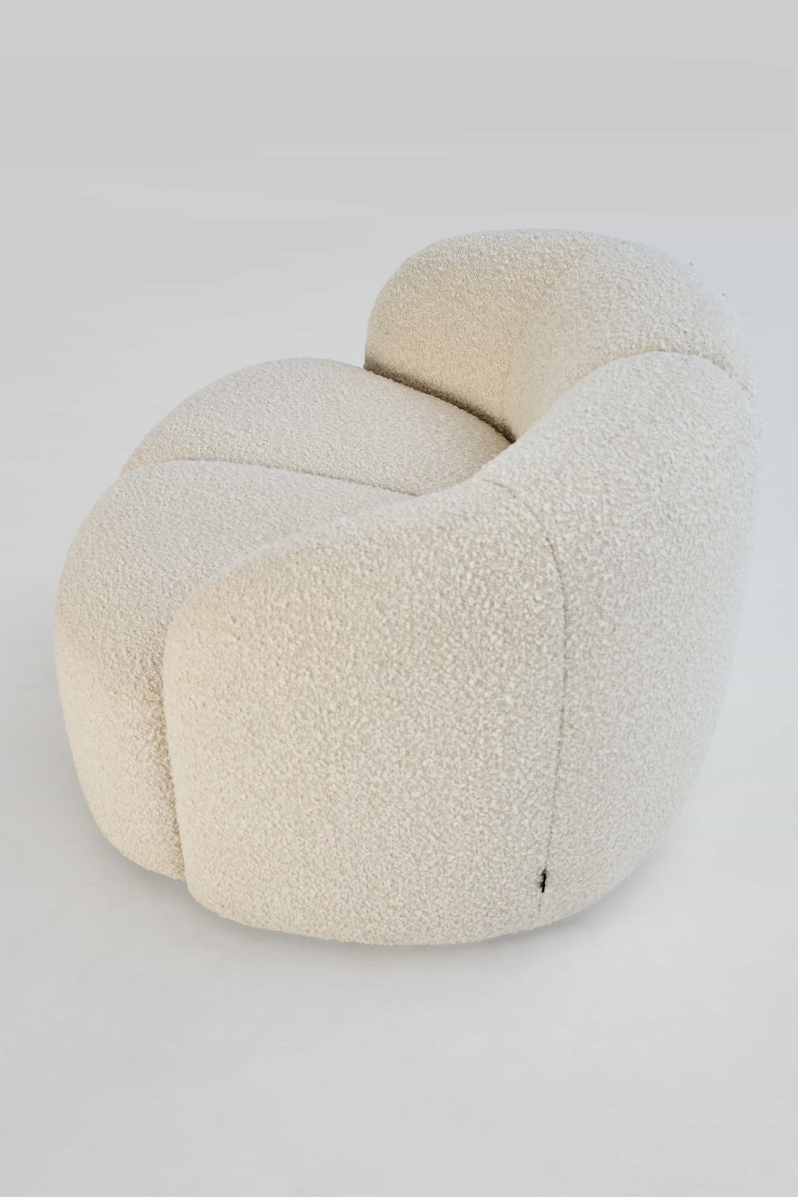 The Twin Lounge Chair draws inspiration from the natural logic of mitotic cell division — one becoming two, two becoming four. This orderly process of growth is translated into a pair of full, continuous seating volumes that mirror and respond to one another, forming a harmonious twin structure.