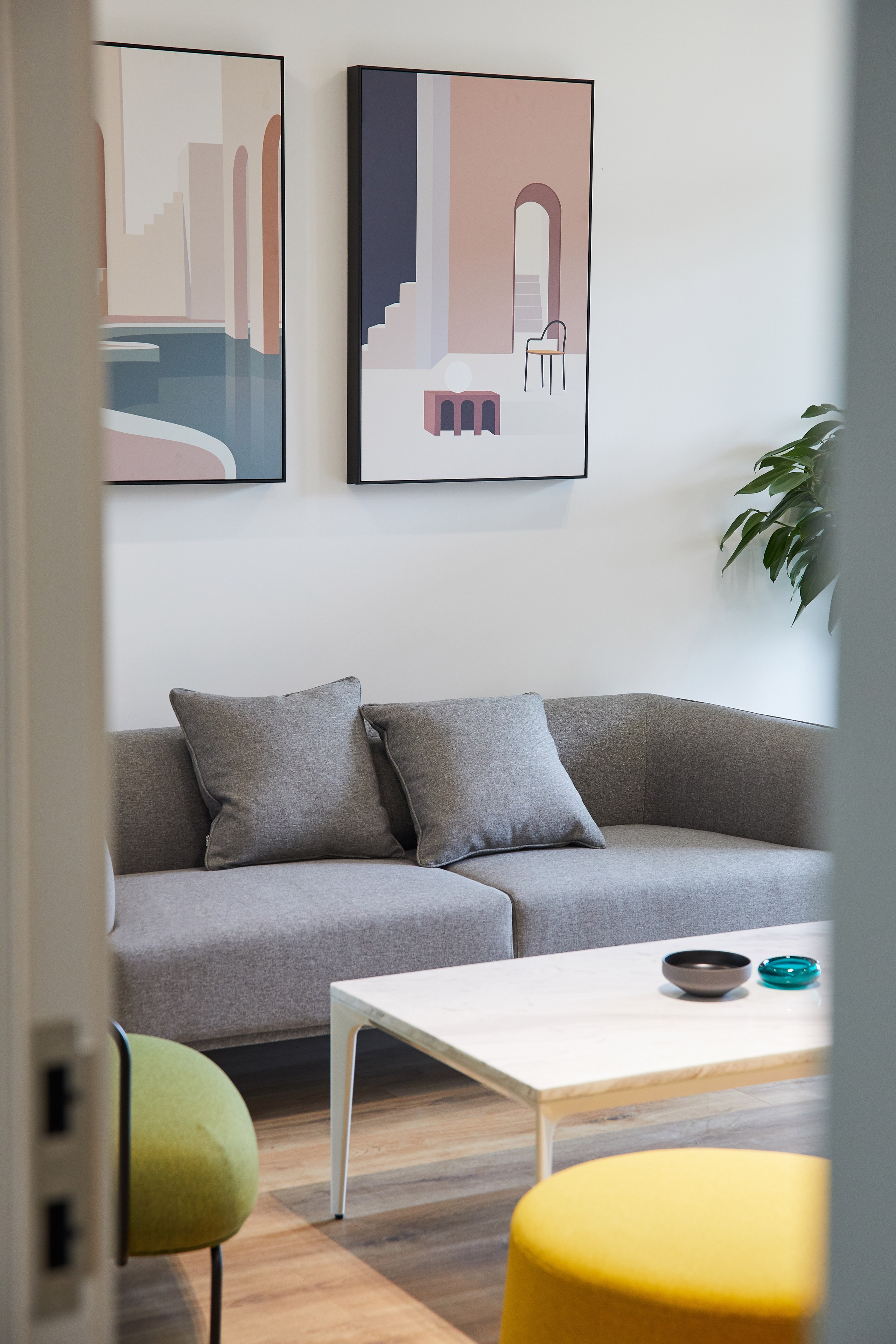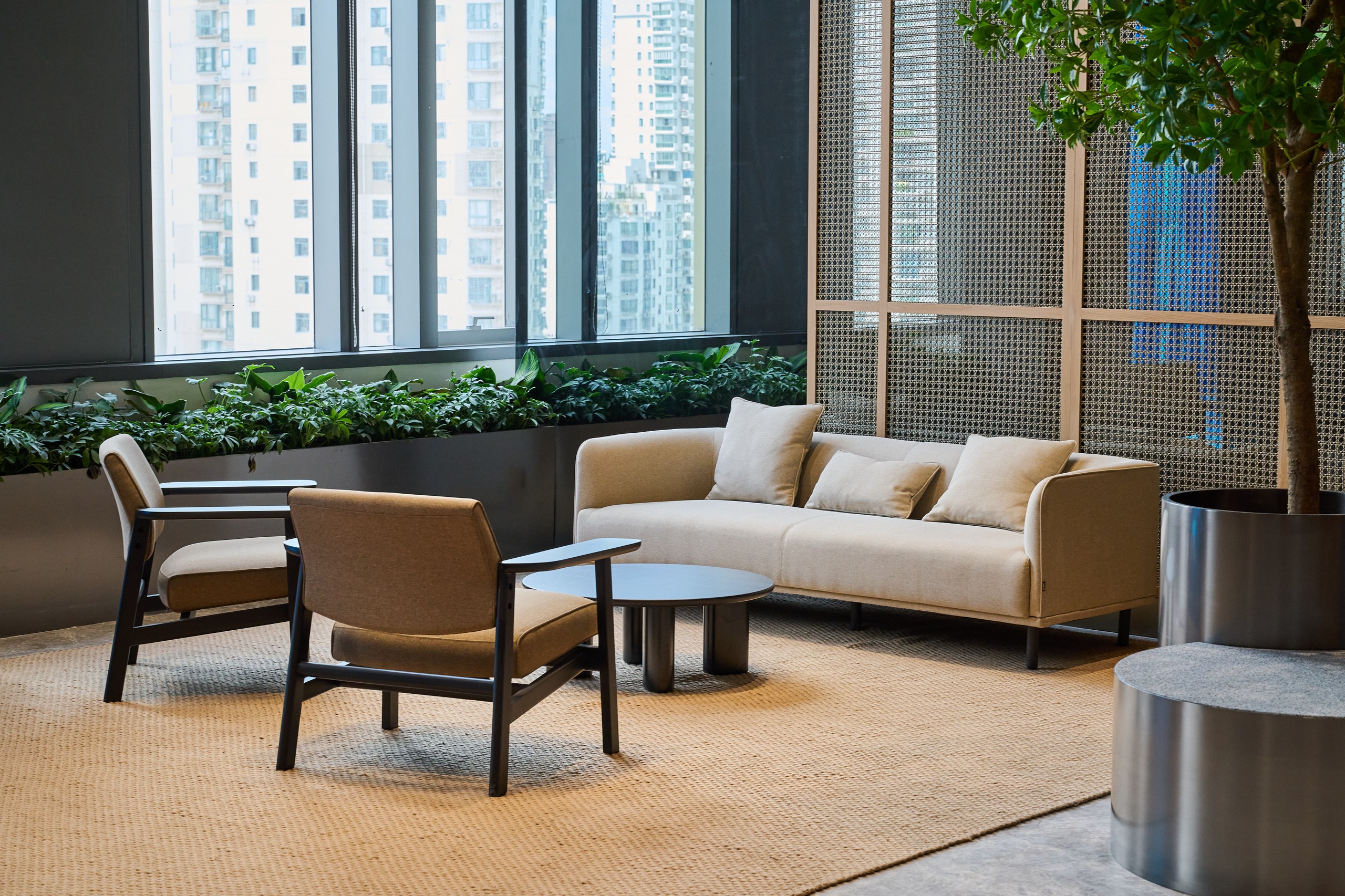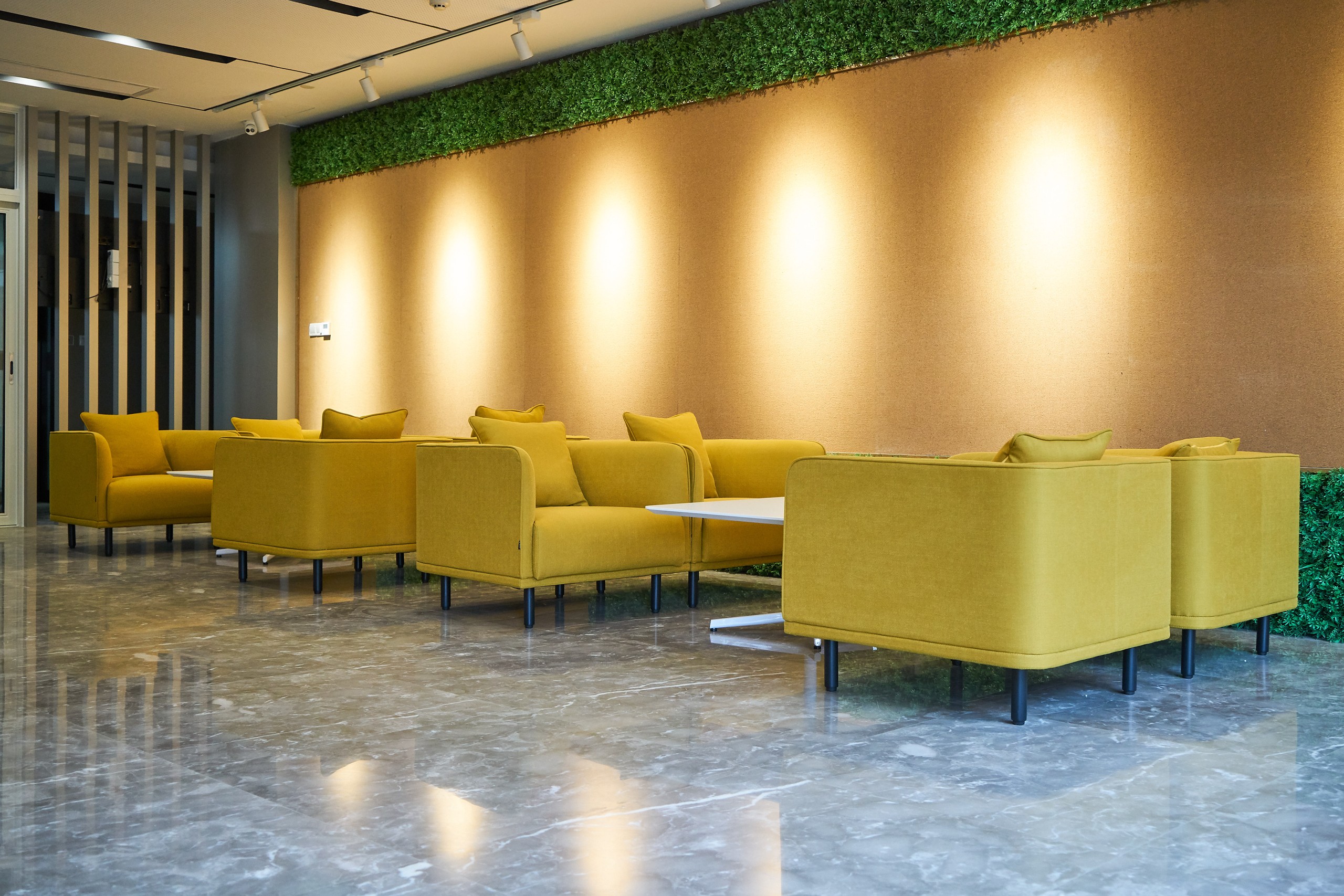 The sofa body is form of pine frame and plywood, fill in high resilience sponge/ Base is made of φ37mm steel tube.