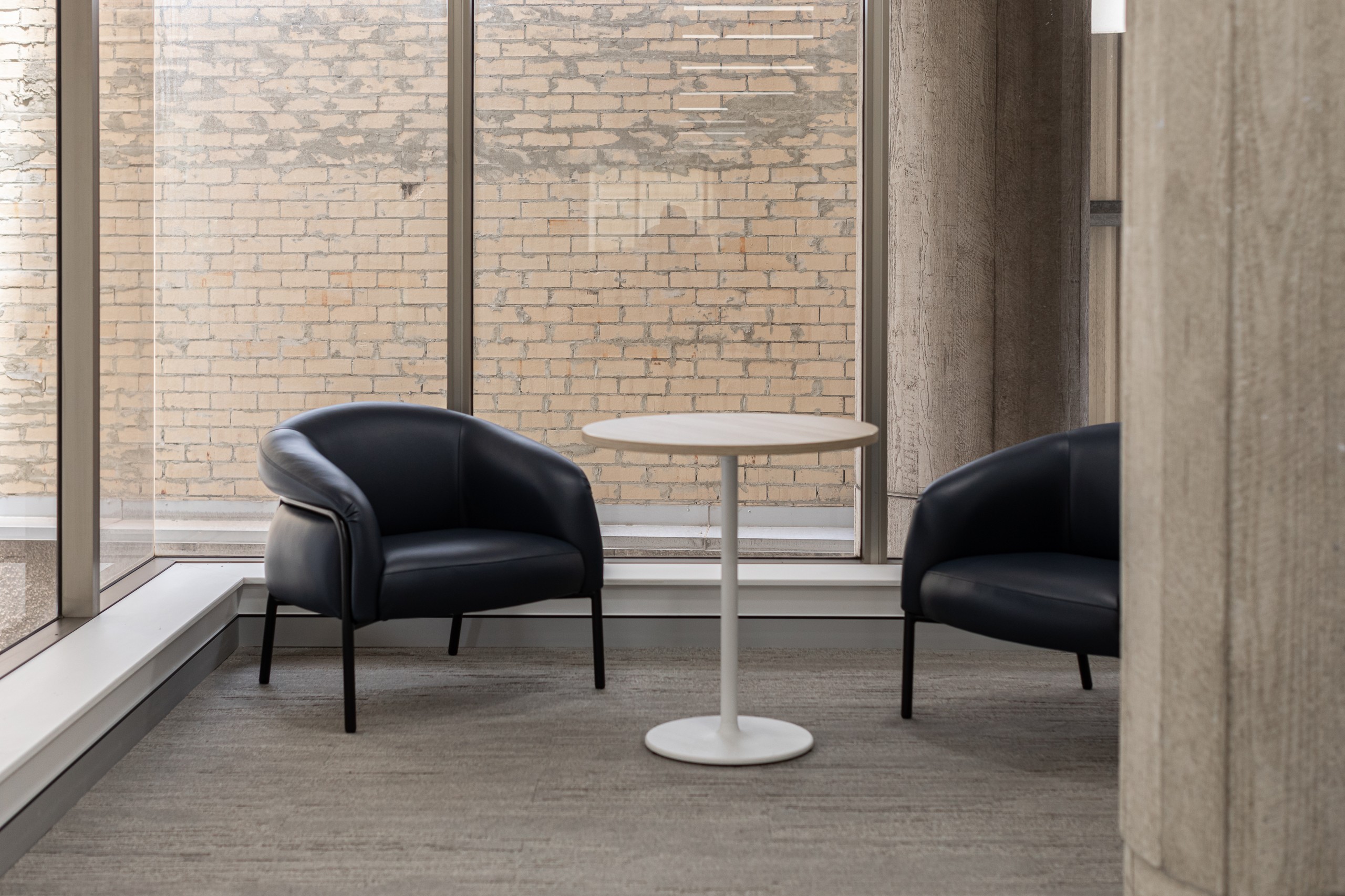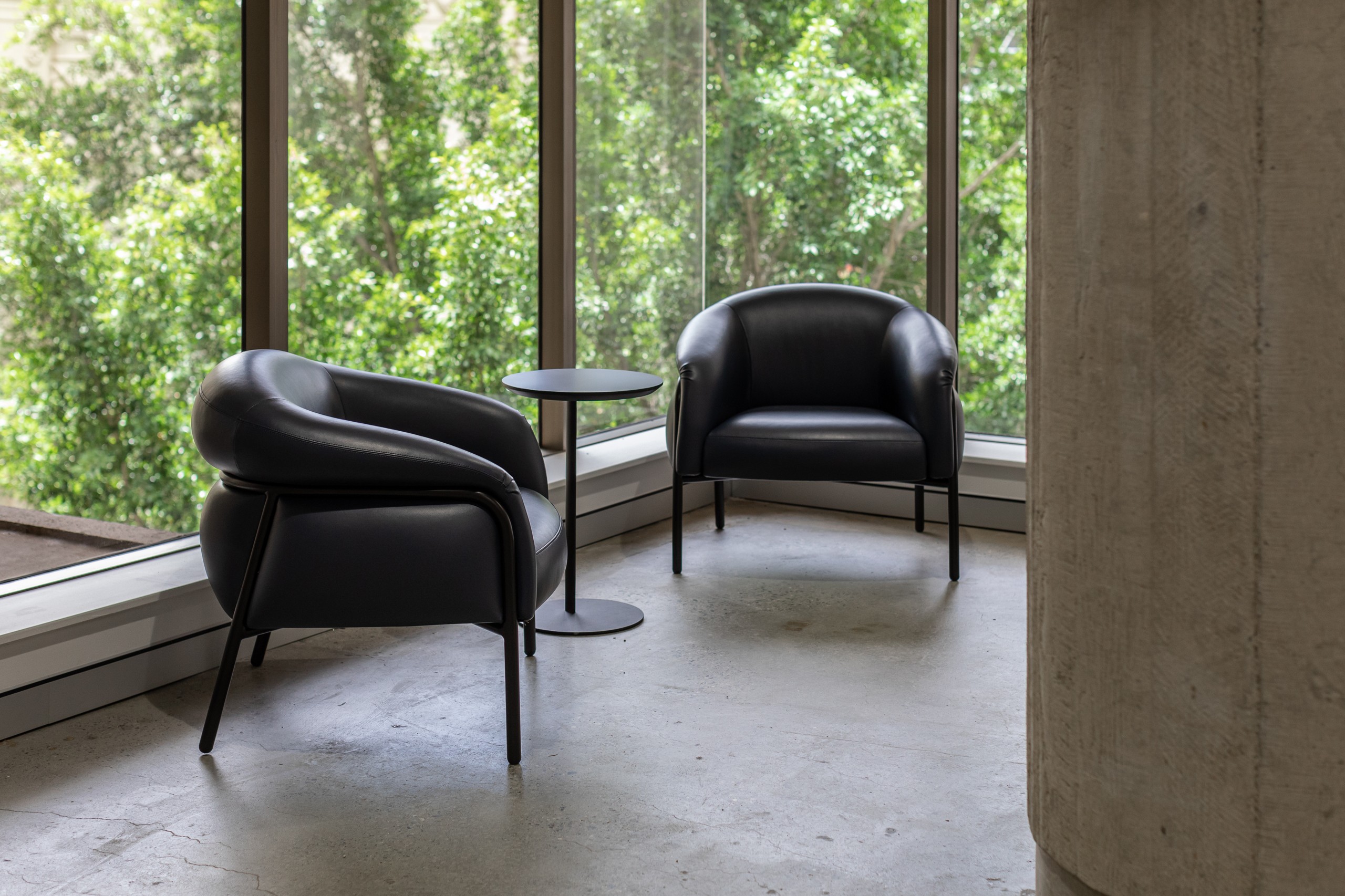 We even didn’t expect our Belly Lounge Chair to enjoy such a luxurious look with the navy blue leather upholstery and matt black coating base. The French window naturally create a greenery background for the Belly Lounge Chairs in pair setup, bringing about a soothing corner for the staff.