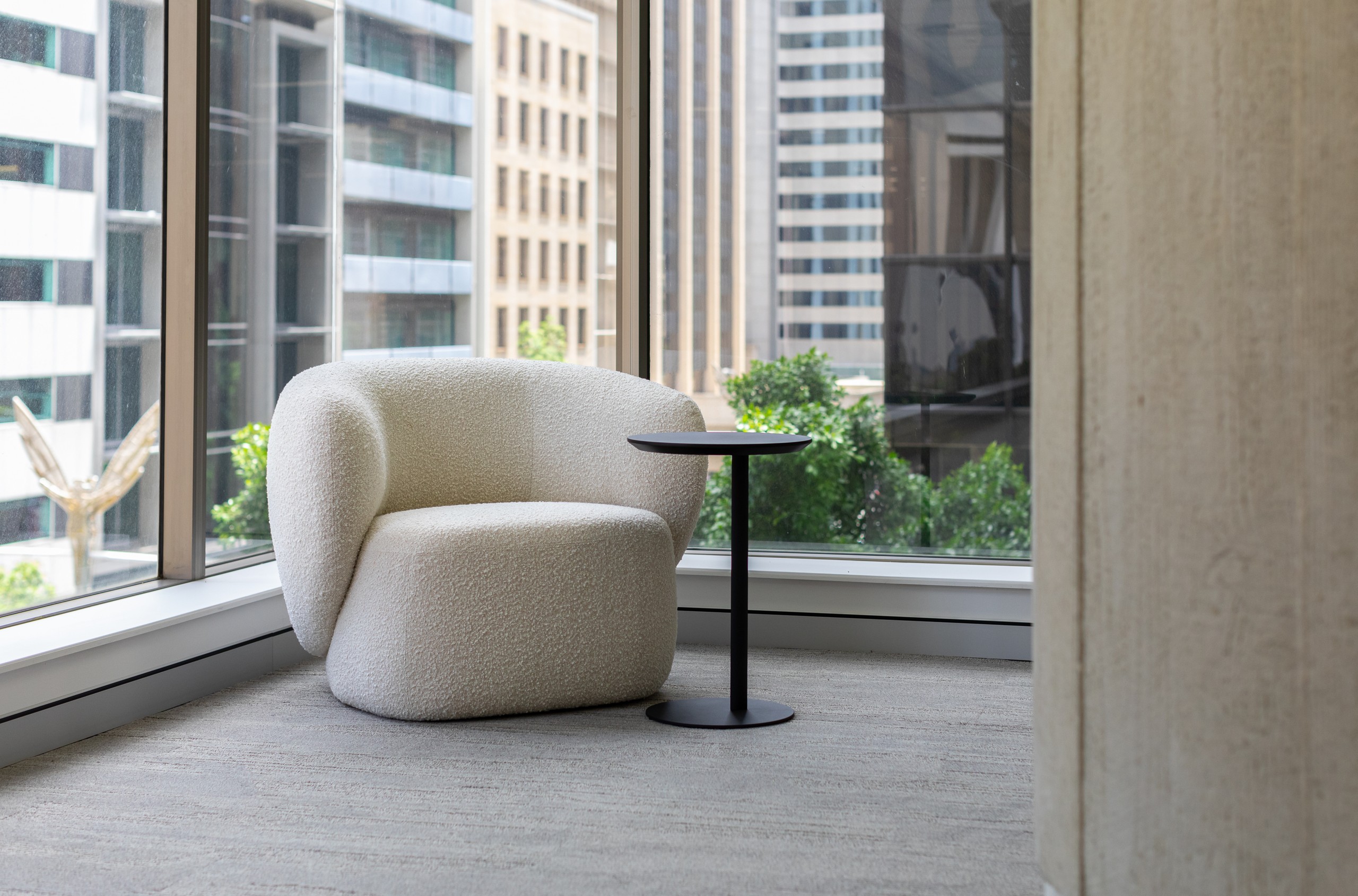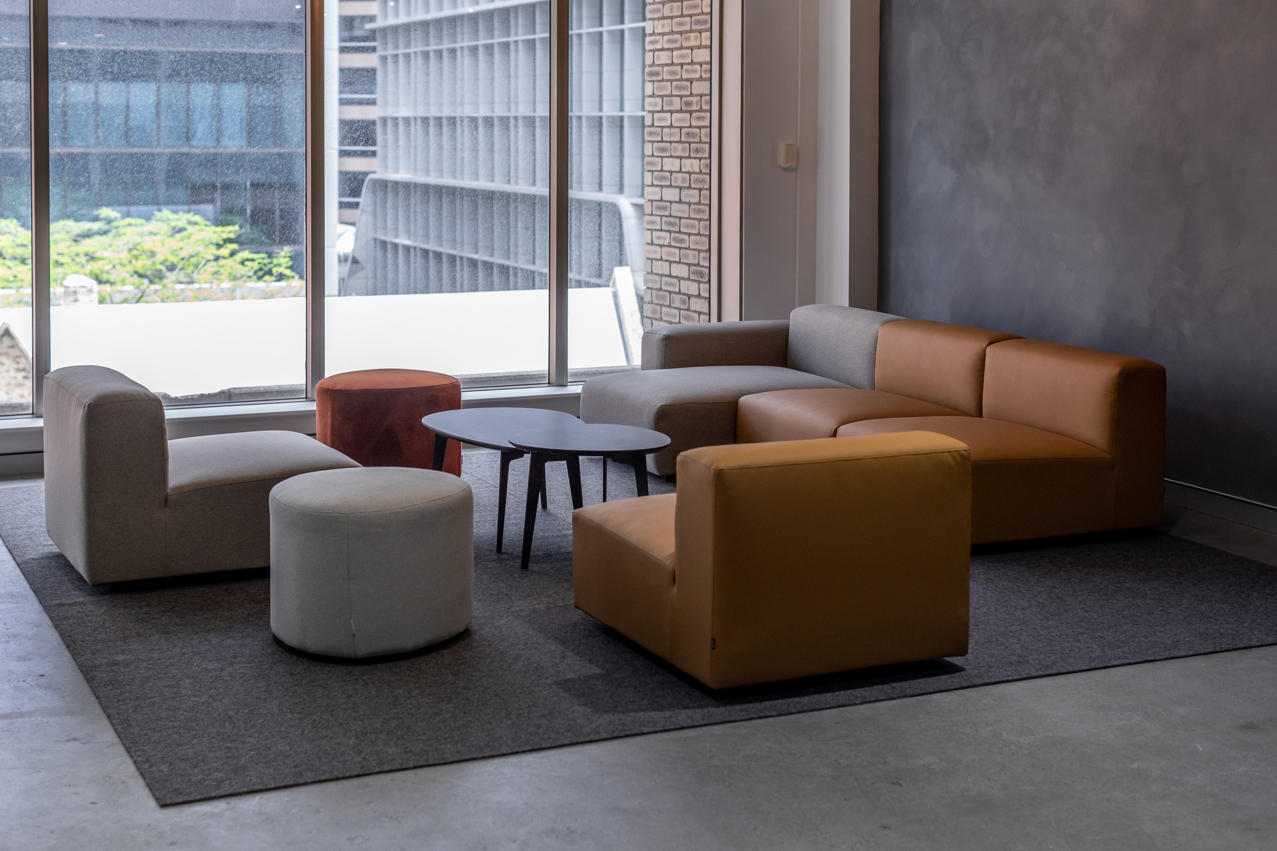 GRADO’s Swell Sofa in variegated colors and forms are arranged in several area of the space -- from the lounge for teamwork collaboration to a corner by the French window to taste the outside view alone. Its curved silhouette and enveloping seating must bring about double-layered comforts for one’s visual and physical experiences.