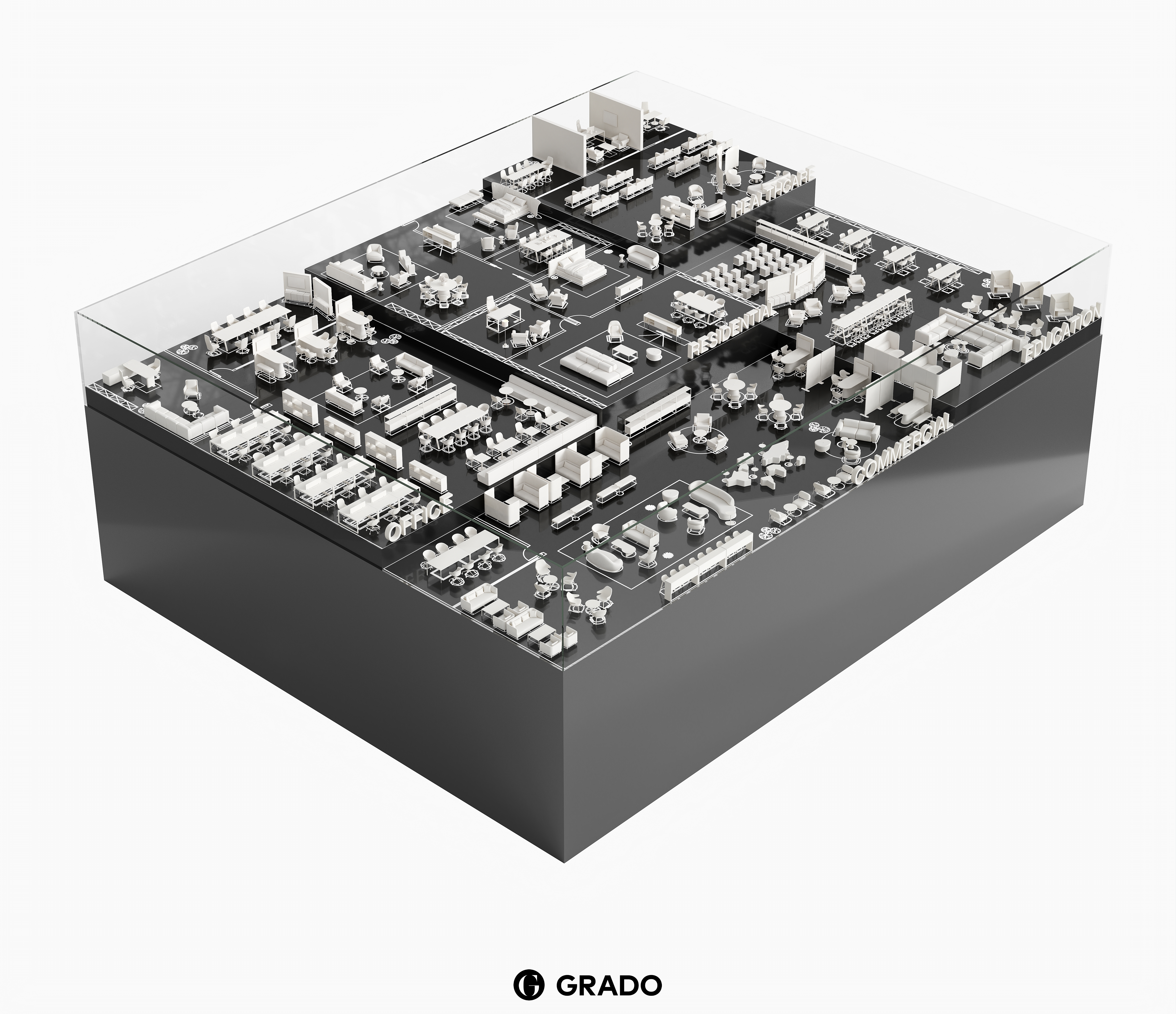 Grado_3d平面图概览_#orgatec展厅布局参考
