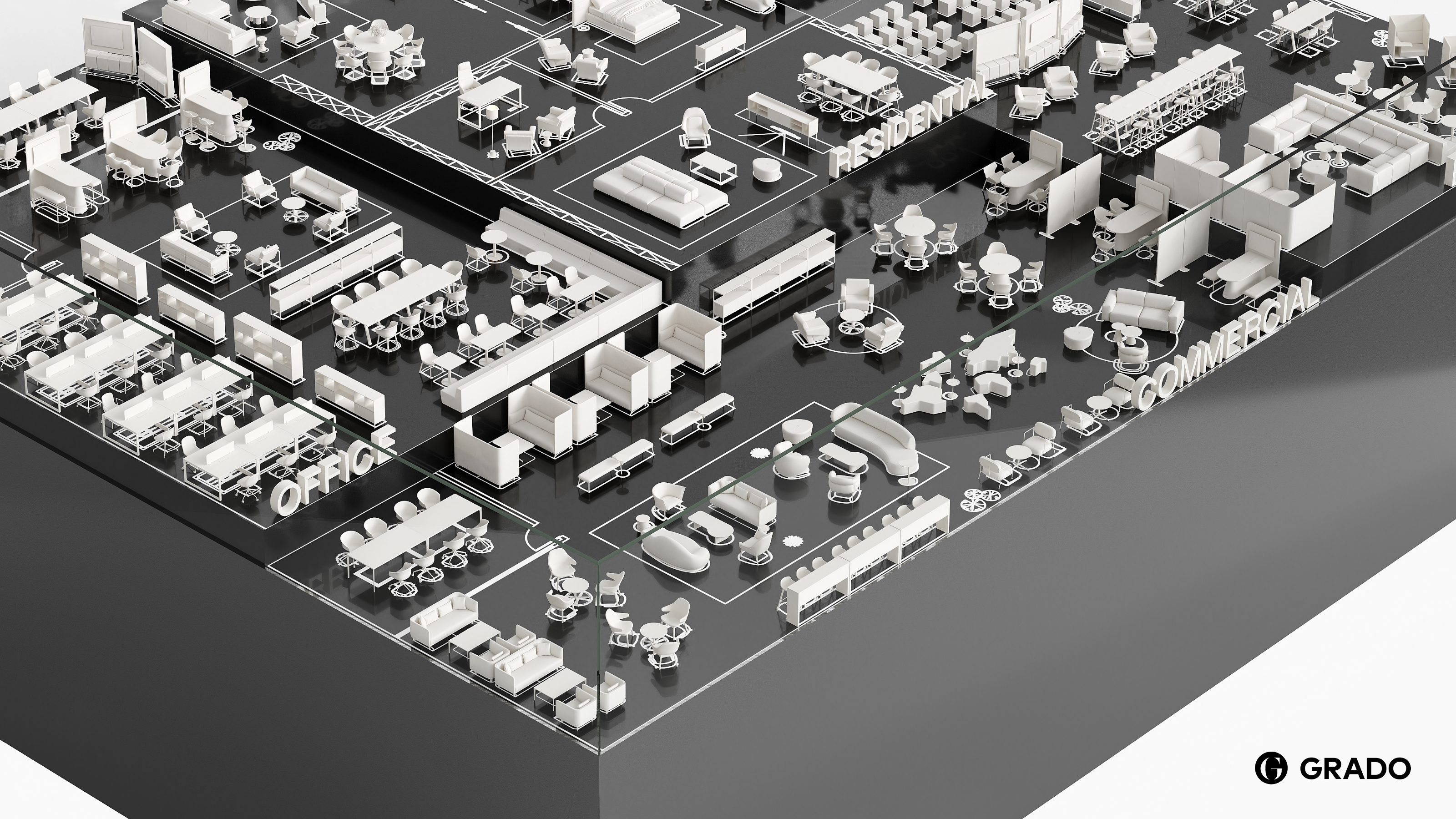 #orgatec 展位 grado_3d 微型模型_商业空间布局概览