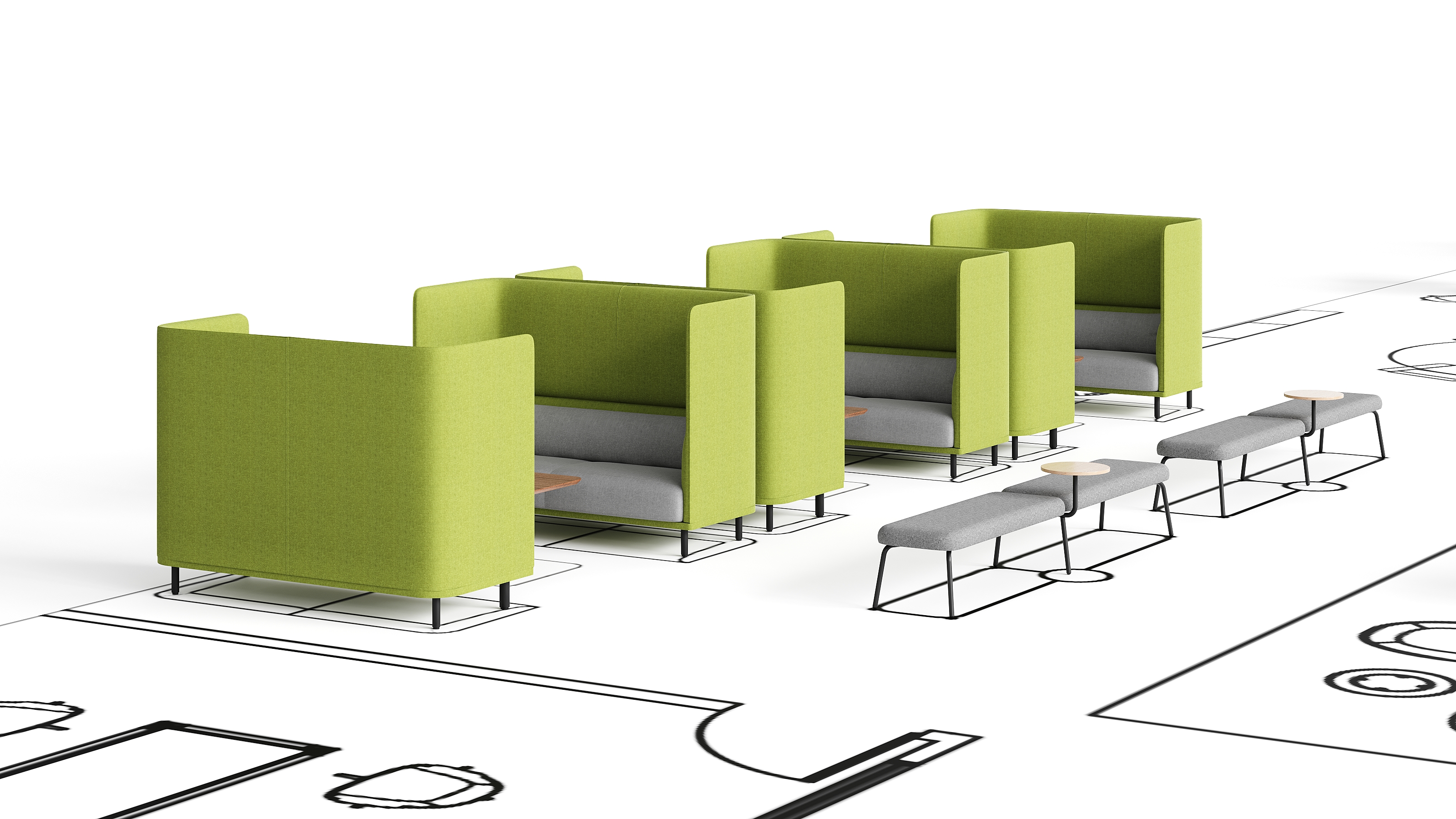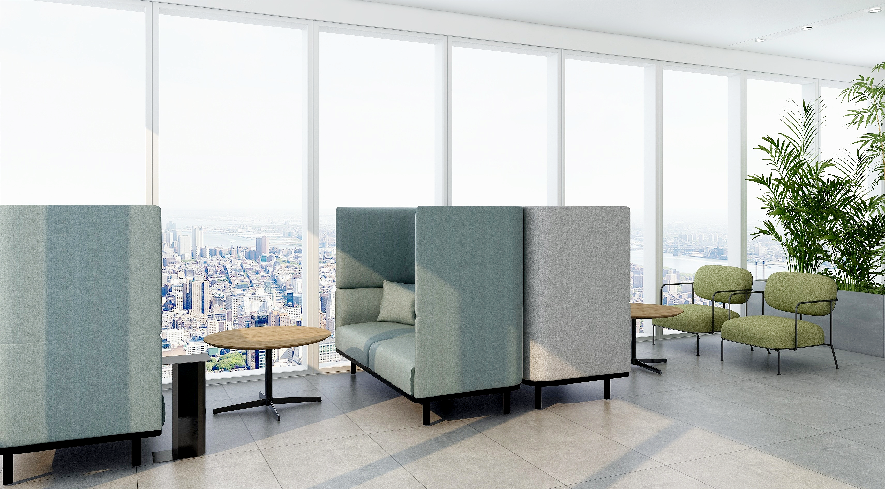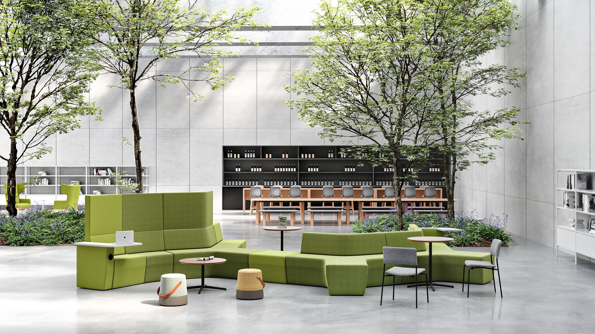 在会议室区域,推荐沿着走道布置贝壳餐椅,并与八字桌搭配使用,以满足大型企业的需求。元宝沙发所代表的模块化系统因其可扩展部件而能更灵活地适应不同大小的房间。此外,方块墩和锐咖啡桌可用于放置记事本或其他资料。对于需要私密对话的场合,模块沙发 S系列的独立模块可以创建一个集中的交流区域。这些布置为协作空间带来了高度的灵活性和专业性,能够根据不同的需求提供定制化的解决方案。