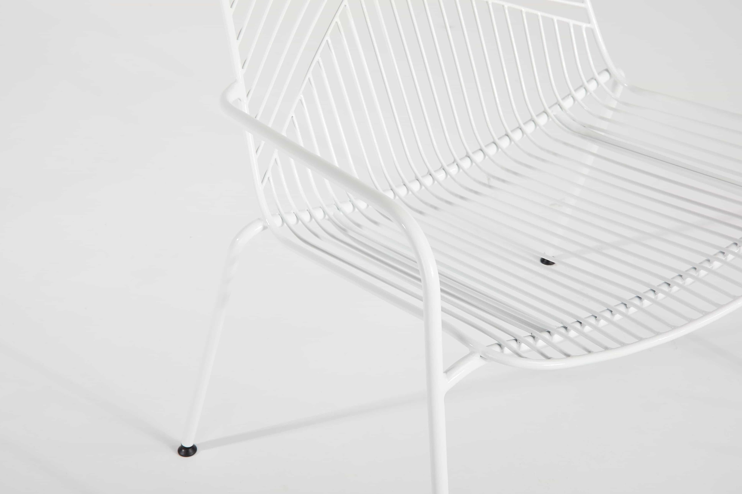线条:ø5mm/10mm实心铁条;外框+脚架:ø16mm壁厚2mm圆钢;配黑色POE脚垫(半球状管塞) 氩弧焊焊接; 表面处理:喷粉(环氧聚酯粉末涂料) ,表面光滑平整,色泽均匀,无漏喷、起泡、模糊、划痕或碰伤等缺陷。接触人体的部位无毛刺、刃口、棱角。