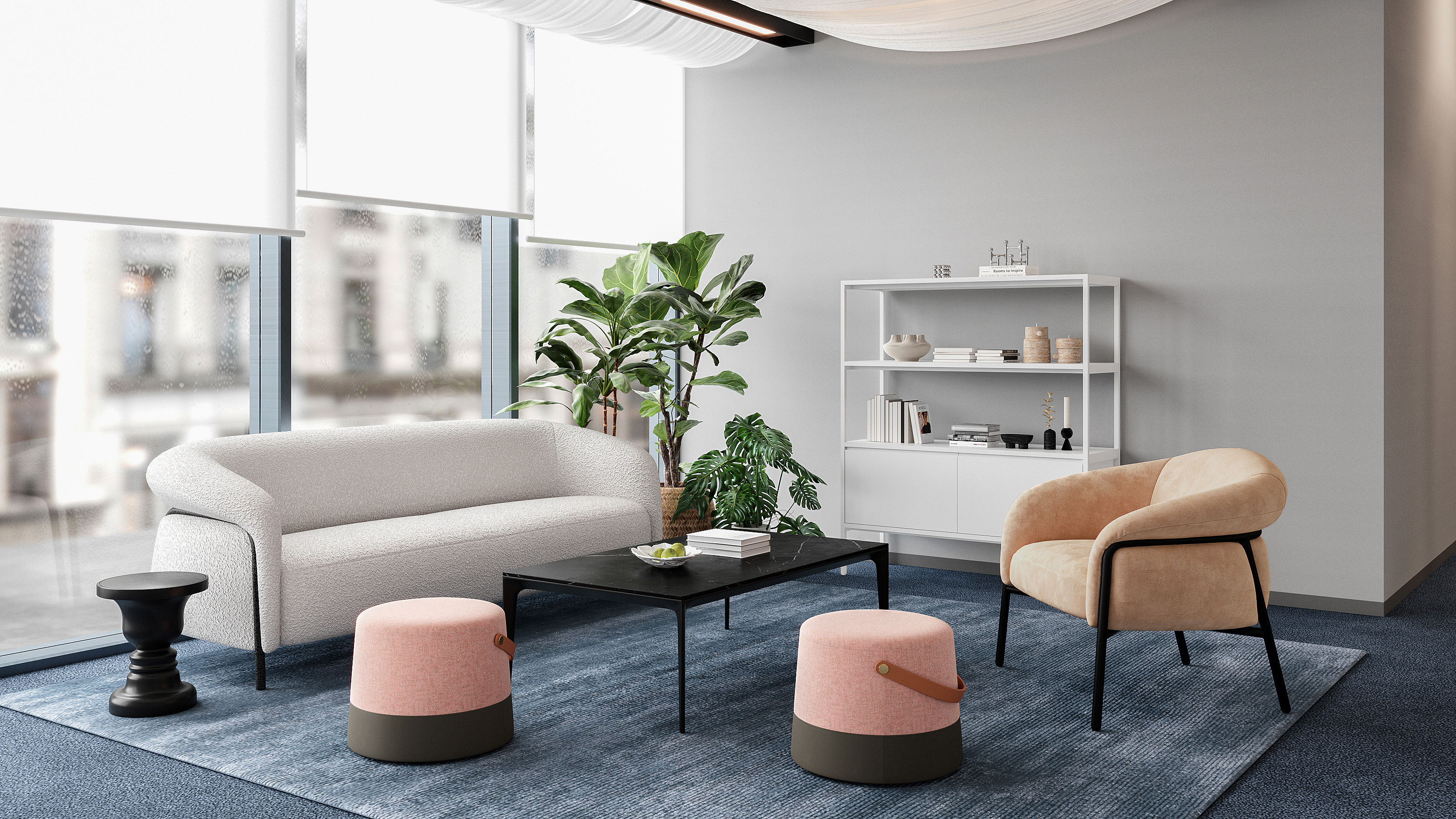 以曲线为灵感,以优雅为中心词,以椅子为载体。造型上,靠背与扶手的外形引用了女性皮草的衣领,尽显高贵气息。钢架嵌入椅背的造型,则是引用大衣腰带系紧的感觉,凸显出女性的腰线。