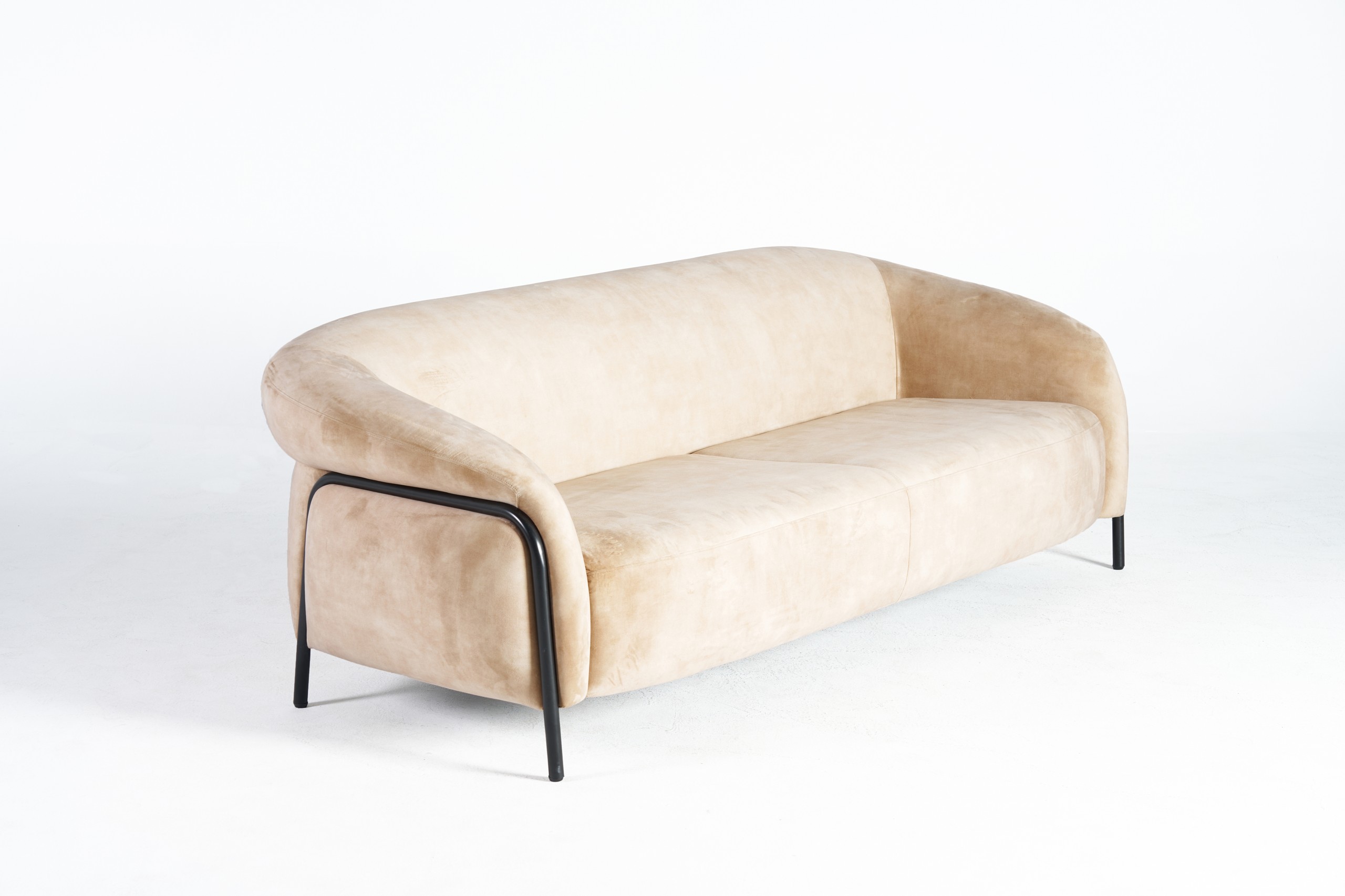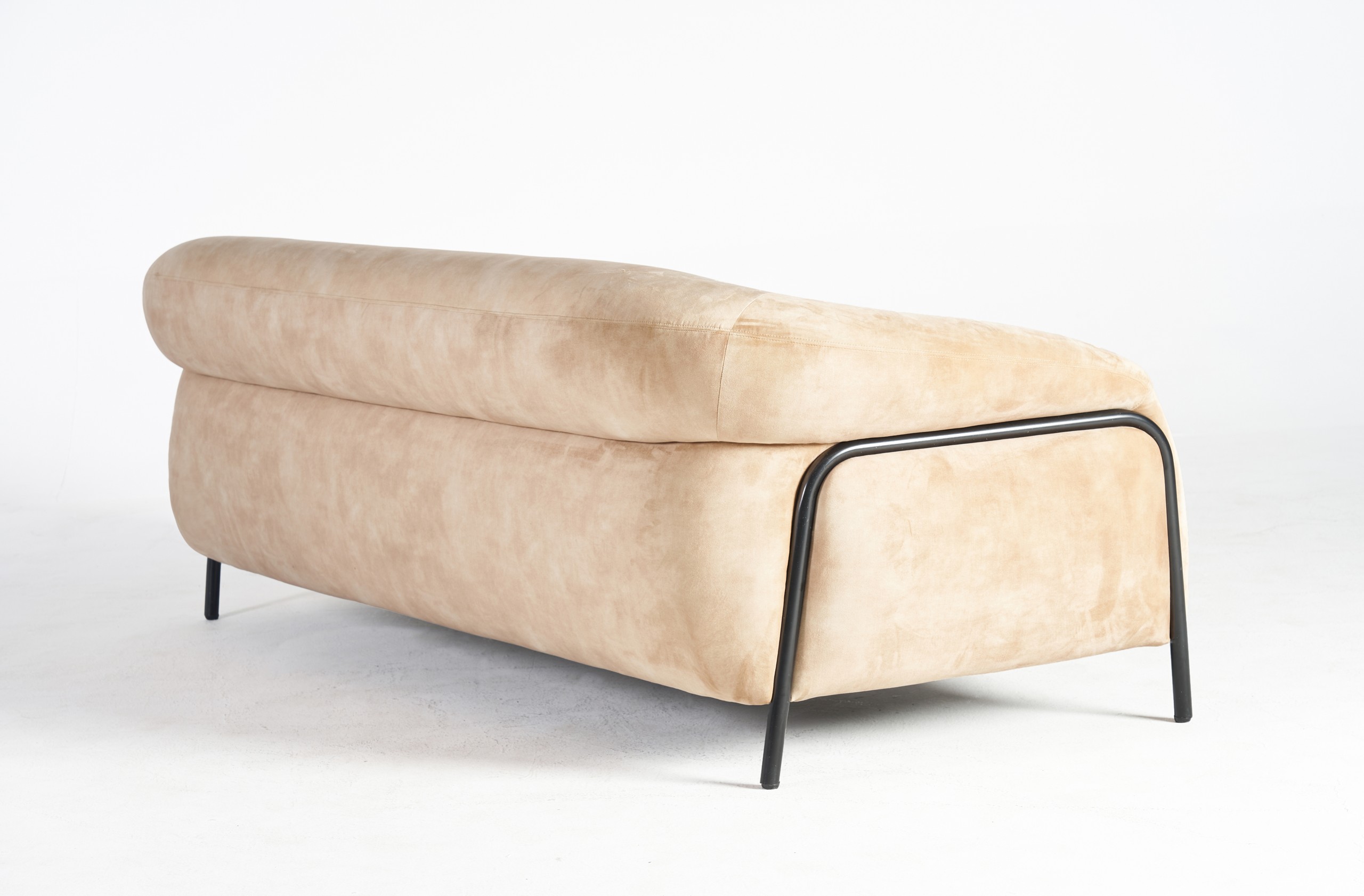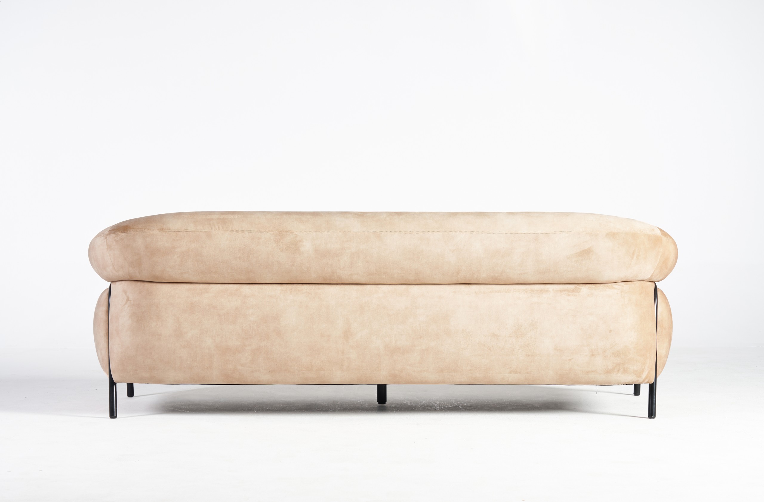 沙发面:沙发面&靠背:进口松木实木框架,材质坚硬钢性强,经防腐防虫防潮等技术处理。E1级实木多层板,内框侧板、背板、座面板板材整体数控切割,不允许分块拼接。高回弹切割棉,45#密度以上海绵,在火种离开10 秒内,海绵自动结焦熄灭,能均匀承托负重,在常期负重状态下性能保持良好。 面料软包,底部黑色无纺布,做收边处理枪钉不允许外露。 脚架:Q235A钢管;配黑色POE脚垫(半球状管塞) 脚架表面处理:喷粉(环氧聚酯粉末涂料) ,表面光滑平整,色泽均匀,无漏喷、起泡、模糊、划痕或碰伤等缺陷。接触人体的部位无毛刺、刃口、棱角。
