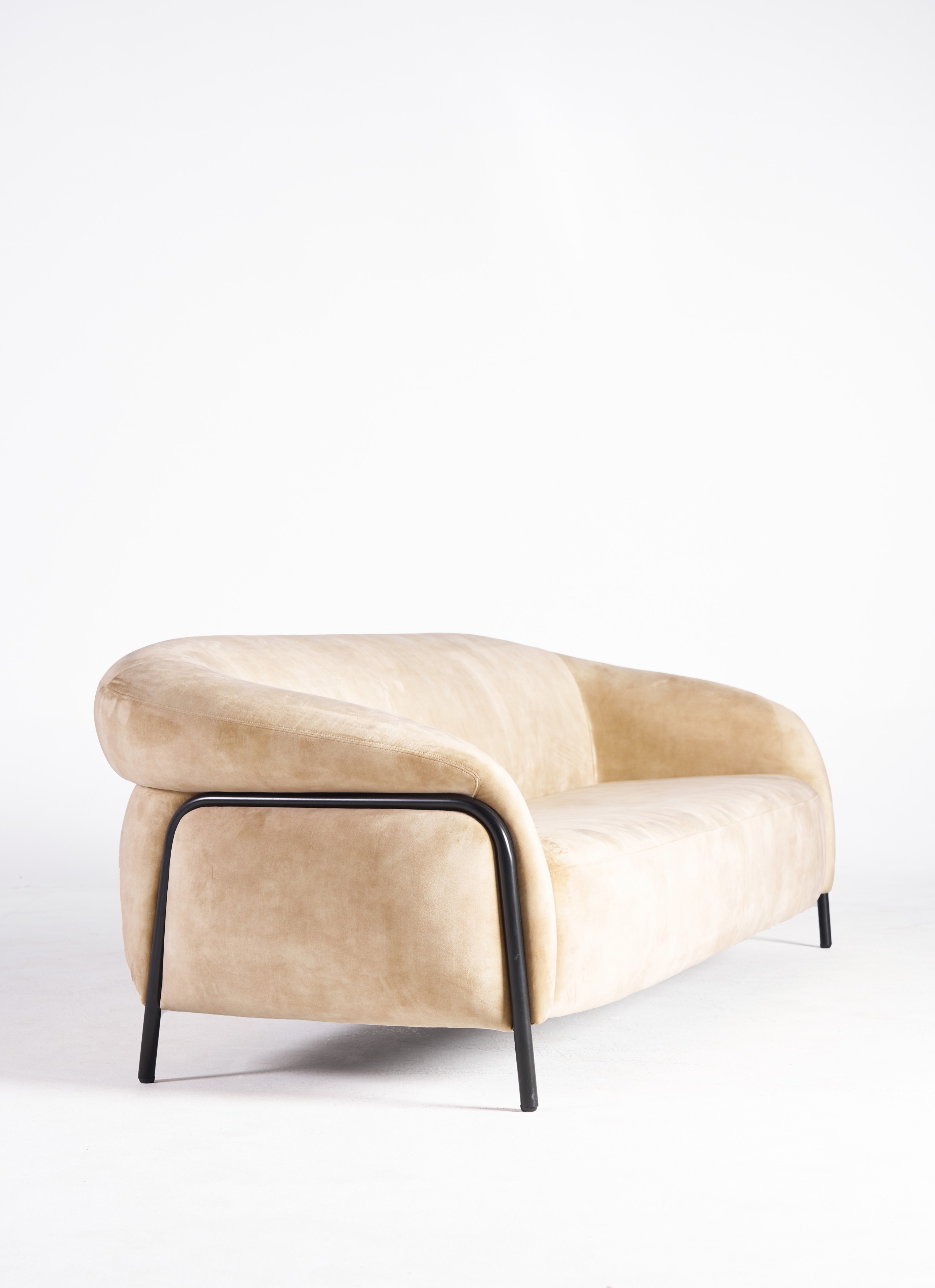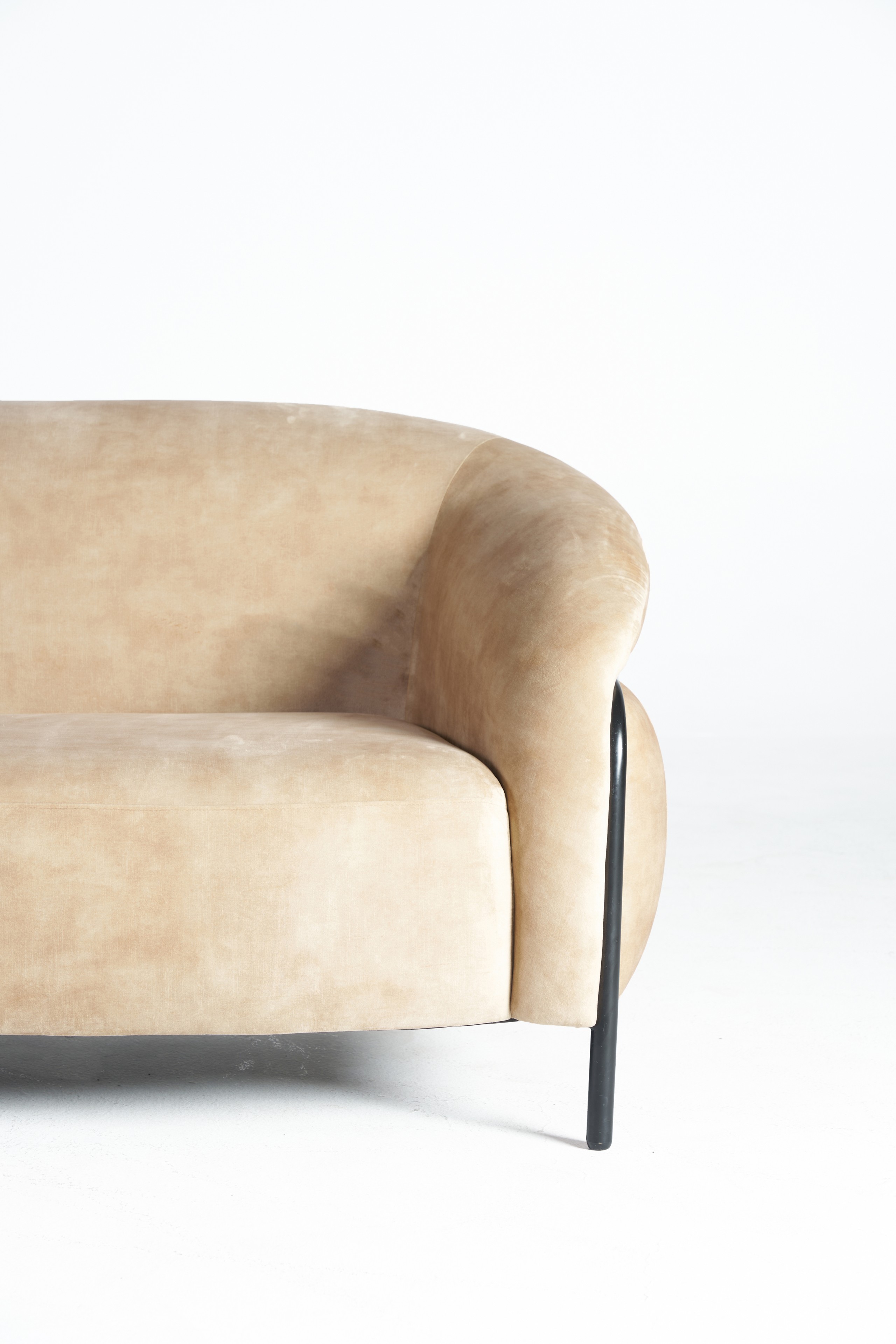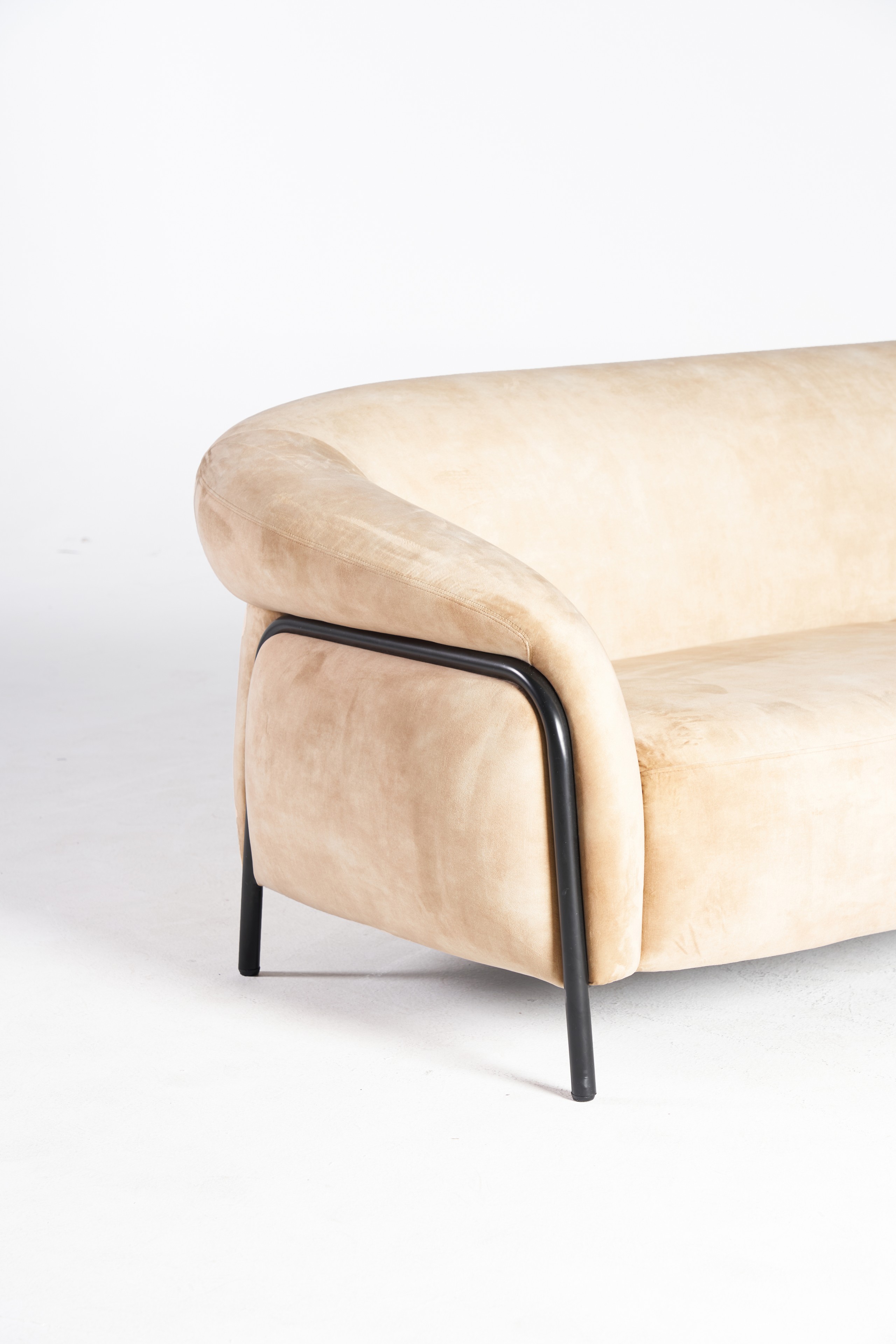 沙发面:沙发面&靠背:进口松木实木框架,材质坚硬钢性强,经防腐防虫防潮等技术处理。E1级实木多层板,内框侧板、背板、座面板板材整体数控切割,不允许分块拼接。高回弹切割棉,45#密度以上海绵,在火种离开10 秒内,海绵自动结焦熄灭,能均匀承托负重,在常期负重状态下性能保持良好。 面料软包,底部黑色无纺布,做收边处理枪钉不允许外露。 脚架:Q235A钢管;配黑色POE脚垫(半球状管塞) 脚架表面处理:喷粉(环氧聚酯粉末涂料) ,表面光滑平整,色泽均匀,无漏喷、起泡、模糊、划痕或碰伤等缺陷。接触人体的部位无毛刺、刃口、棱角。