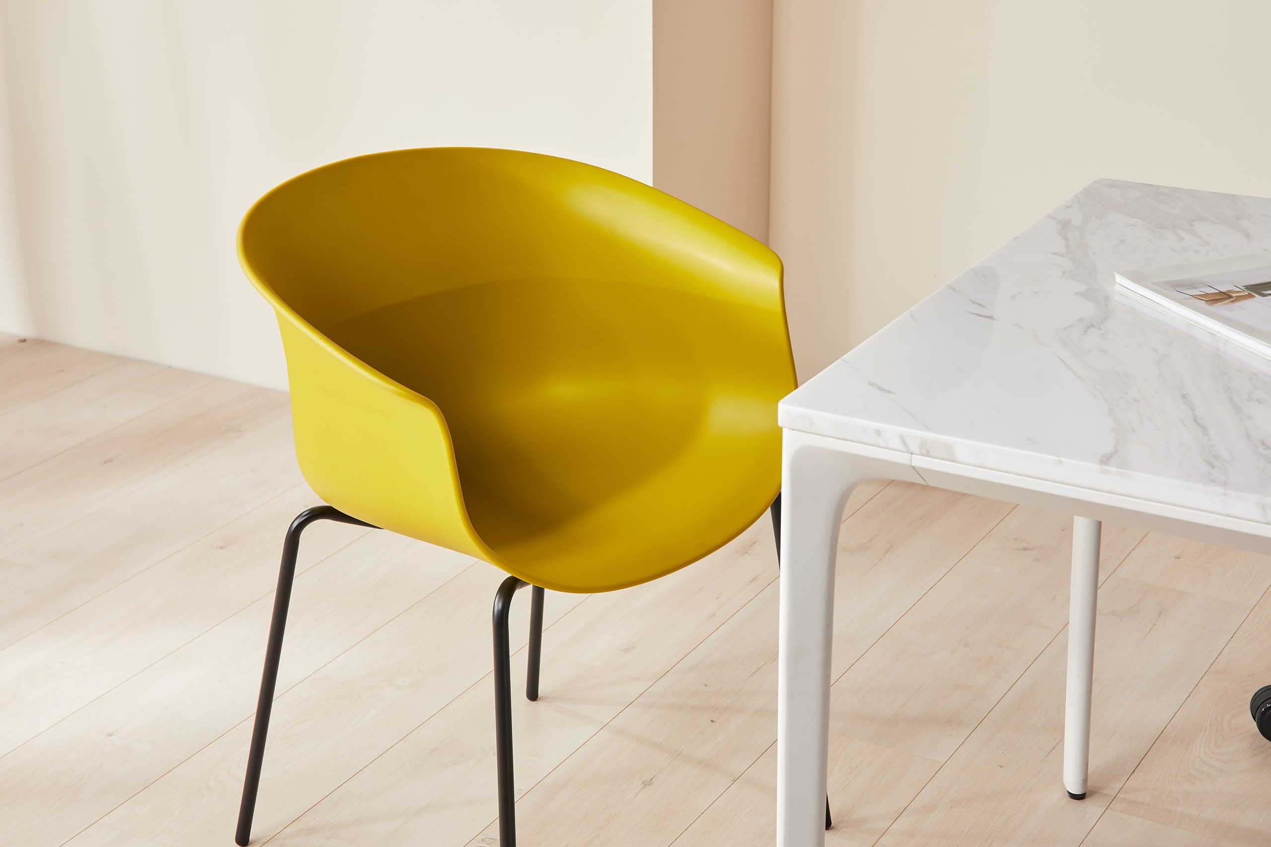 Queen chair灵感来源于唐朝皇室女王的服饰语言,将衣领翻折的手法与胶壳靠背的折线相结合,既贴合背部曲线的弧度赋予背部恰到好处的包围感,又巧妙的融入了人机工程学,经过多次设计讨论和实际操作从而达到舒适的使用体验。一张具有舒适性与故事性的Queen chair就呈现在使用者的视野中。