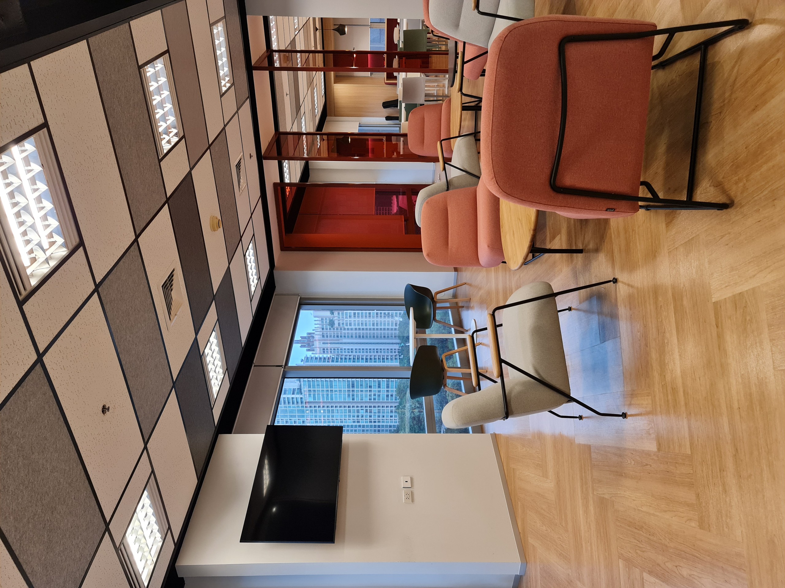 该项目位于泰国曼谷,是一个横向展开的矩形空间,空间中大量运用木材料赋予空间亲和力。通透的空间整体被深色玻璃门隔断,不同的家具组合出多重空间使用场景,让空间不再单调。不同尺度、体量、风格的座椅如用空间中的人们,错落布置在空间中,打破了传统办公空间的氛围,却又存在于一种无形的秩序中。沿窗的位置放置了吧桌、吧椅,以开放的姿态满足人们对于外界的渴望,以及个人空间的需求。