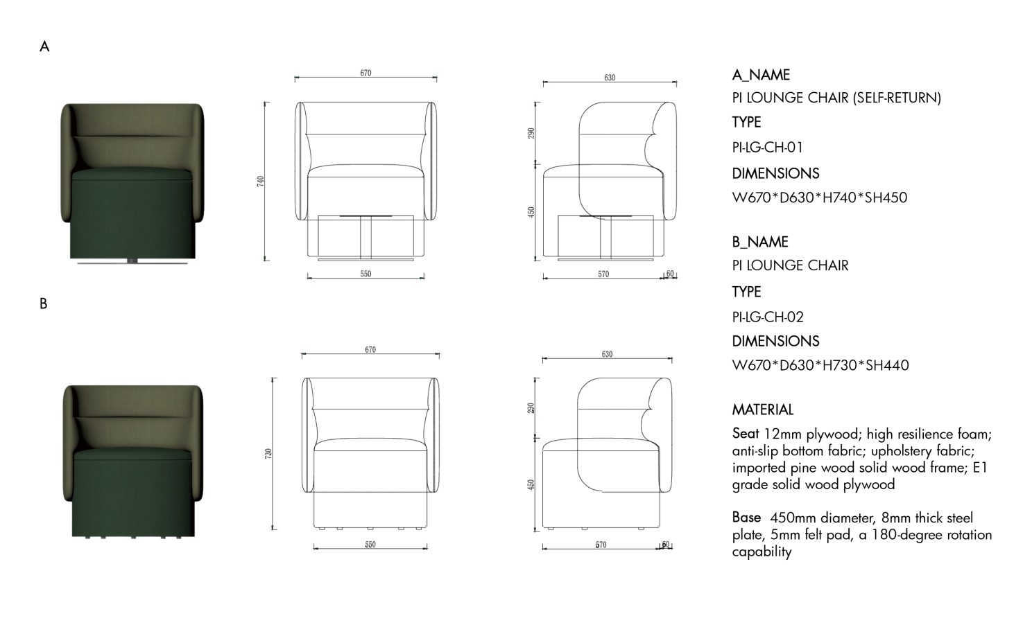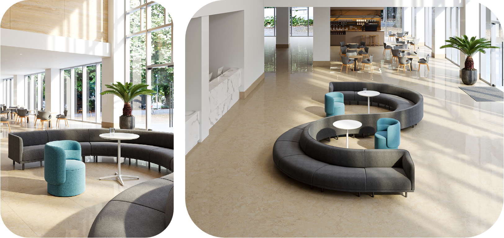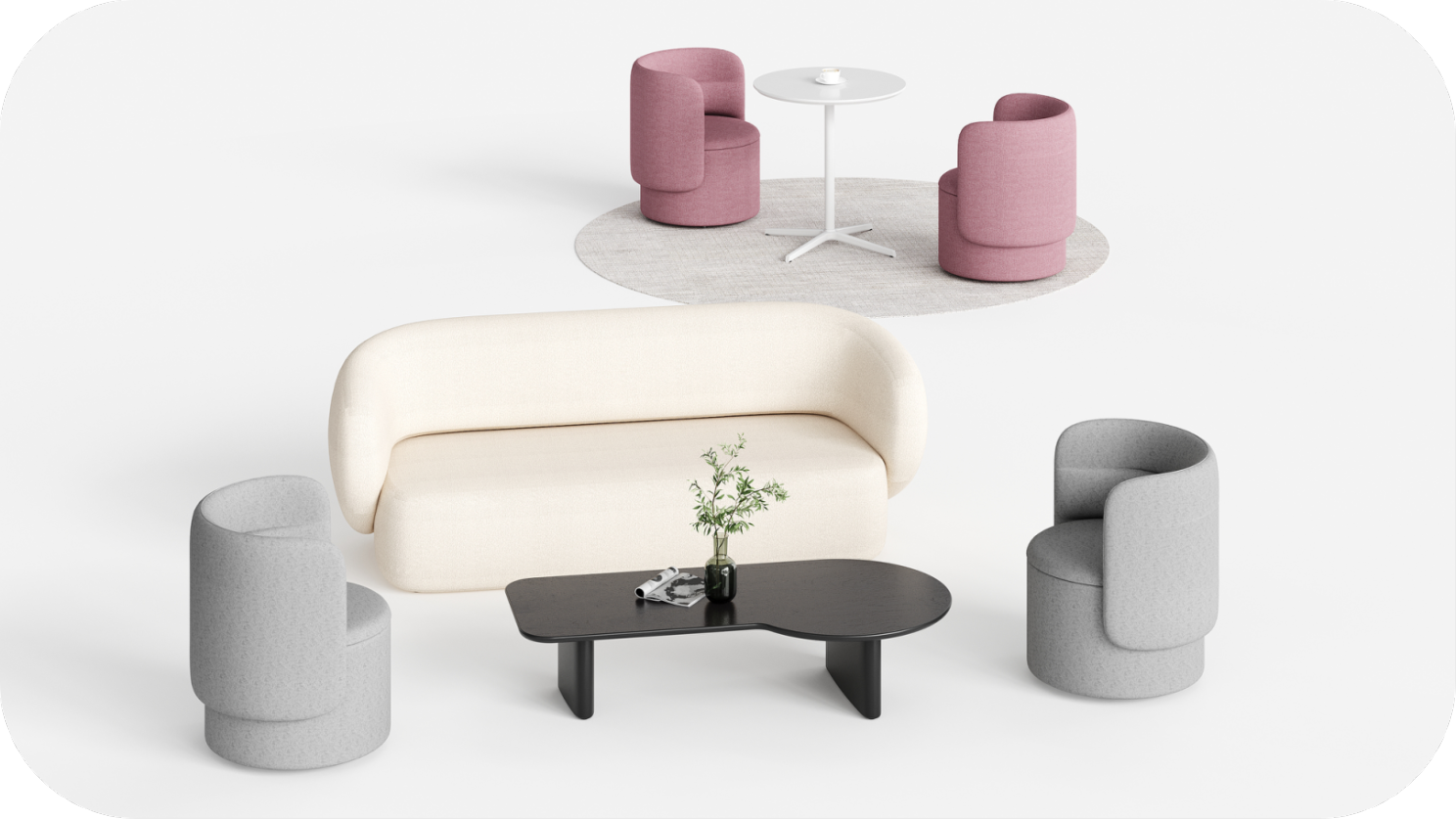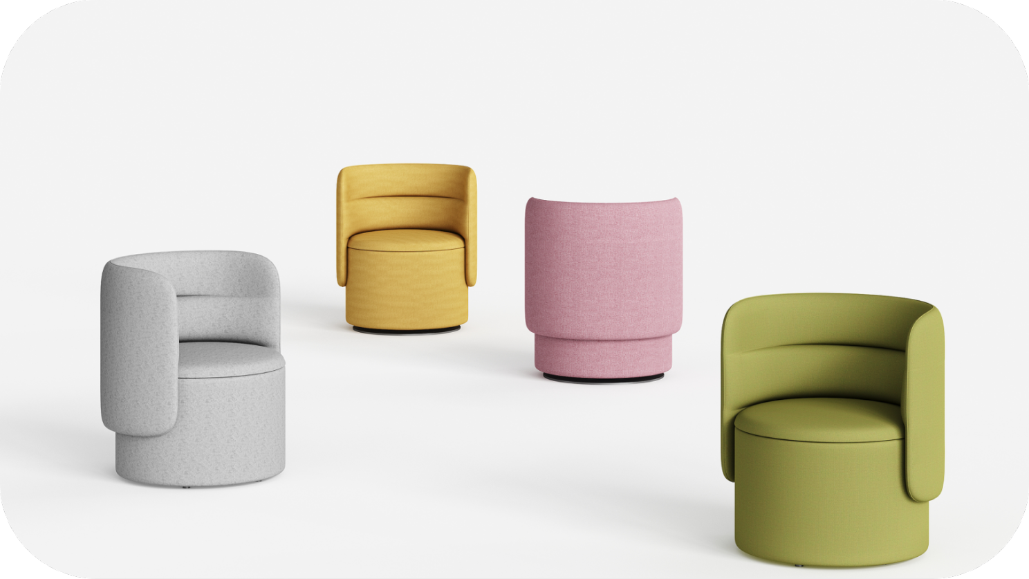 Besides, vibrant and approachable color schemes in customized shades make it a versatile potential to adorn diverse settings, from commercial environments such as fitting rooms and residential reception halls to formal working spaces such as collaborative workshops for discussion or brainstorming, or anywhere without expectation for intense concentration on the activity. As for public interest fields, PI Lounge can be a friendly fellow because of the thoroughly curved outlines, such as the kindergarten or any indoor amusement park; by the same token, the consulting room at the hospital would also appreciate the property of security and comfort. However, even though PI Lounge draws out the maximum sitting comfort, the single-seat option still needs other complements to fulfill the seating capacity including modular sofas and office chairs.