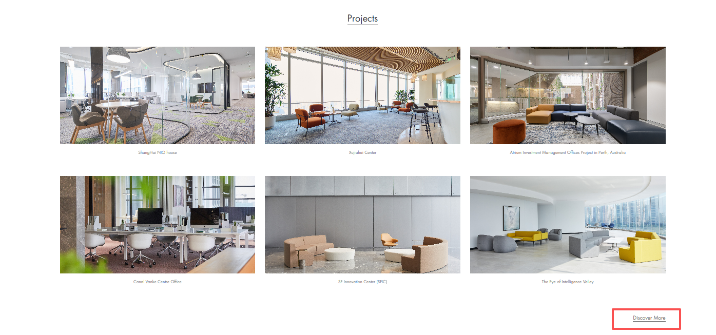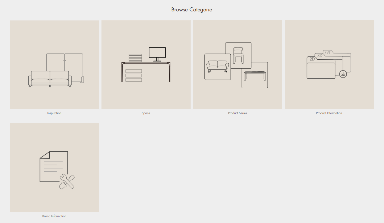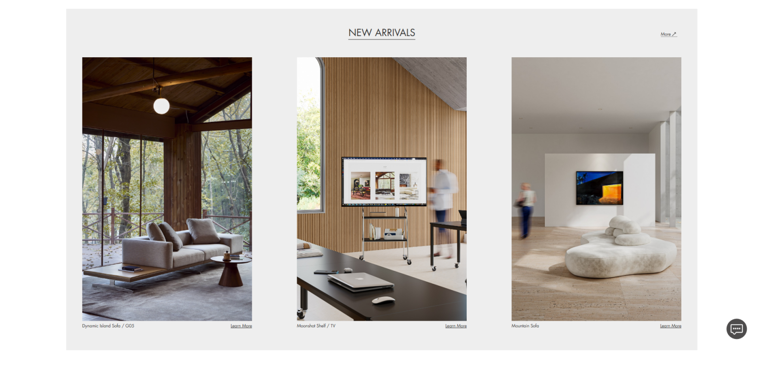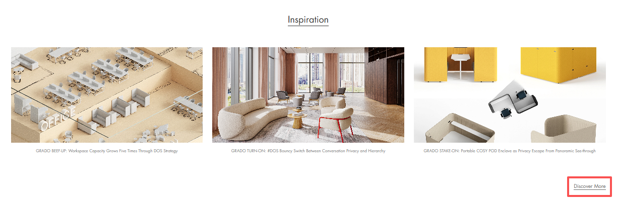 · Inspiration: Direct access to the Spaces section, where visitors can explore project cases and spatial applications for deeper inspiration.