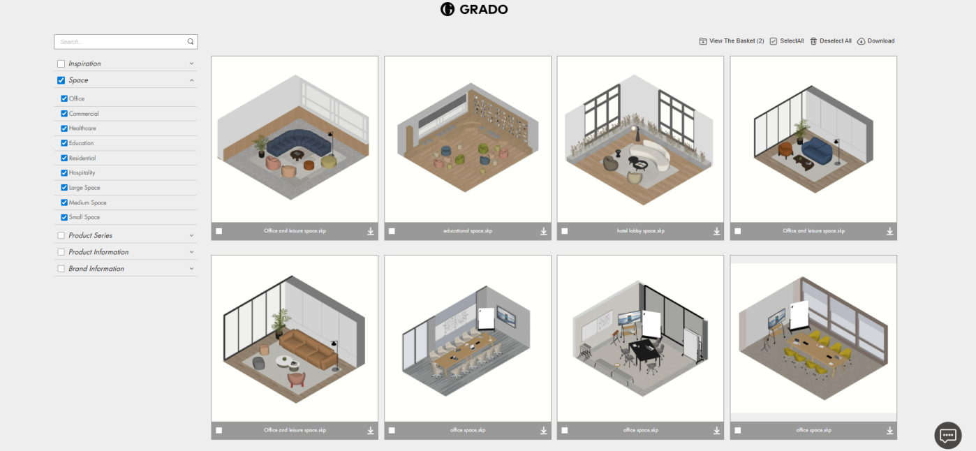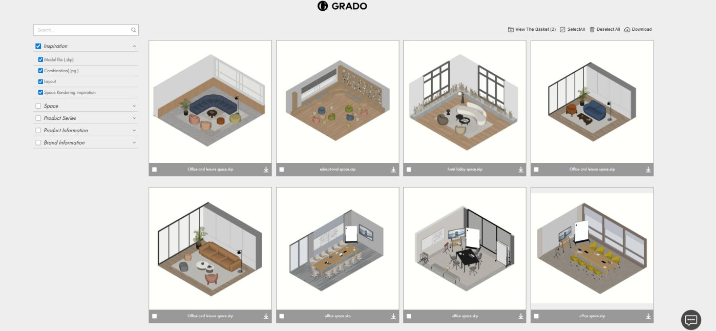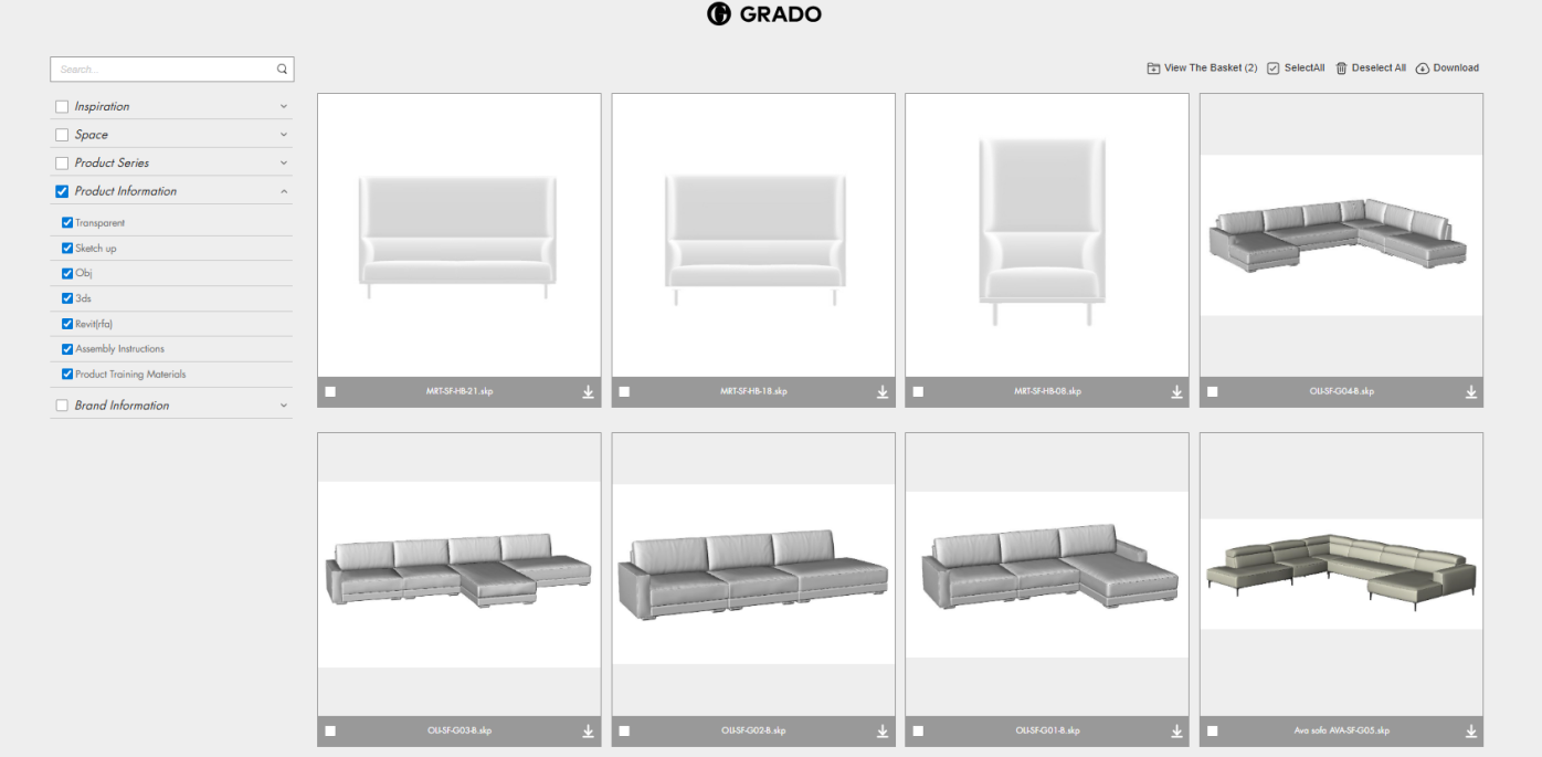 · Product Information: Provides product model files with searchable product codes, also available for download on product detail pages, enabling designers to streamline their rendering workflow.
