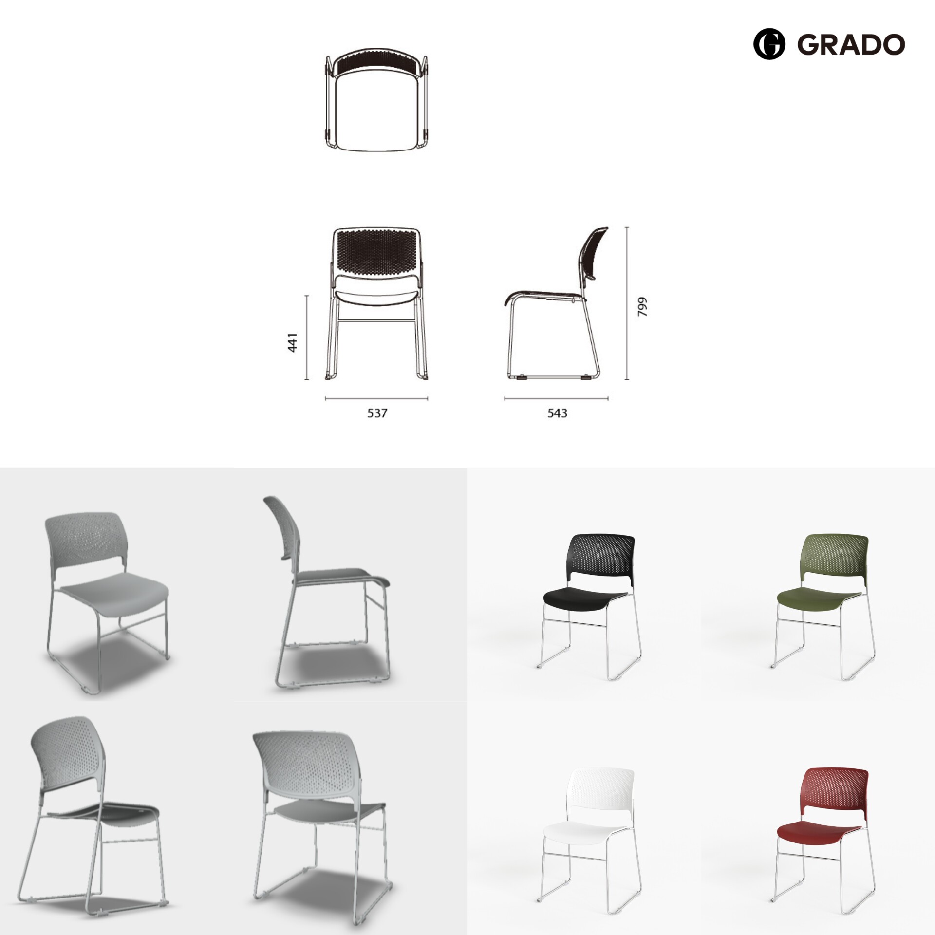 The design of training chairs also draws the properties of some types of office chairs such as ergonomic chairs, tablet armchairs, and stacking chairs, as the case with the Dott Chair. Tablet armchairs are cut out for training, lectures, and lounges, normally made of wood or plastic, having fixed or swiveling tablets of varying sizes. Ergonomic chairs are specially designed for neutral postures and sedentary seating with lumbar support and swivel, being competitively cost-effective. Stacking chairs are made portable and stackable to save storage space, being a perfect fit for social occasions. However, training chairs that occupy dining and resting areas are scarce across the arena due to less personality inherent. However, a master of pale-down decorations never gives in to bold leaps. Cam frees the potential of the training chair to be chic in a low profile as a competitive equal. Soft contours and slender figures strengthen the exquisiteness. Stepping over generalist minds, Cam carves out specialist tones.