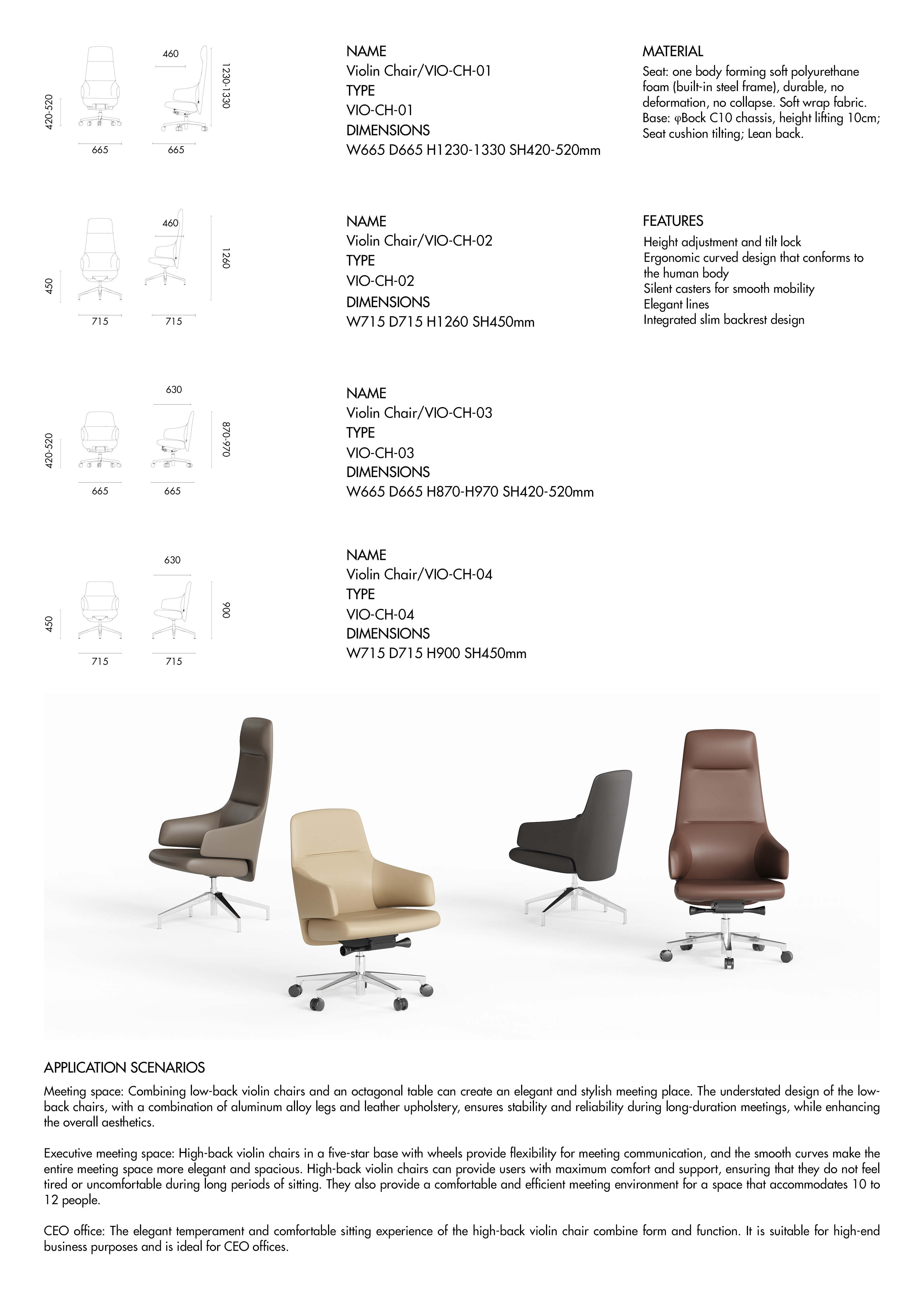 The Violin Chair embodies the principles of minimalist interior design which emphasizes simplicity, clean lines, and efficient use of space. This design approach can make small spaces feel larger and more open while maintaining a stylish and contemporary aesthetic. While minimalism offers a sense of simplicity and tranquility, it is important to strike a balance between minimalism and personalization. Adding personal touches and ambient warmth can enhance the overall experience and align with individual preferences and values. The Violin Chair is versatile and suitable for various settings such as meeting spaces, executive meeting rooms, and CEO offices. Its combination of comfort, style, and practicality makes it an ideal choice for professional environments.