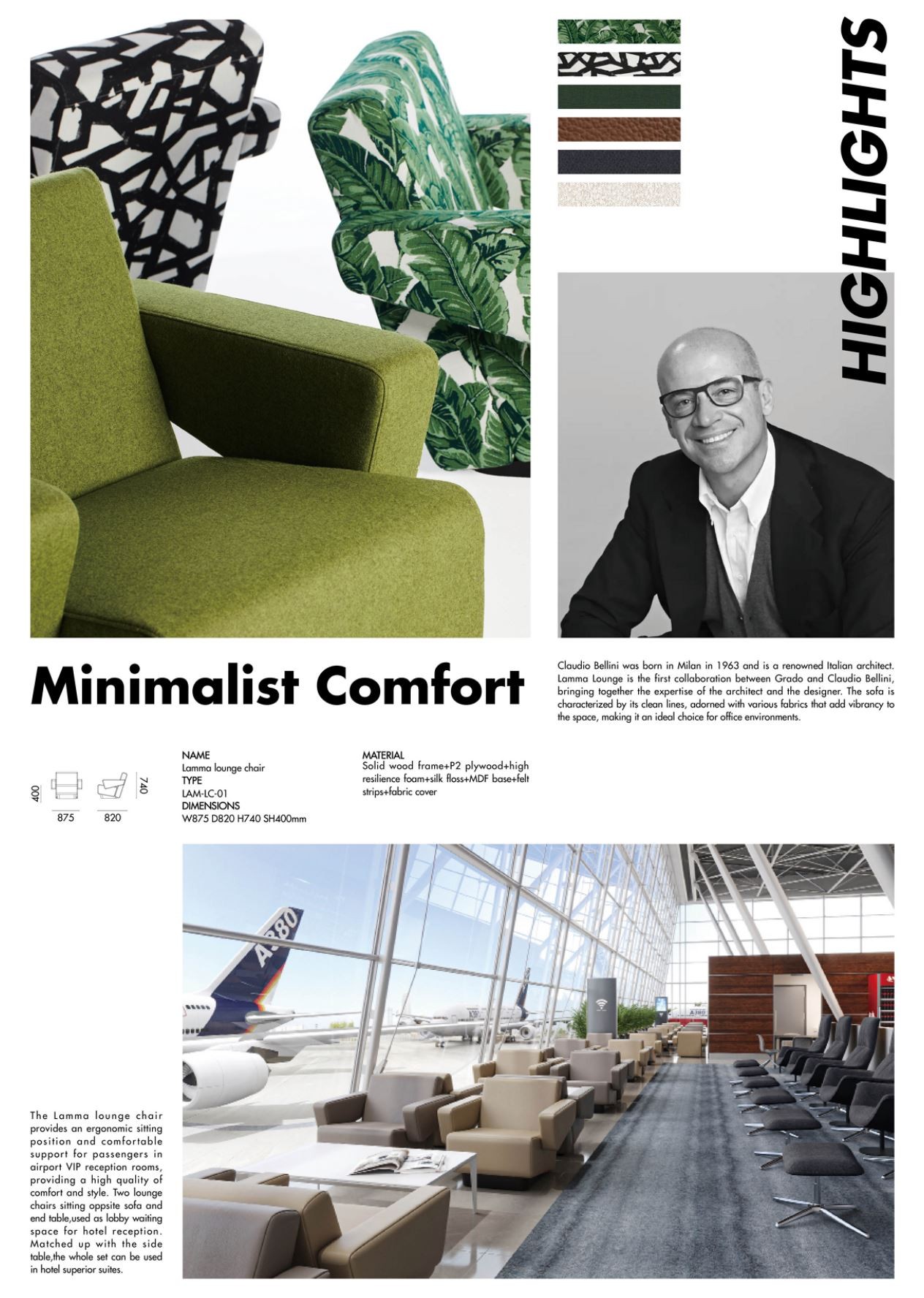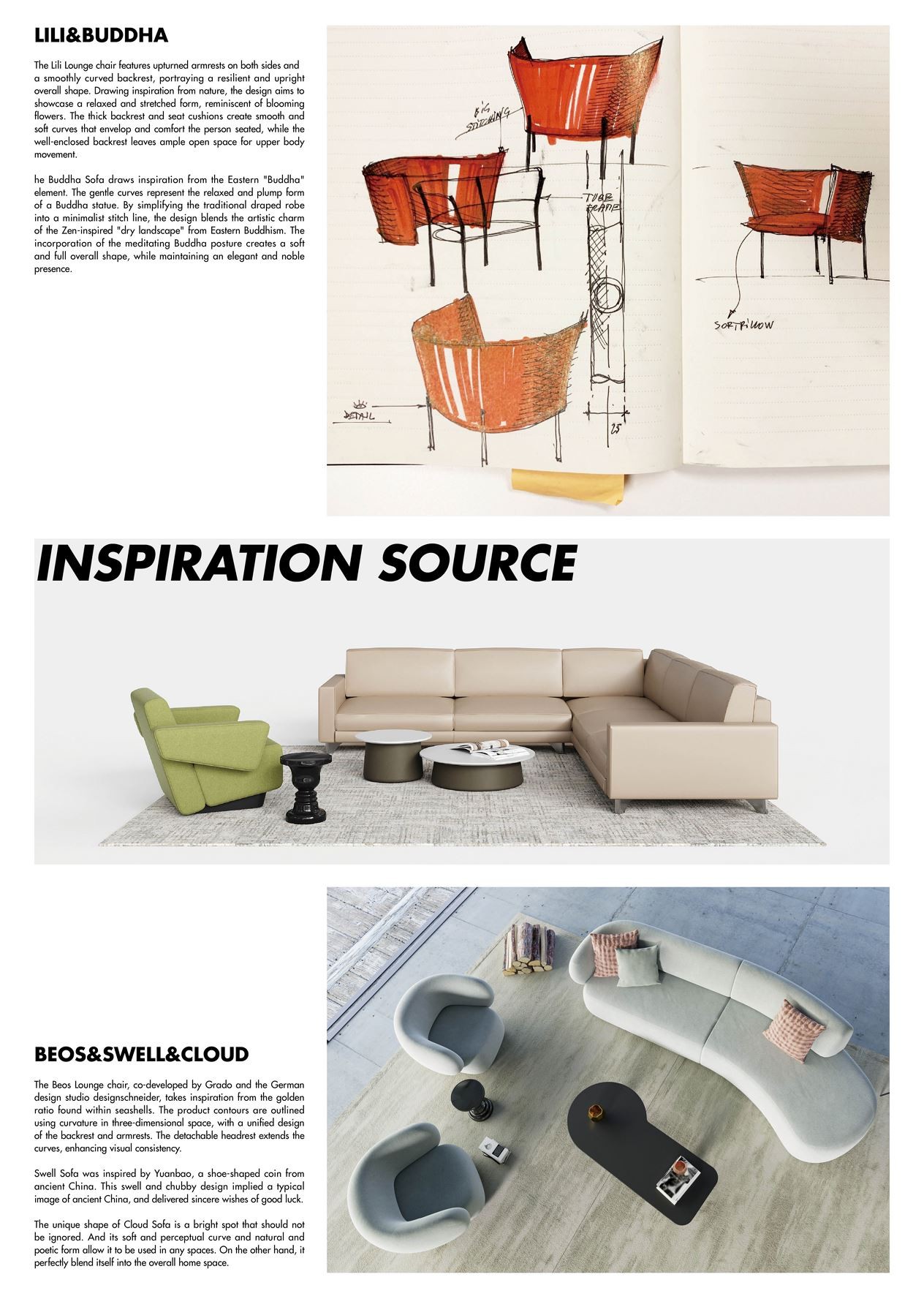 In addition to the Lamma Lounge, Grado's portfolio at Design Shanghai will feature other notable pieces, including the Lili, Beos, and Buddha series. The Lili Lounge chair boasts a sleek and dynamic curvature, inspired by blooming flowers, while the Beos Lounge chair draws inspiration from the golden ratio found within seashells. The Buddha Sofa combines the elements of Eastern Buddhism, portraying a relaxed and plump form. These pieces blend recognizable elements to establish an international identity for Grado.