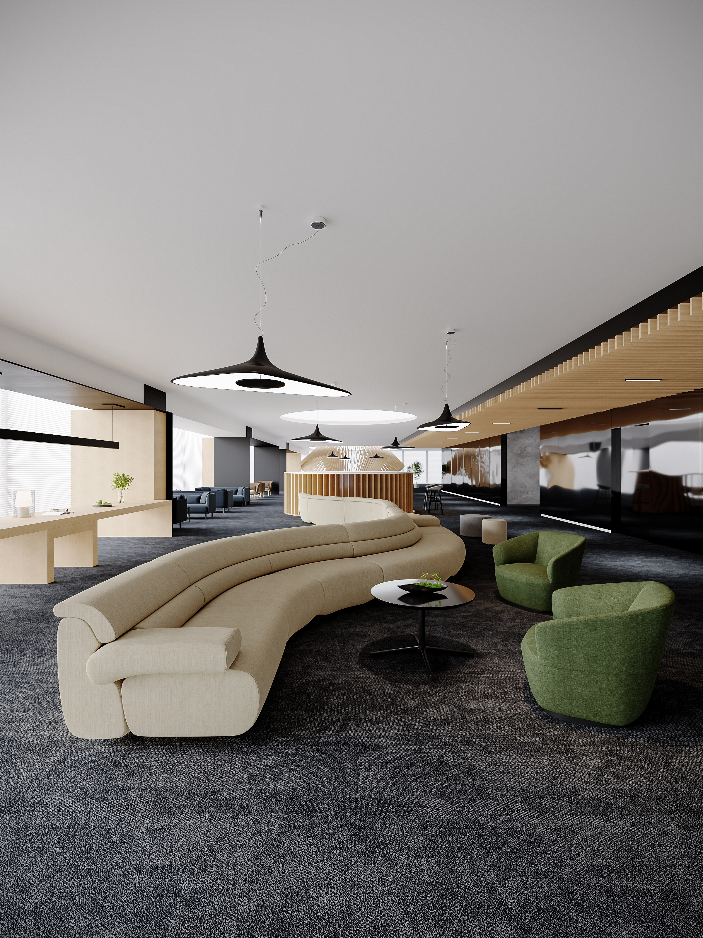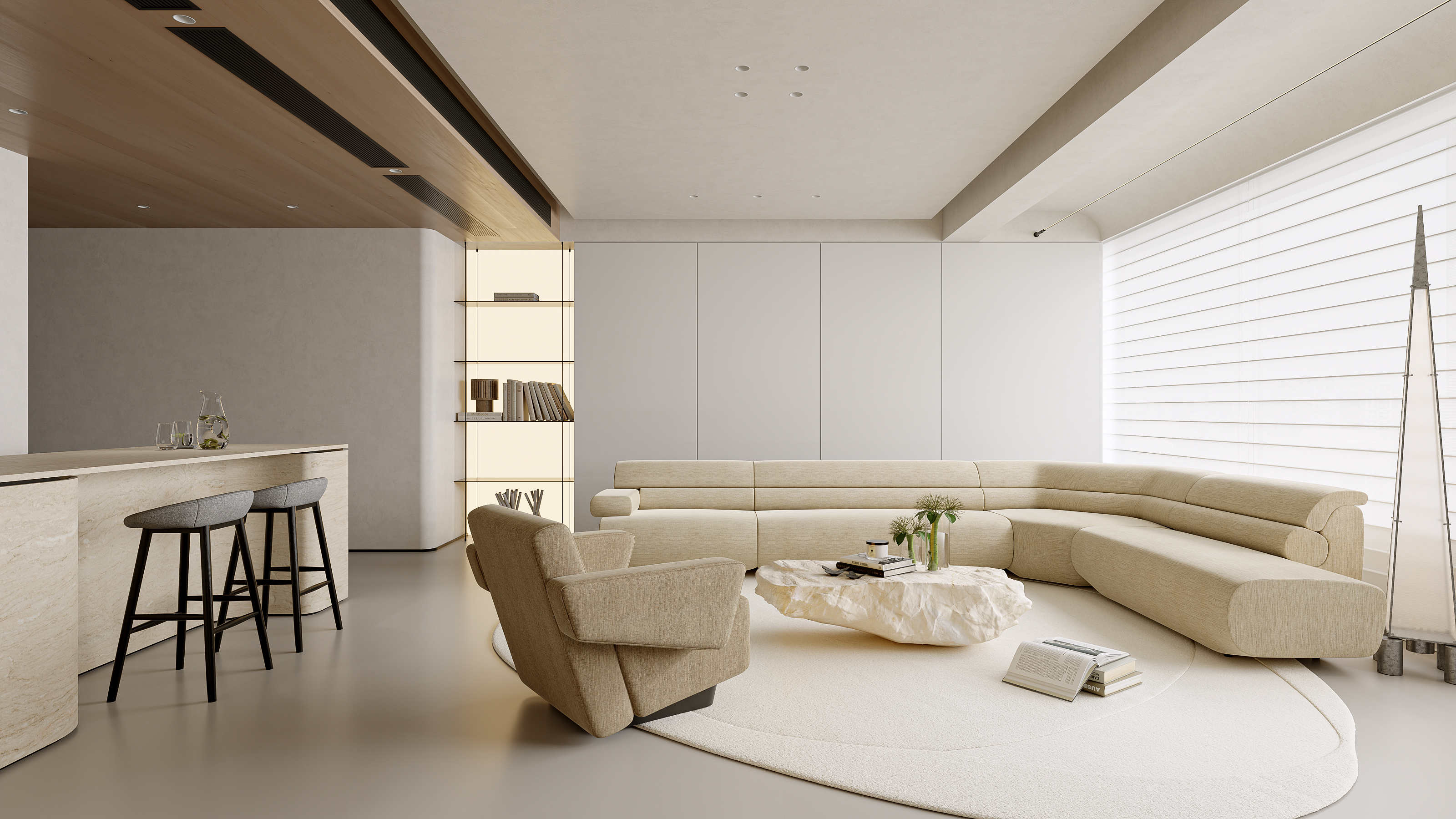 Furniture planning in this space can draw inspiration from coworking principles while intentionally avoiding spatial density or visual pressure. Highback chairs with integrated power outlets, paired with compact work surfaces or side tables, offer essential support for mobile working. Sofa systems should include embedded power modules to accommodate temporary work needs. For moments of rest and emotional reset, enclosed lounge chairs with side-mounted reading lamps provide a more personal and calming experience.