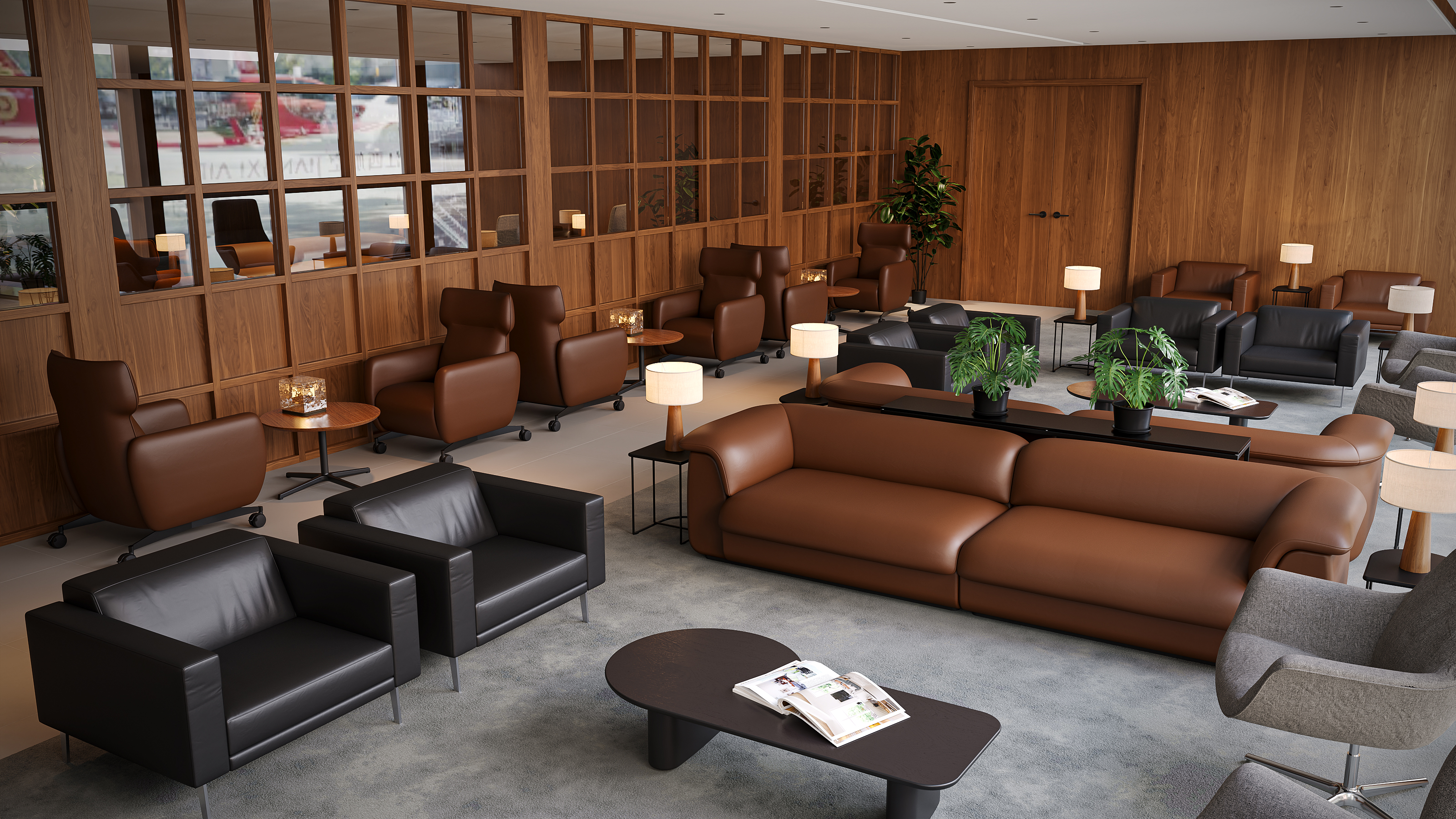 The private lounge within the airport functions as a quasi-community space — serving not only as a site of personal restoration, but also as an identity marker, an information exchange hub, and an extension of airline branding. Furniture must carefully balance functionality, social interaction, and privacy.