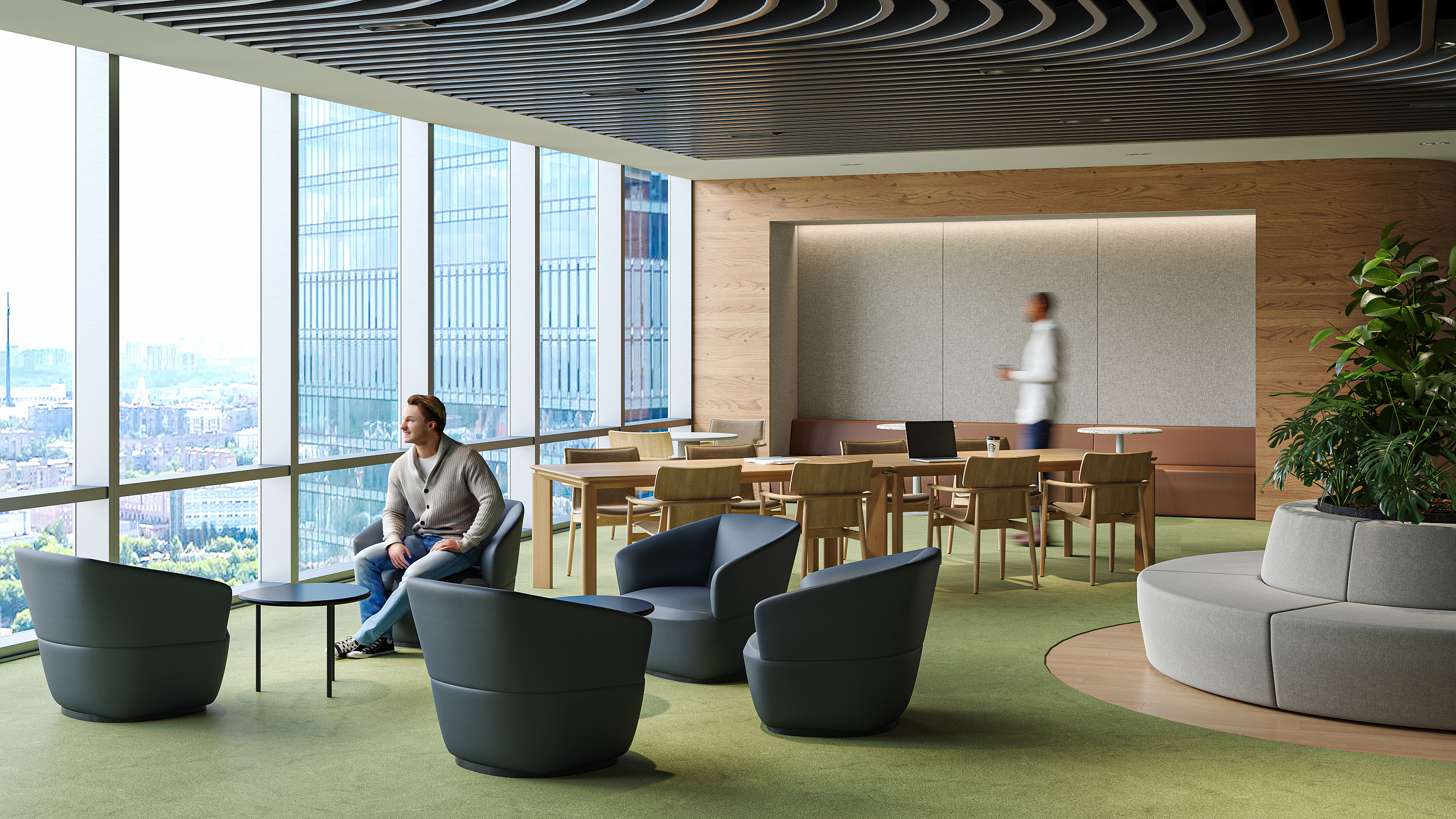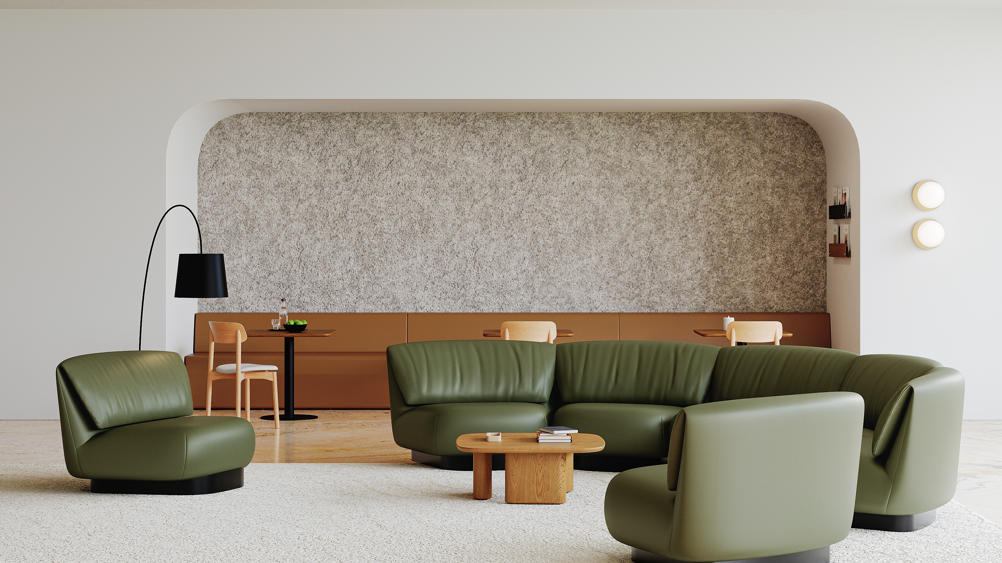 Built with durability in mind, the sofa features a solid wood frame wrapped in high-density foam, maintaining its shape and support over years of use. The textured, wear-resistant upholstery offers both tactile richness and high-traffic durability, while rounded edges enhance safety and approachability. Thoughtful details include armrests flush with the backrest—perfect for leaning, napping, or conversation—and non-slip glides that protect floors while allowing easy reconfiguration.With its precisely calculated seat height and angled backrest, the Scroll Sofa delivers substantial comfort without bulk, making it ideal for open-plan offices, lounge areas, and retail environments.