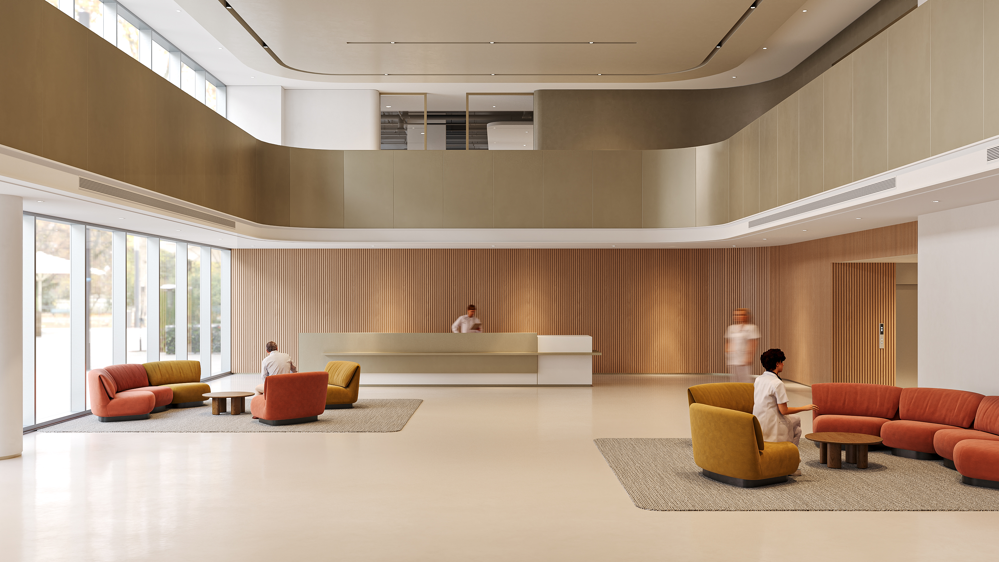 The gracefully flared then tapered armrests achieve both spatial presence and visual lightness, while their rounded fronts provide ergonomic grip comfort. A three-point support structure ensures exceptional stability and durability in high-traffic environments.