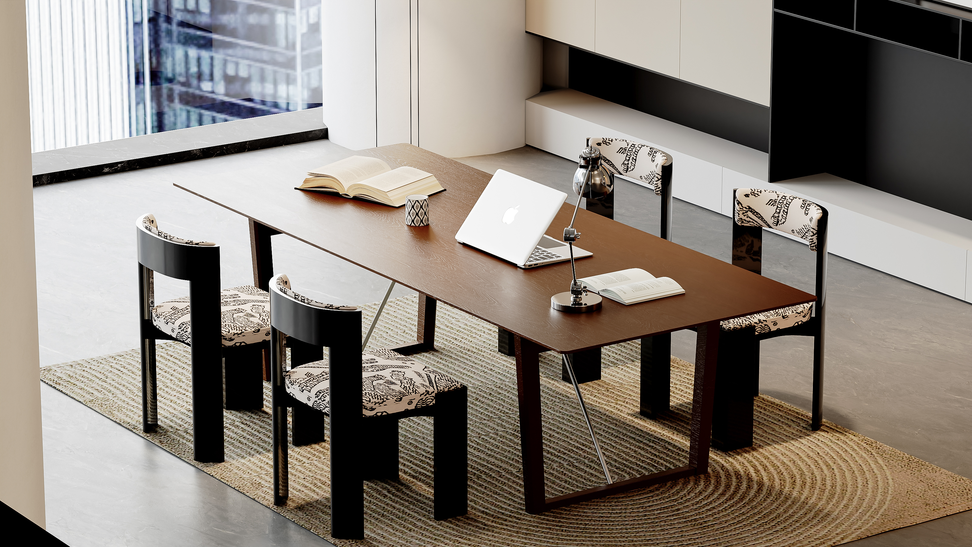 The table's clean geometry follows "less is more" principles, with straight lines evoking a gate's dignified poise. Precision-edged surfaces maintain architectural crispness while ensuring user safety, and tapered legs—incorporating threshold motifs—balance visual lightness with structural integrity. Thoughtful details include rounded corners for high-traffic areas and integrated cable management with magnetic panels that maintain workspace clarity.