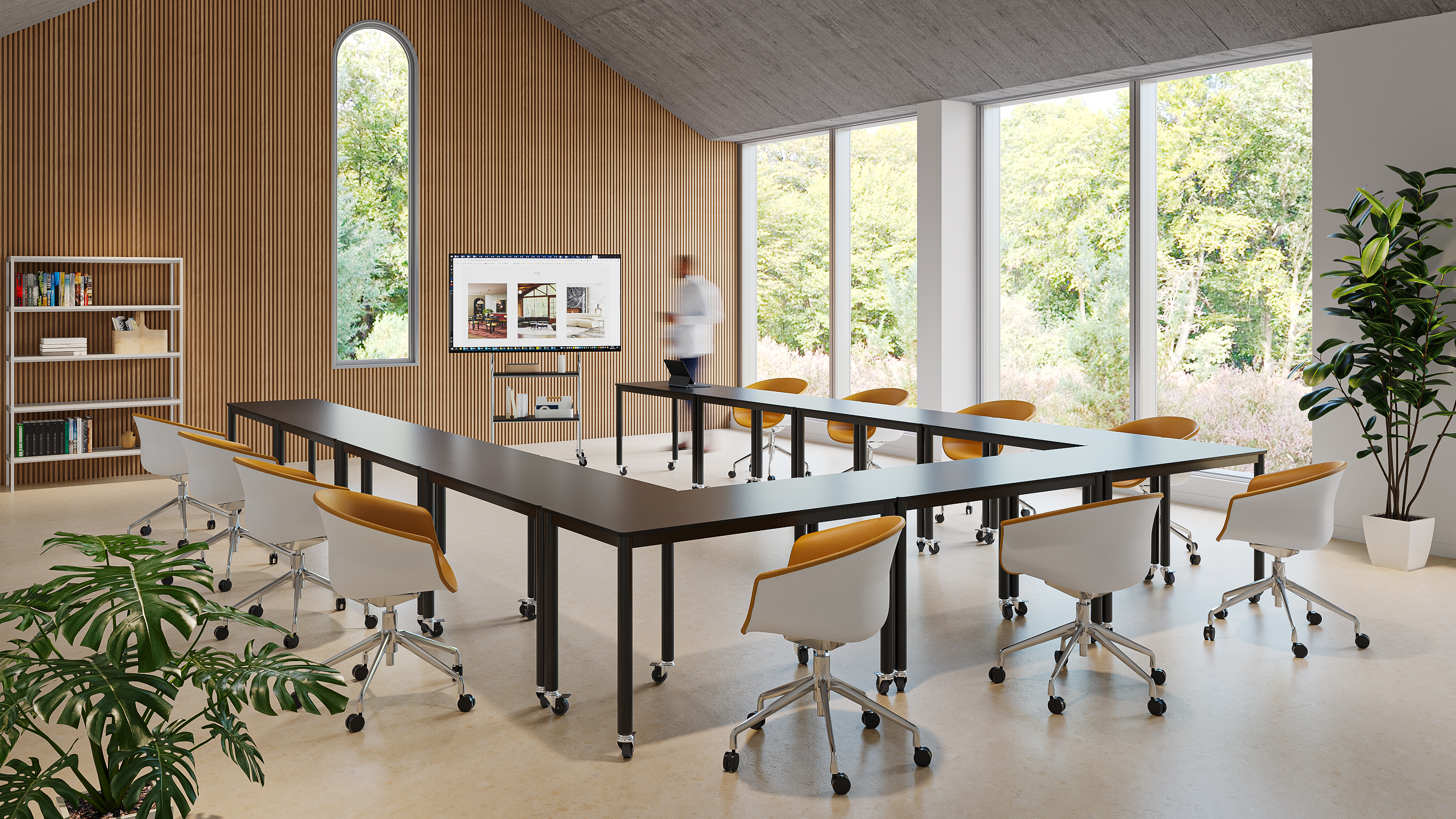 Inspired by Li Bai's poetic imagery of ascending cloud ladders, this versatile mobile stand transforms the metaphor of upward progress into a functional presentation platform. Designed for contemporary offices, training centers, and educational spaces, it combines practical efficiency with refined modern aesthetics.