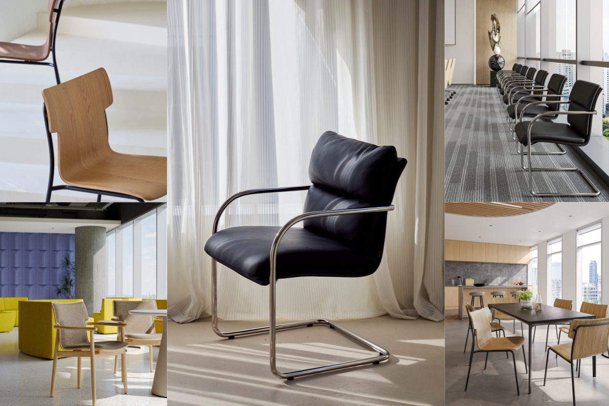The cantilever model features an ergonomic divided backrest inspired by Eames' design principles, combining plush foam cushioning with the natural resilience of its frame to deliver lasting comfort and support. This dual-support system ensures the chair maintains its elegant silhouette even after prolonged use, while elevating the sophisticated ambiance of professional spaces.