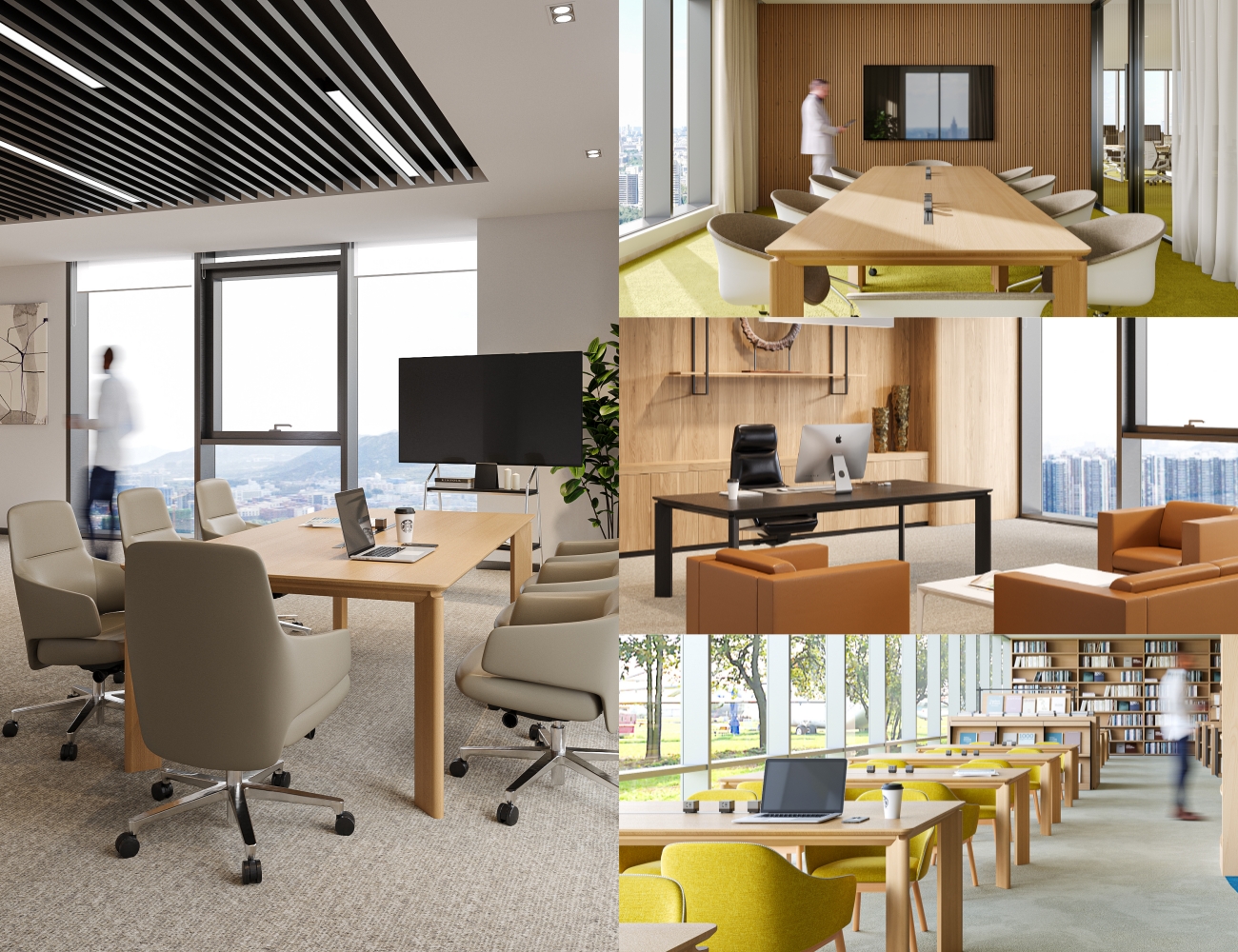 The Structural Balance Series masterfully negotiates the equilibrium between form and function through meticulous proportions, modular flexibility, and visual lightness. These designs employ innovative construction, floating silhouettes, and reconfigurable elements to maintain graceful adaptability across diverse spaces - from corporate lobbies to creative workplaces.