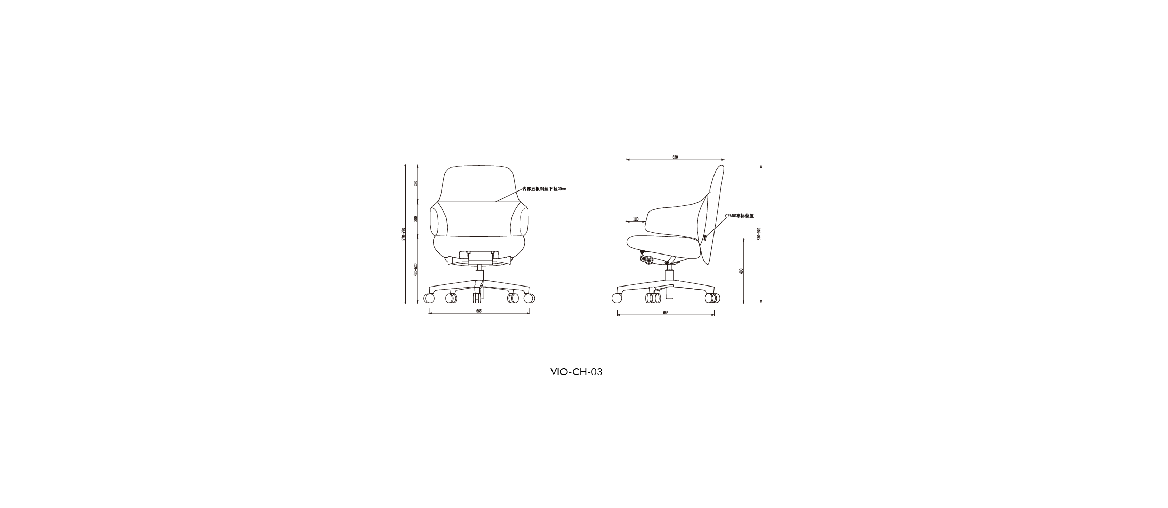 W665 D665 H870-H970 SH420-520mm