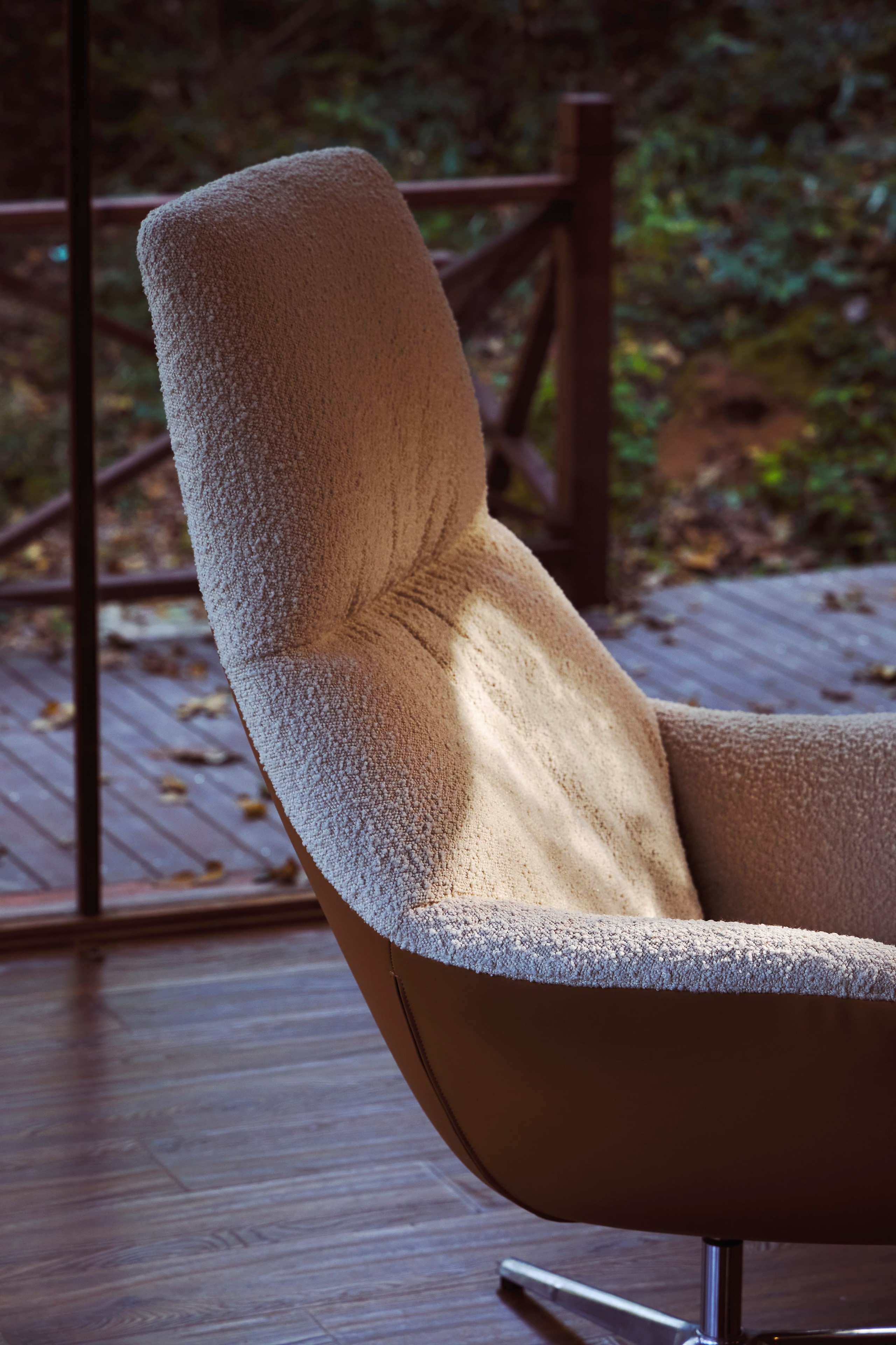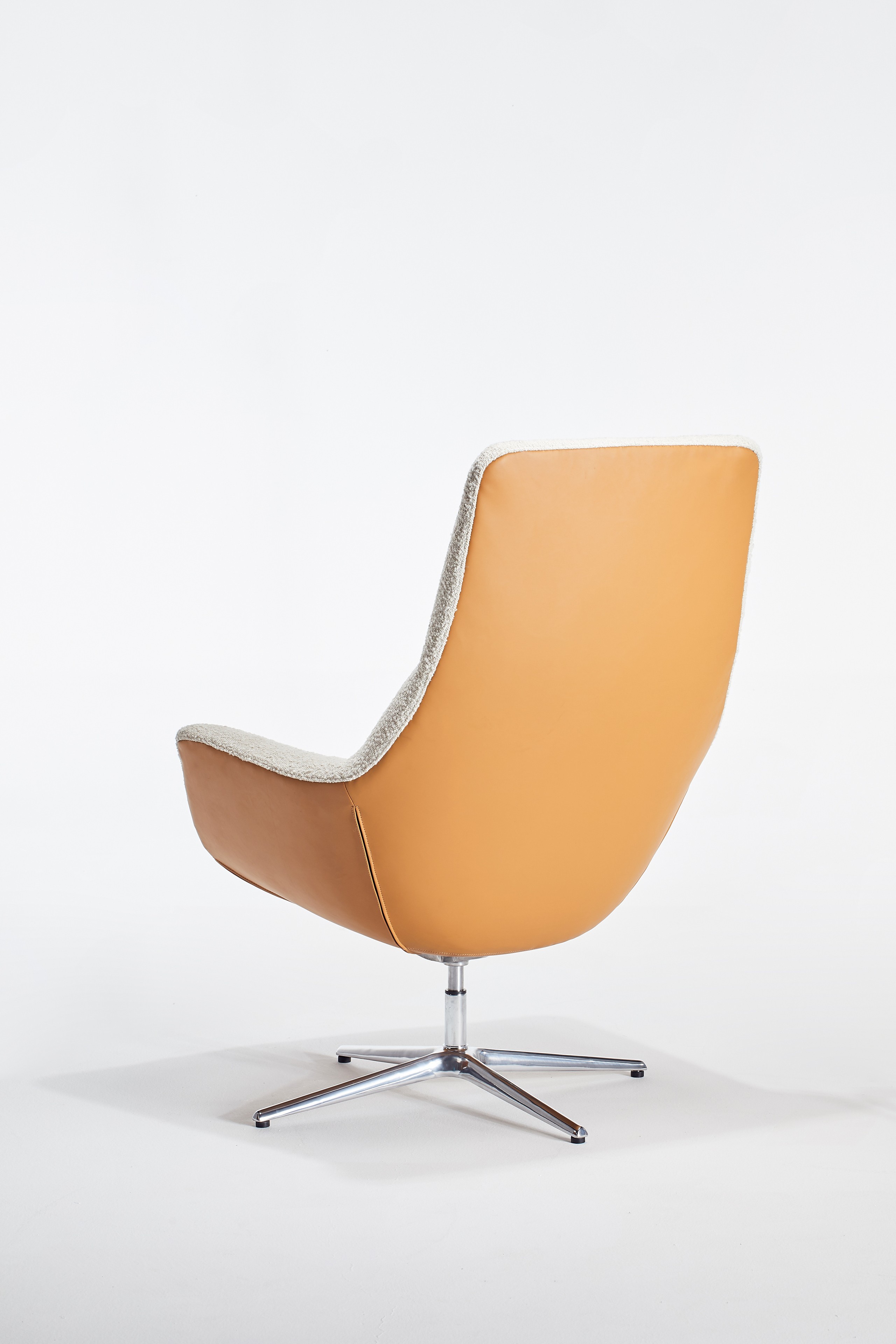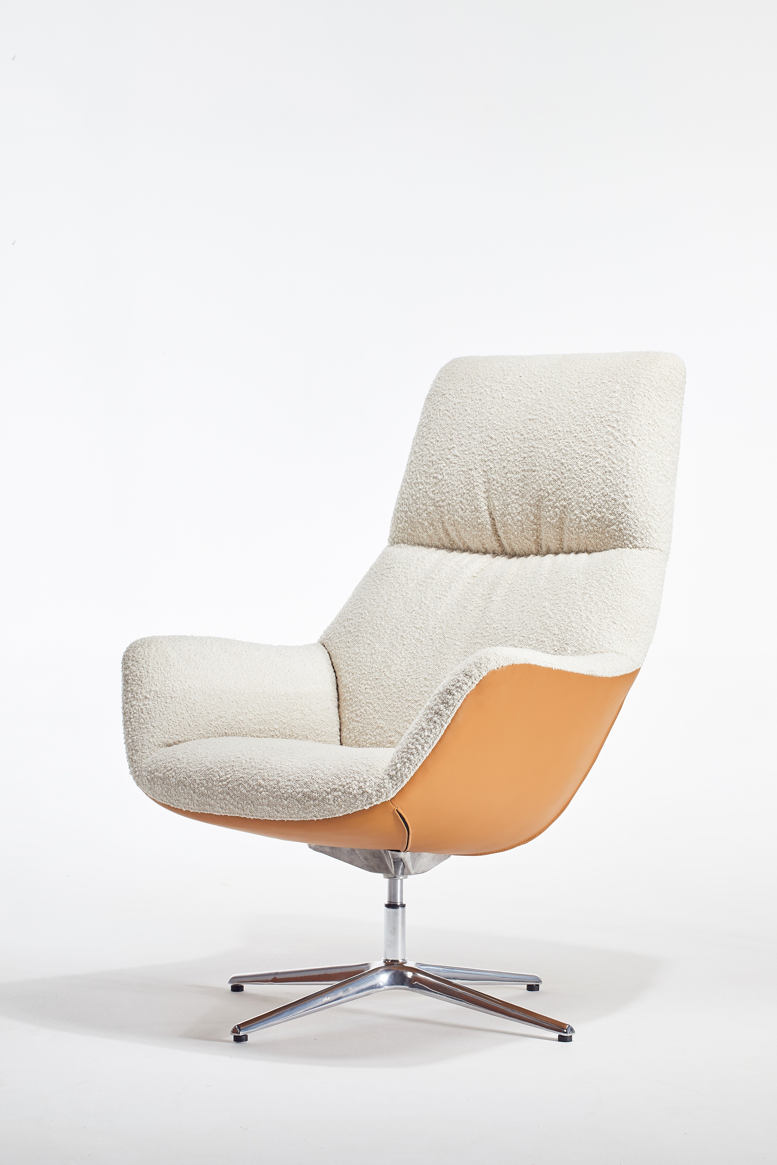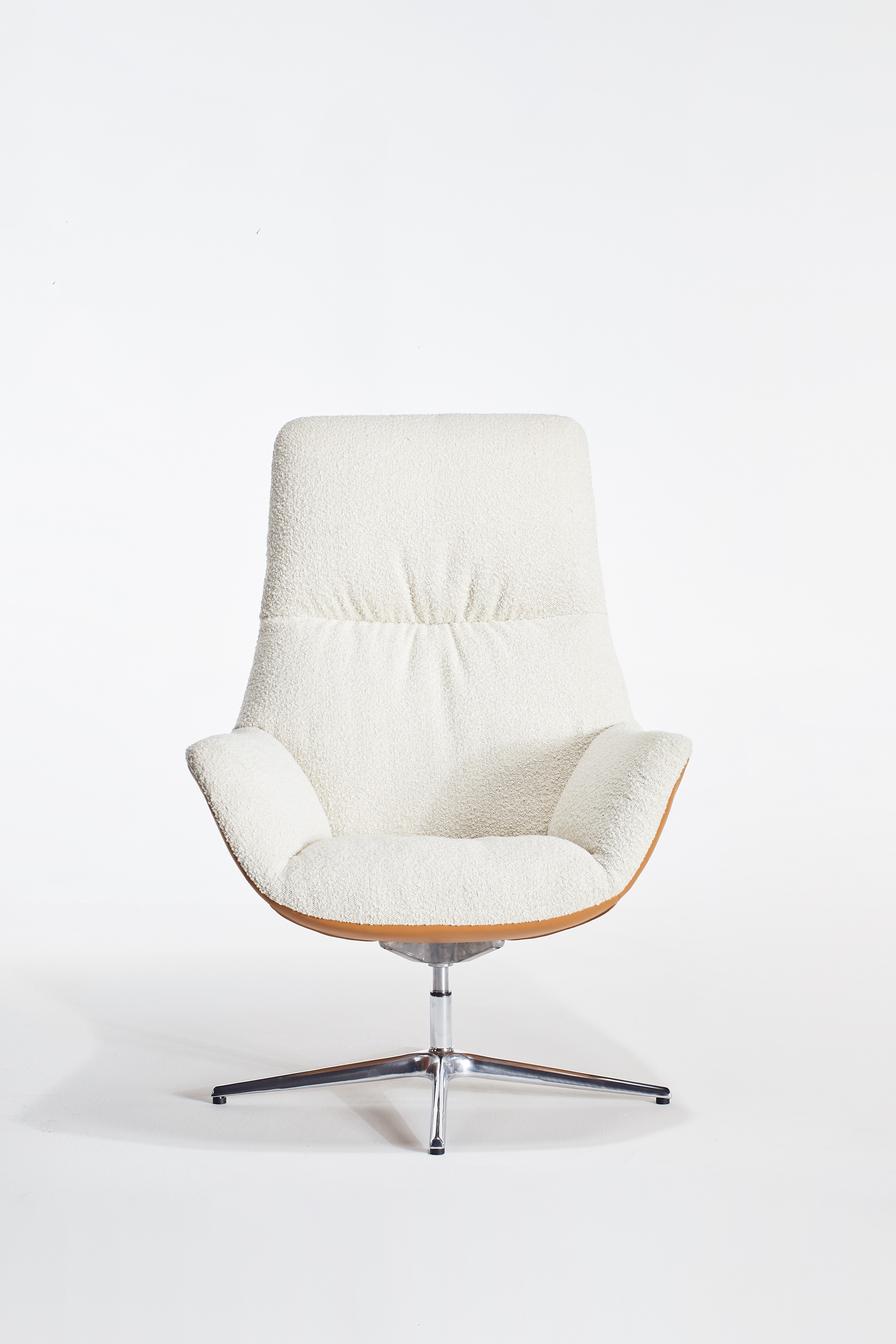 MATERIAL: Shell: High resilience foam (with down filled bag), steel frame, upholstery Base: Aluminum alloy(rotatable,Auto-return swivel)