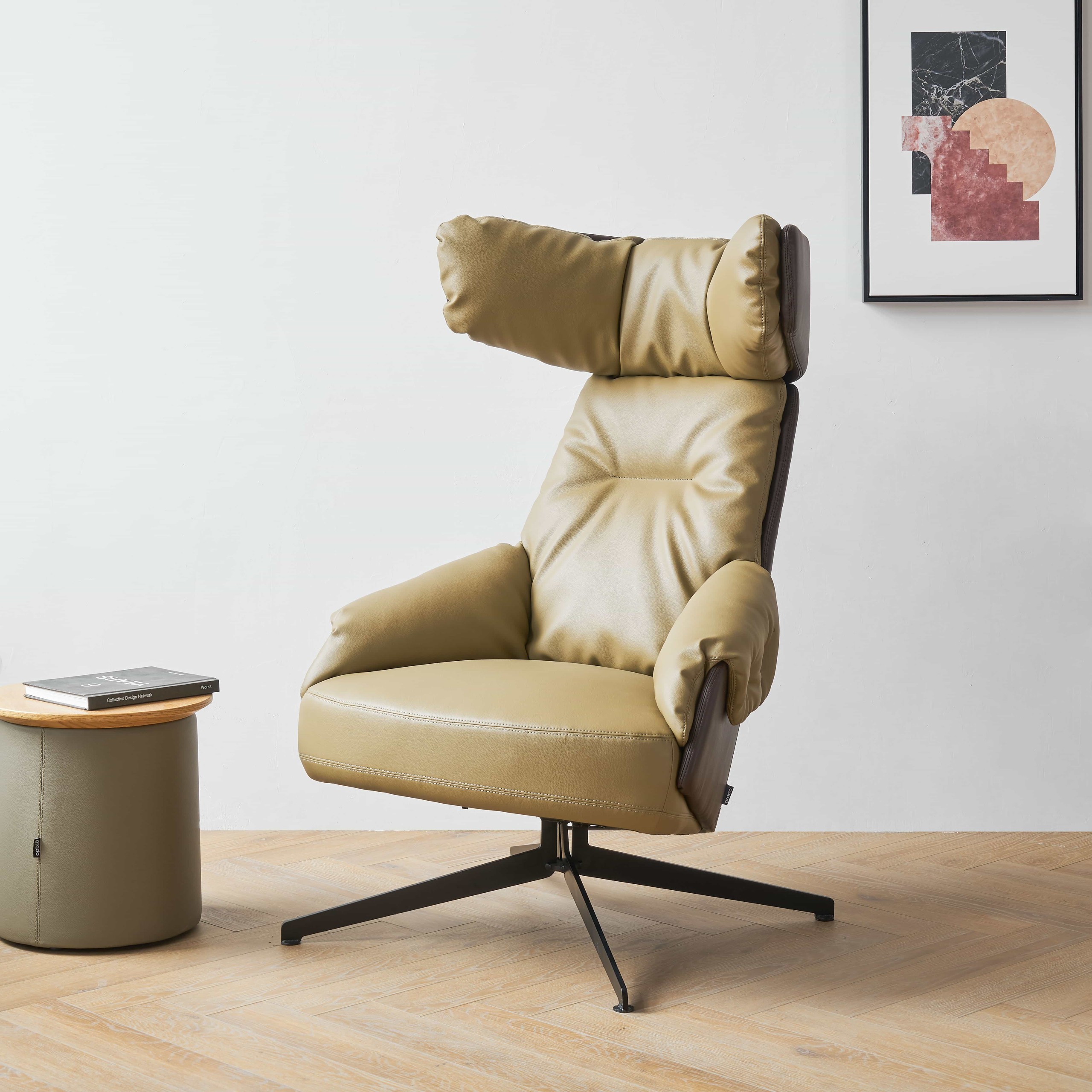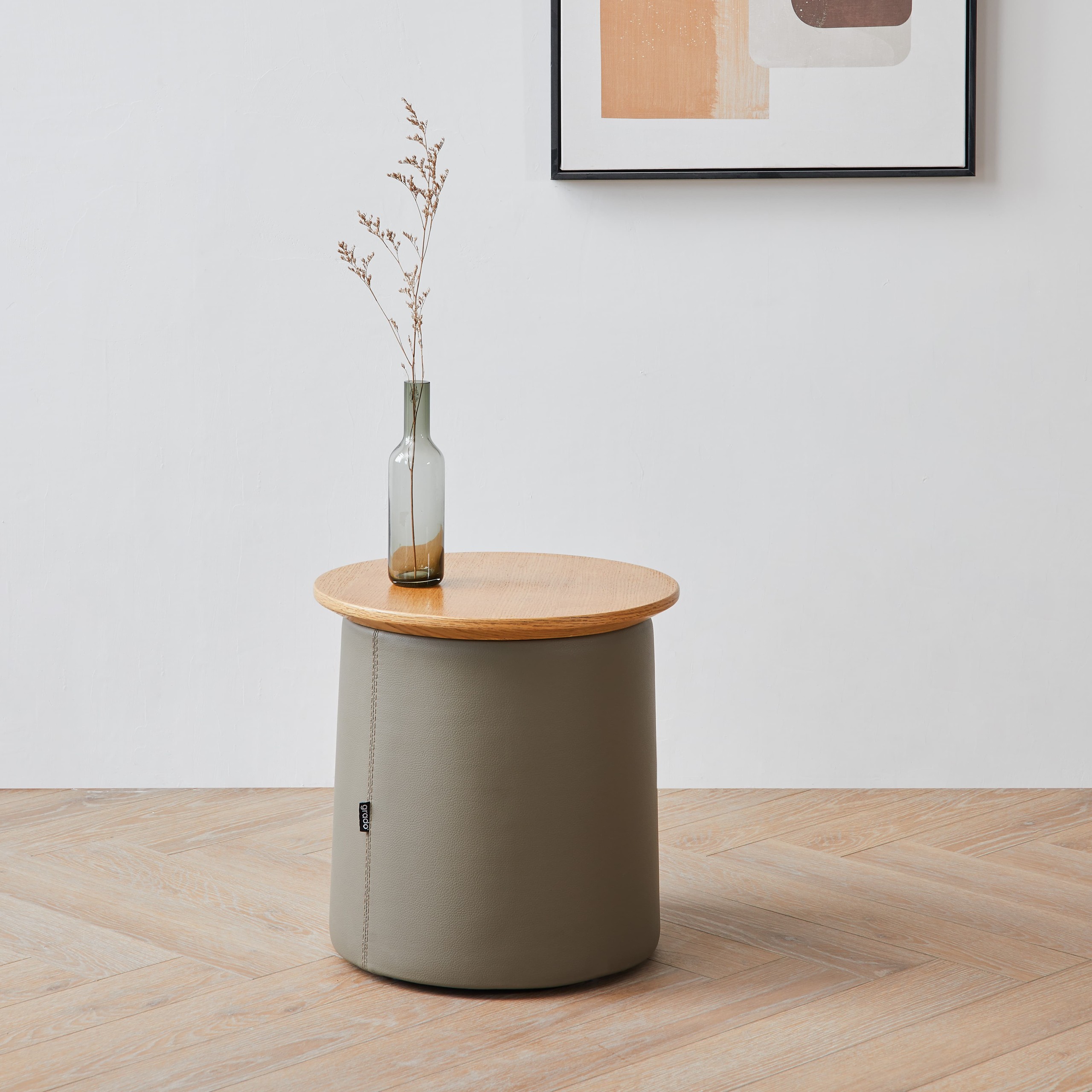 Tabletop is polyurethane painting / Base is upholstered.