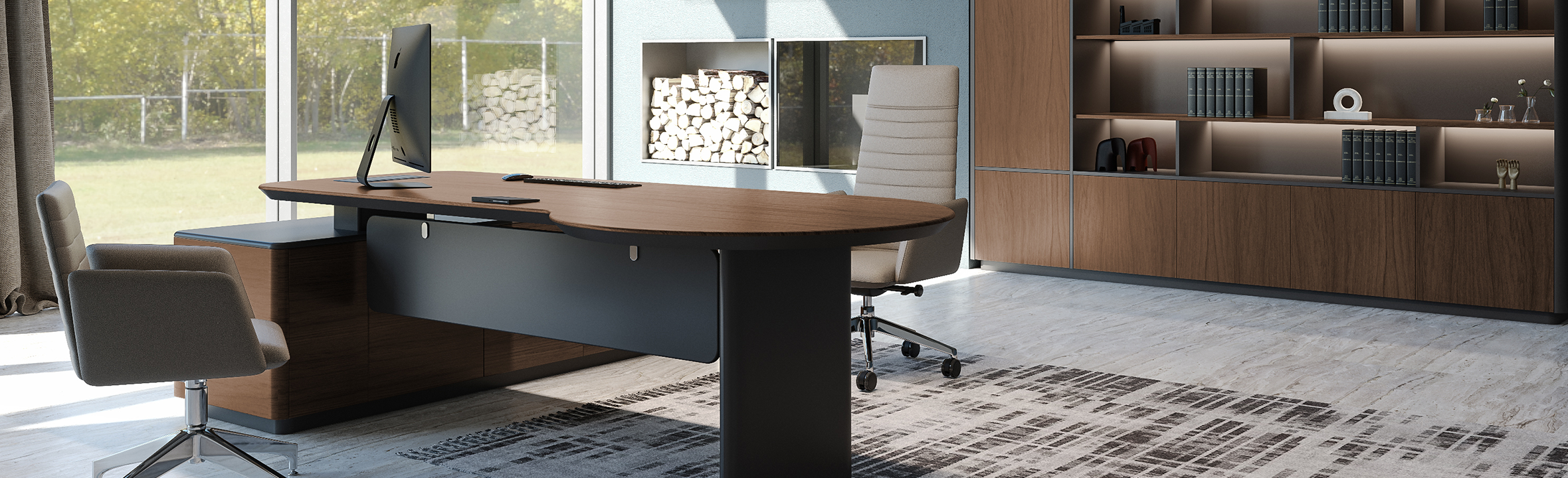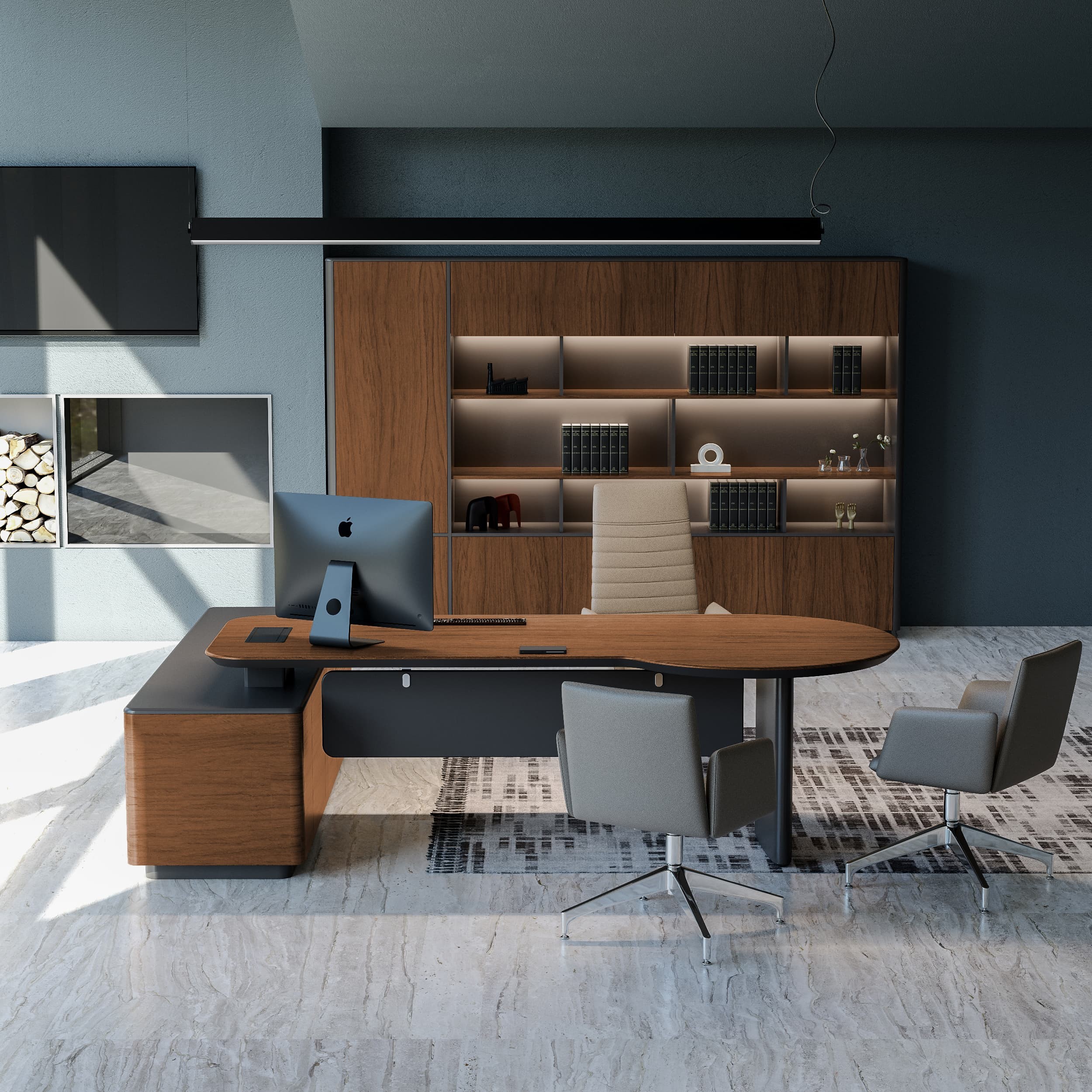 Pebble Executive Desk/ P desktop with Cabinet