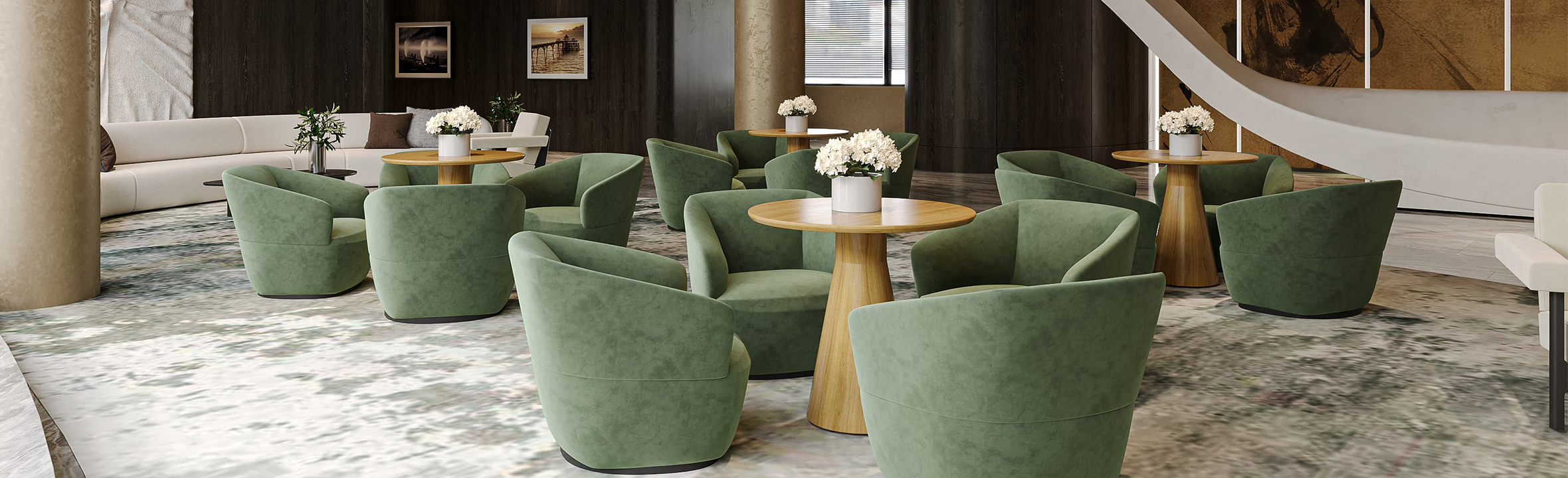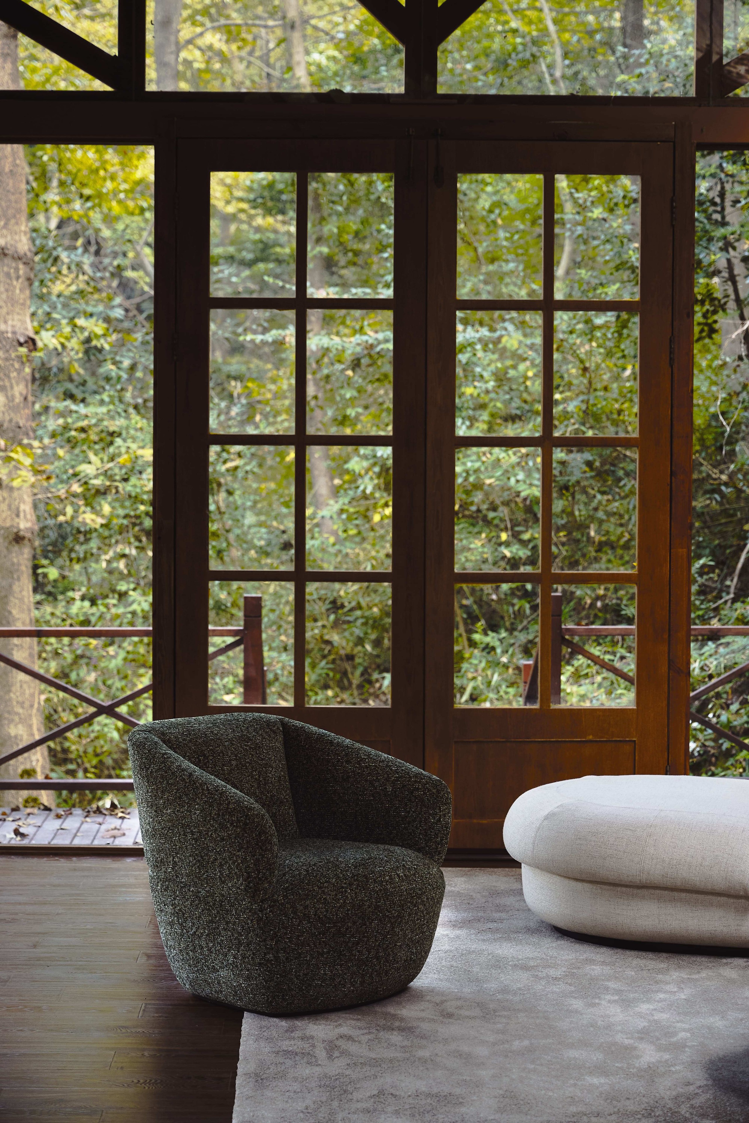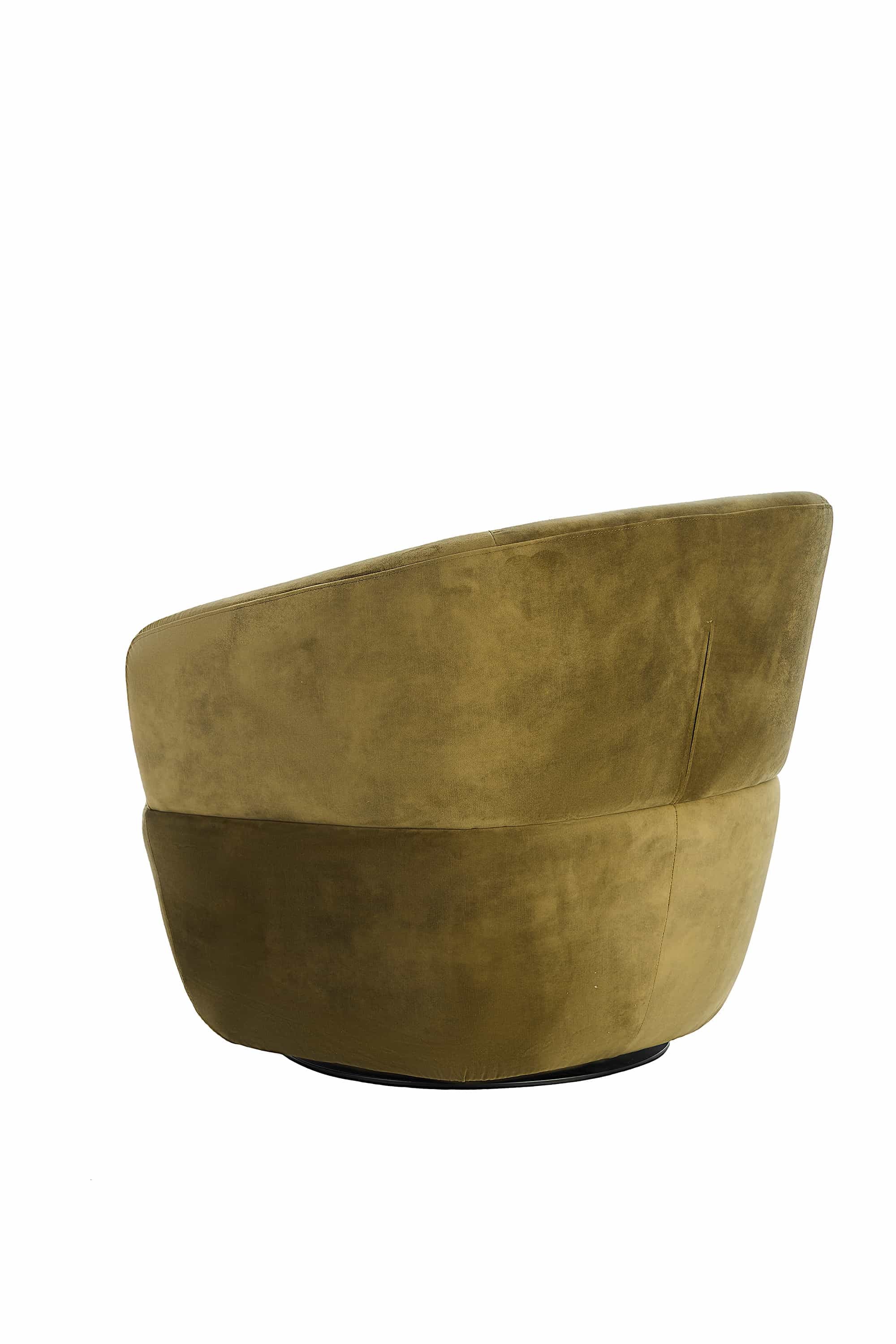 Frame: P2 plywood, Solid pine wood Filling: High resilience foam, Non-woven fabric, Upholstery batting Inside: Elastic webbing Base: ø500*8 Steel plate (Bottom: Felt pad (5mm), Swivel 180°, with Return)