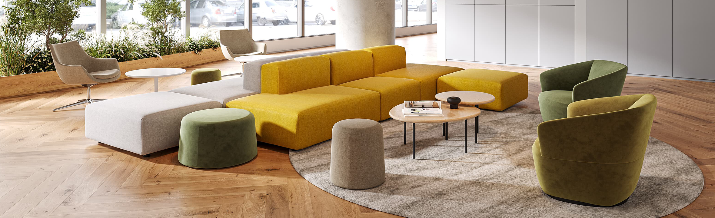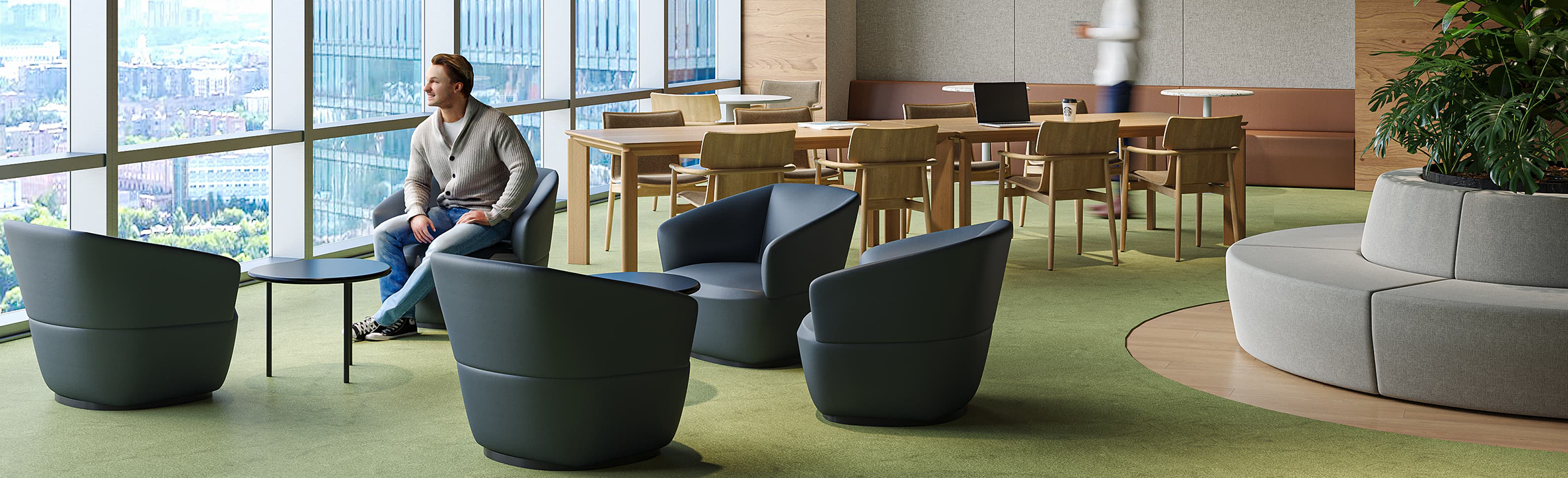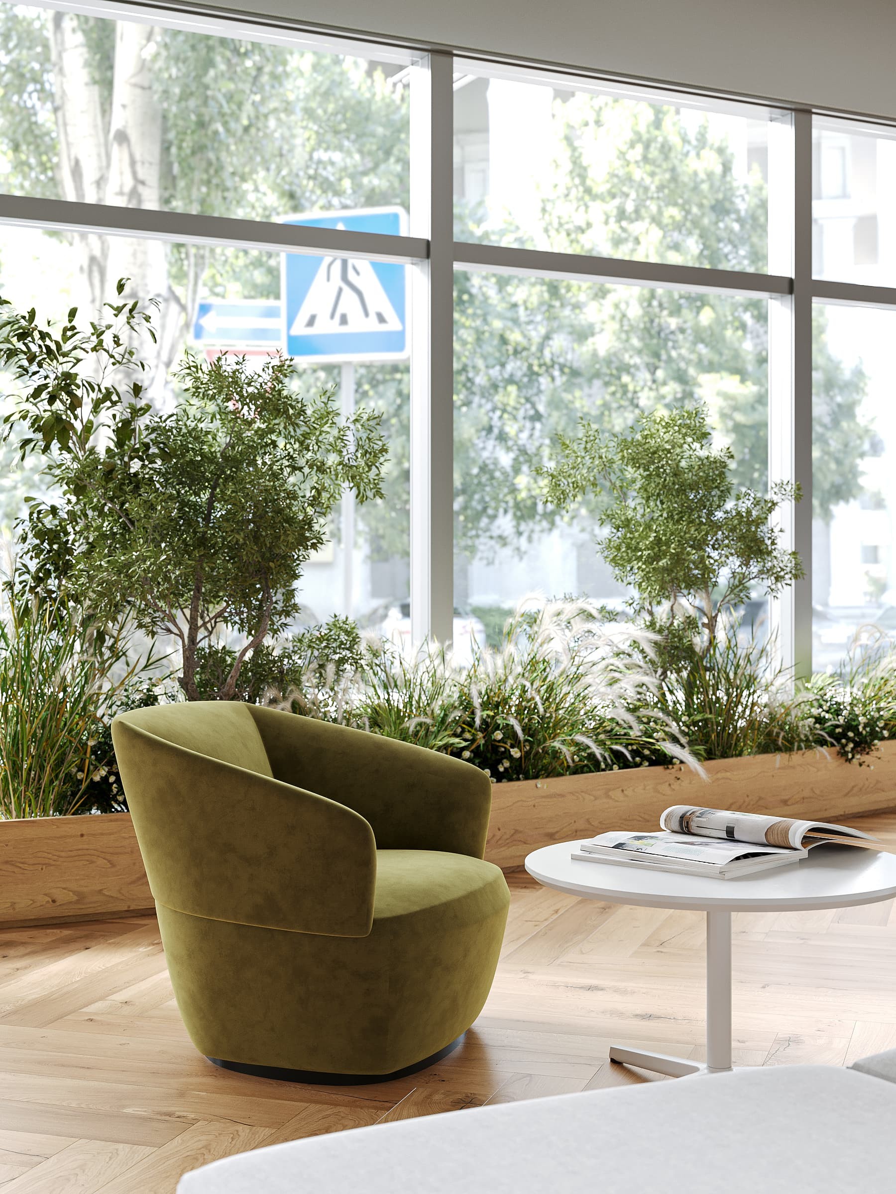 Frame: P2 plywood, Solid pine wood Filling: High resilience foam, Non-woven fabric, Upholstery batting Inside: Elastic webbing Base: ø500*8 Steel plate (Bottom: Felt pad (5mm), Swivel 180°, with Return)