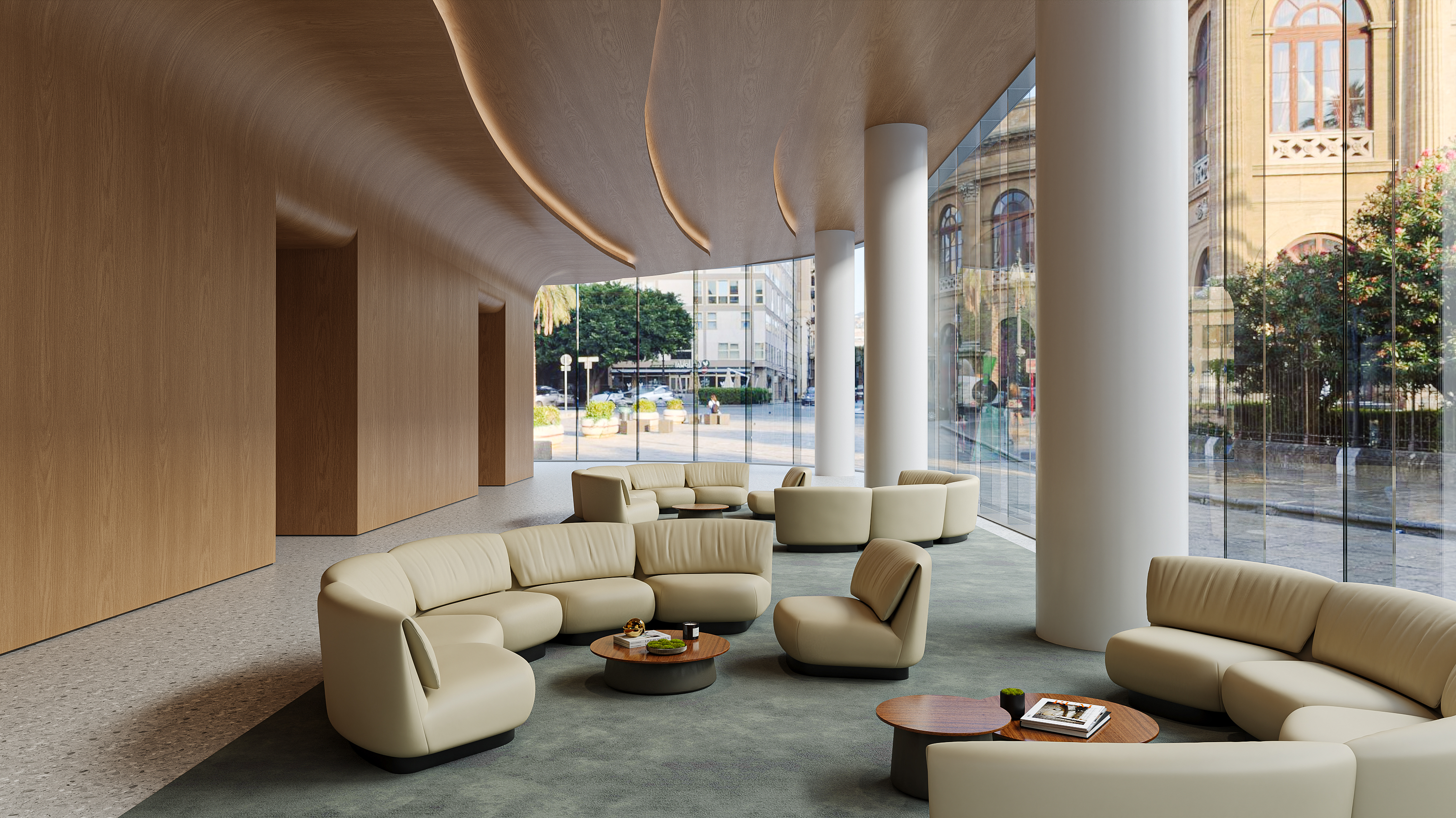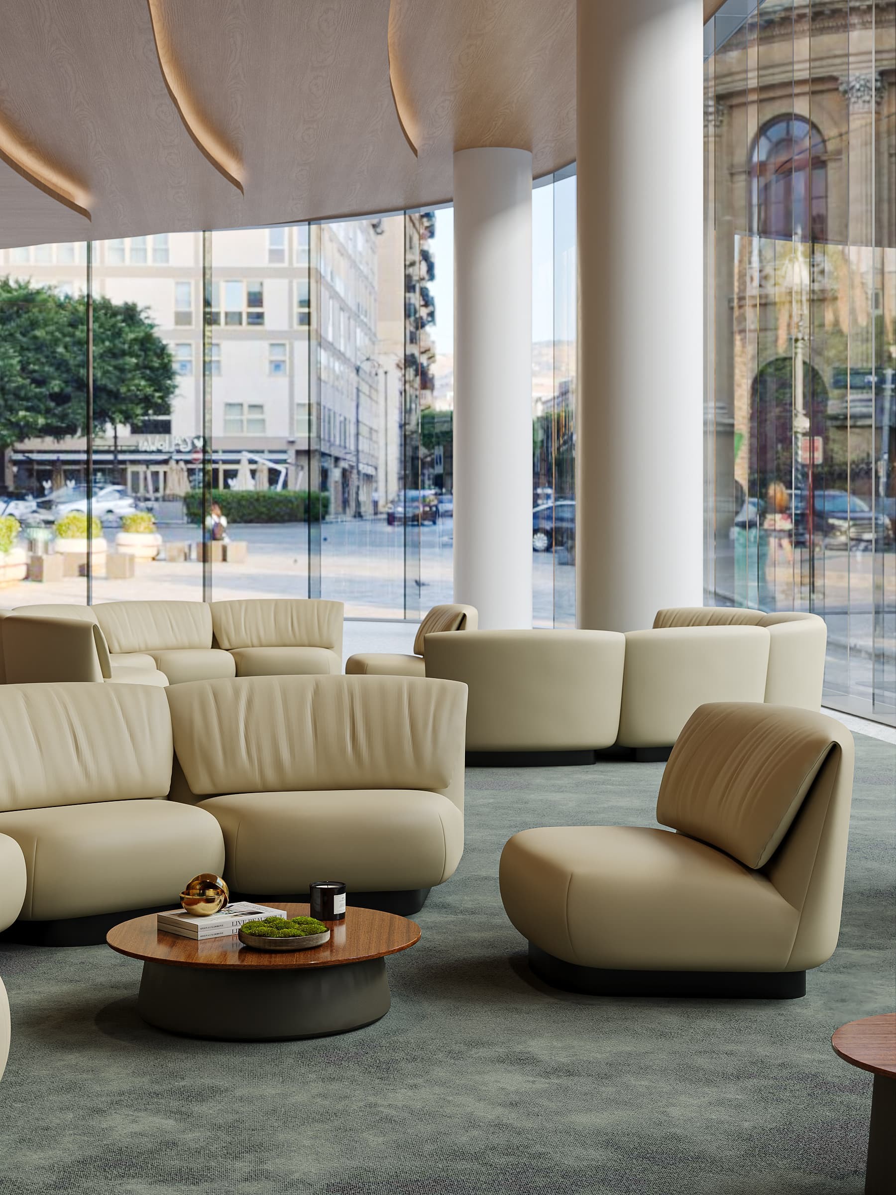 Multiple modules can also be combined to form a large-scale combination to suit the lobby space.