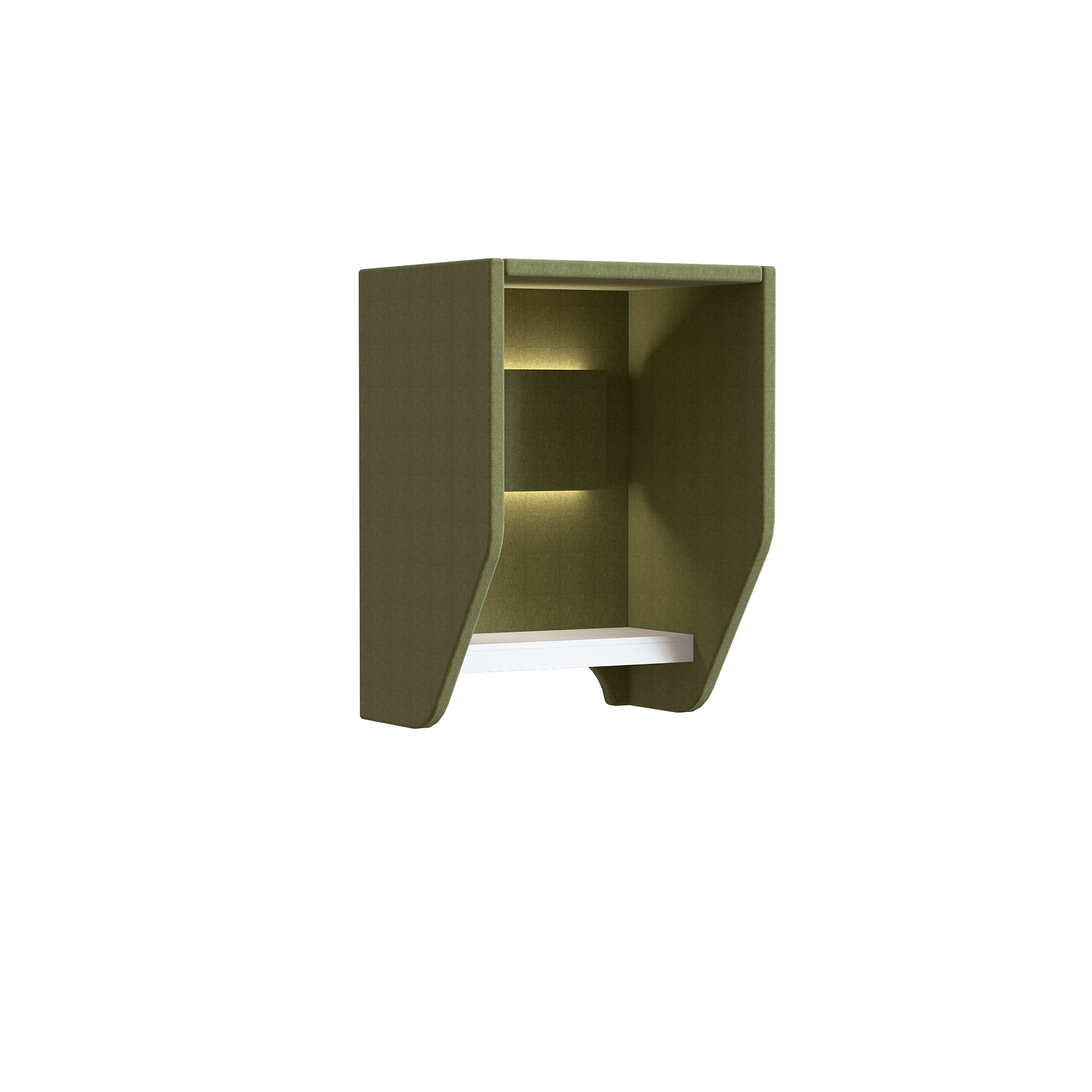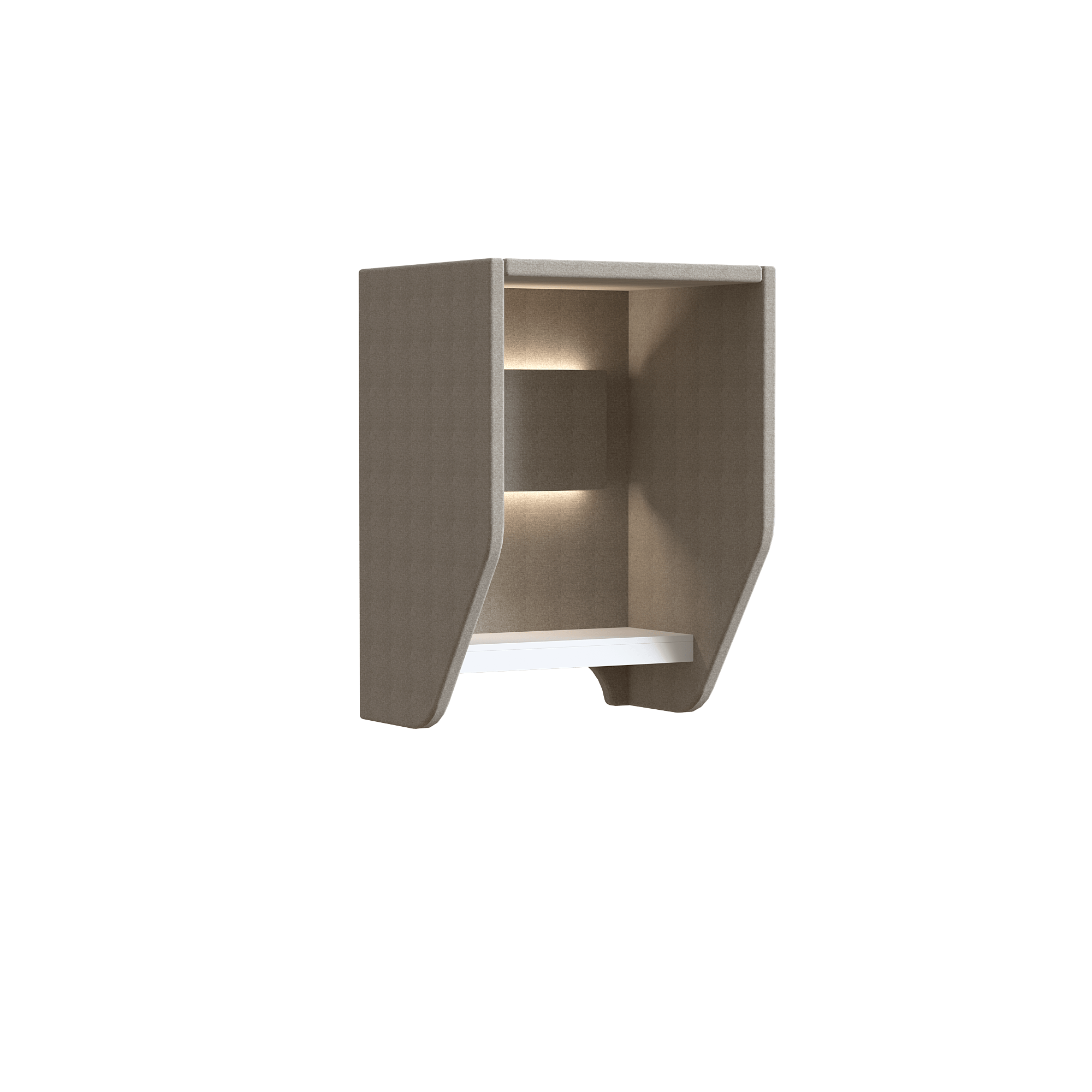 Booth Cover: 18mm plywood frame+3mm inner panel+5mm panel structure with upholstery Table top: 66mm thickness tabletop is combined by 16mm chipboard with white melamine laminated, and conceal inductor and transformer inside Light: LED light for 40cm length of top and bottom, 4000K natural light. PC and thickening Aluminum material with hand-induction switch.