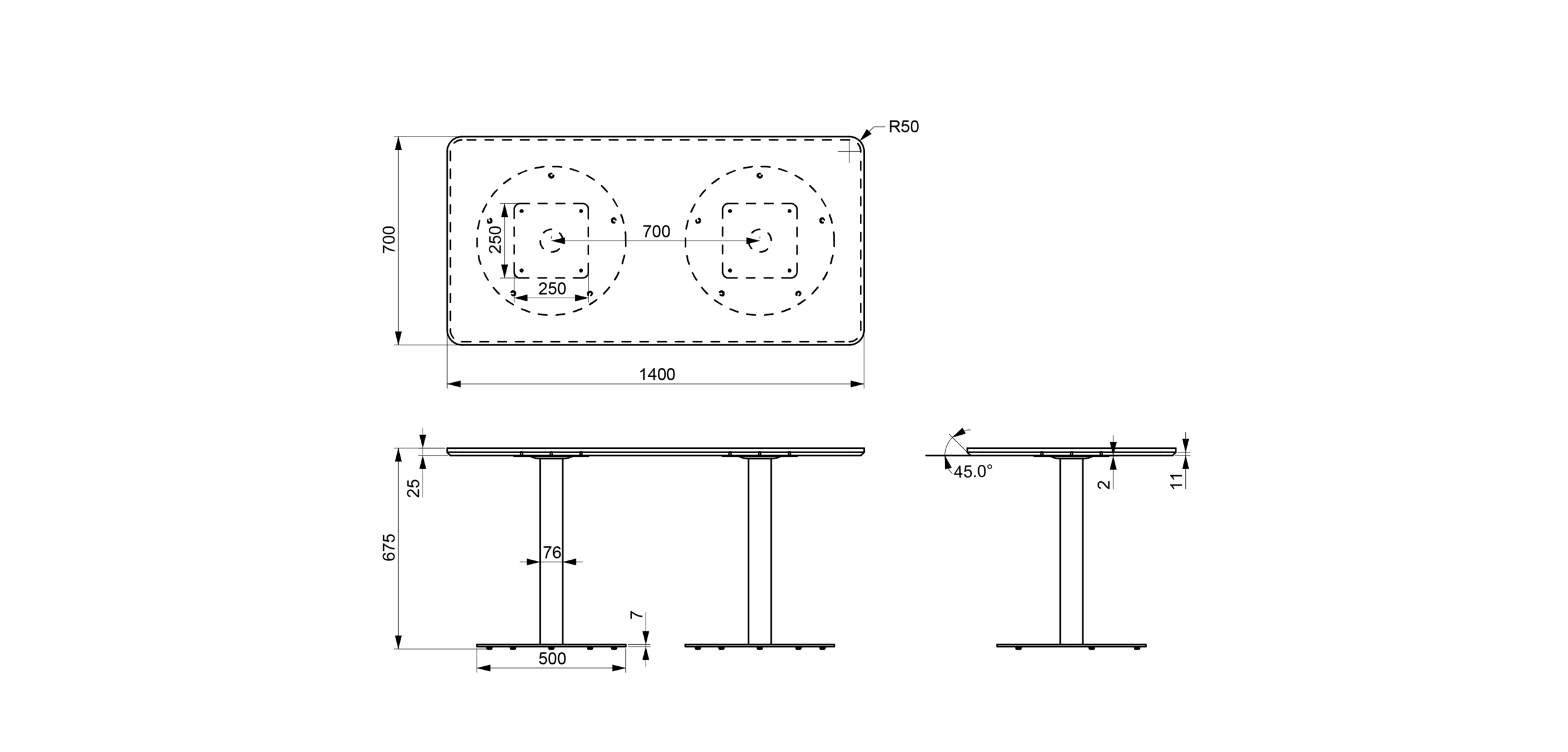 Tabletop: MFC (25mm) Legs: Metal (Detachable), Base (ø500mm), Adjustable footpad, Steel tube (ø76mm), Height options: 650/720mm Finishing of tabletop: Walnut/oak veneer Finishing of legs: Powder coated (Black/White)